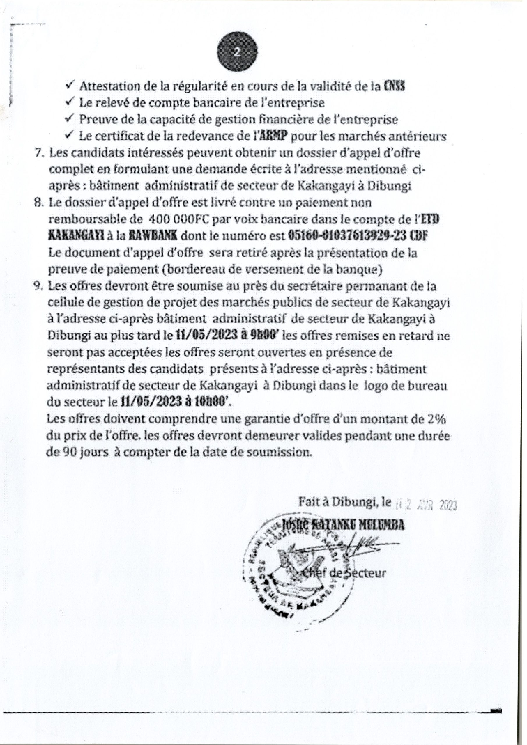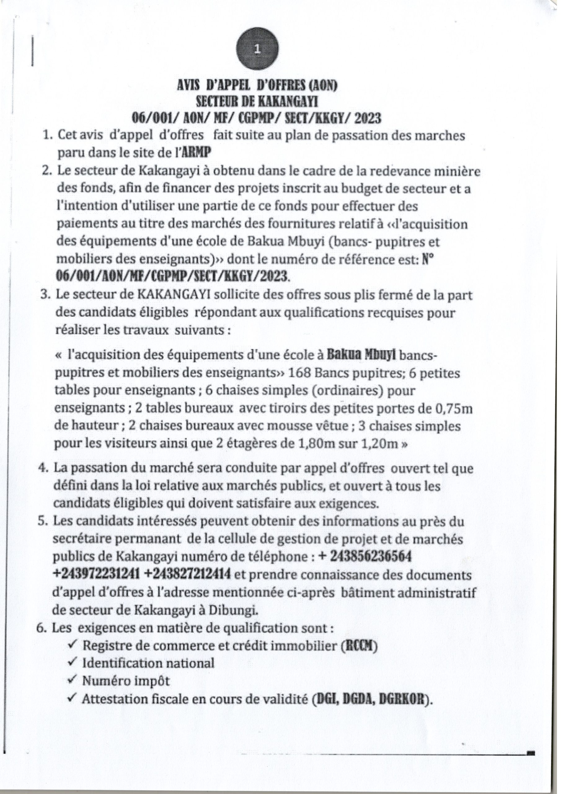 Acquisition des équipements d’une école BAKUAMBUYI ( bancs – pupitres et mobiliers des enseignants)