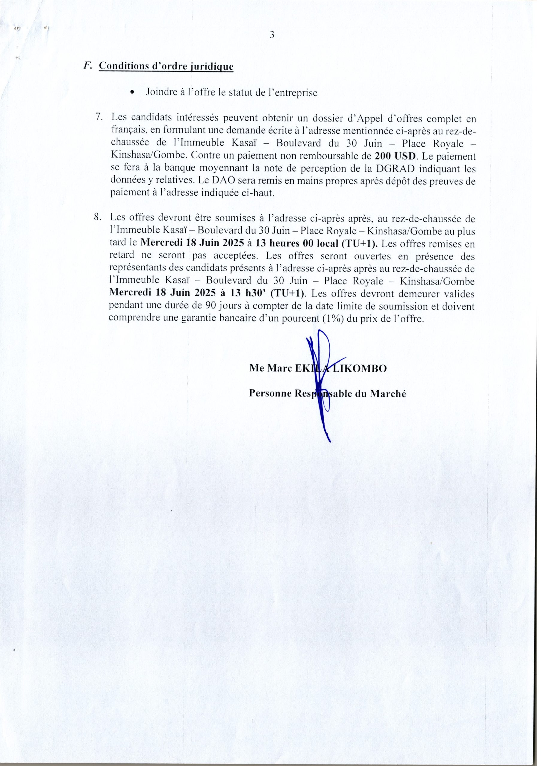 Acquisition des équipements et mobiliers pour les infrastructures de Formation Professionnelle de la province de Tshopo.