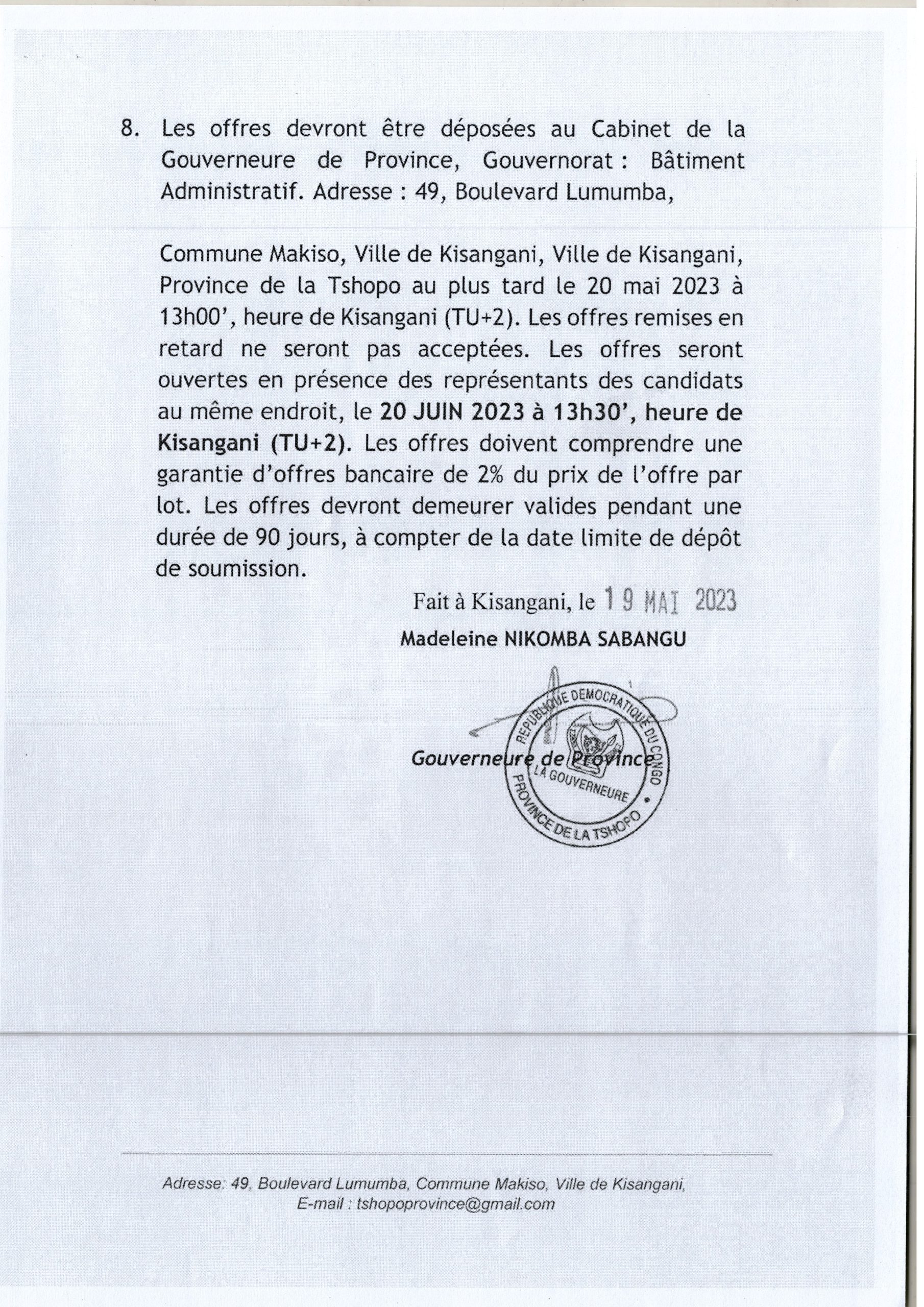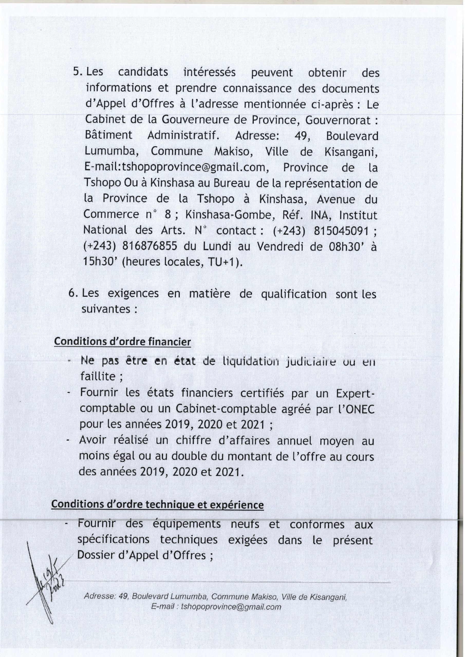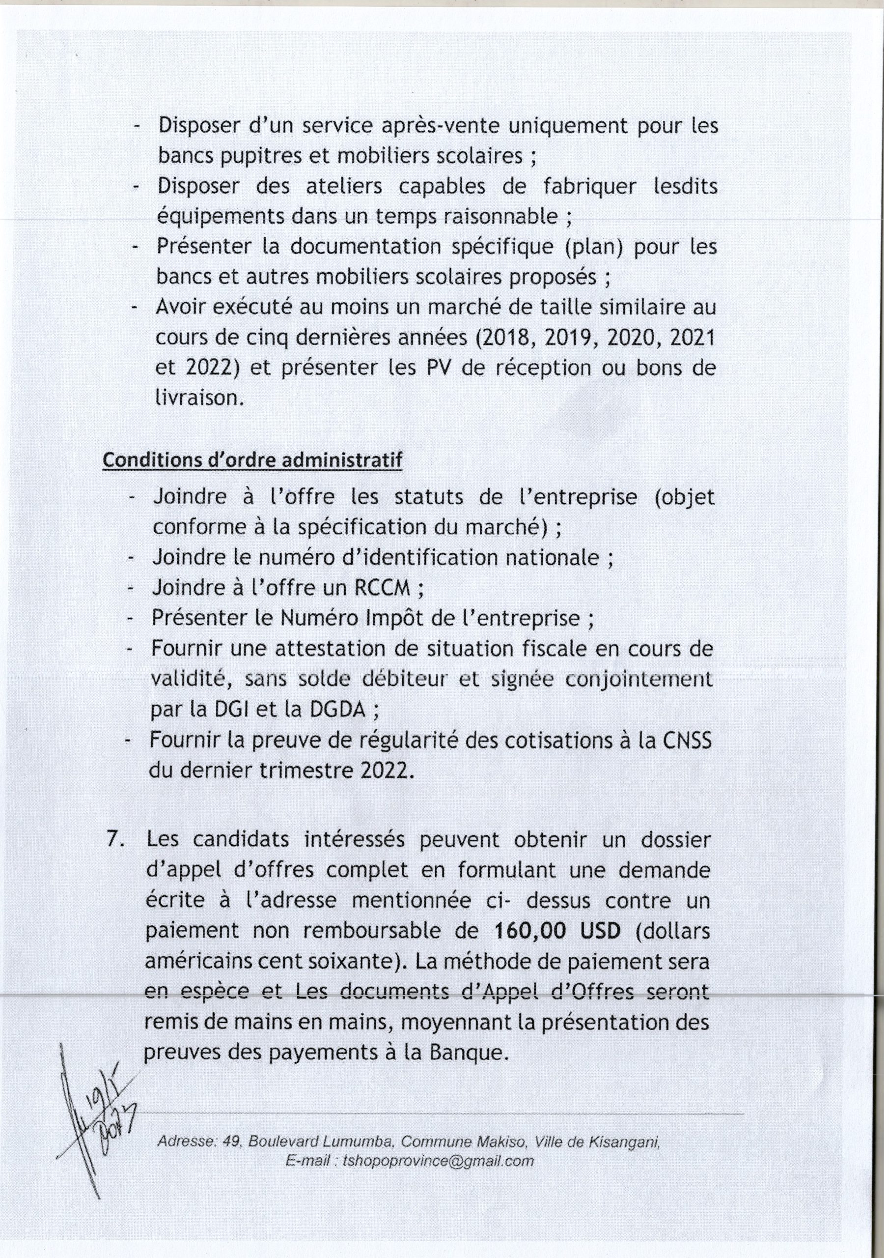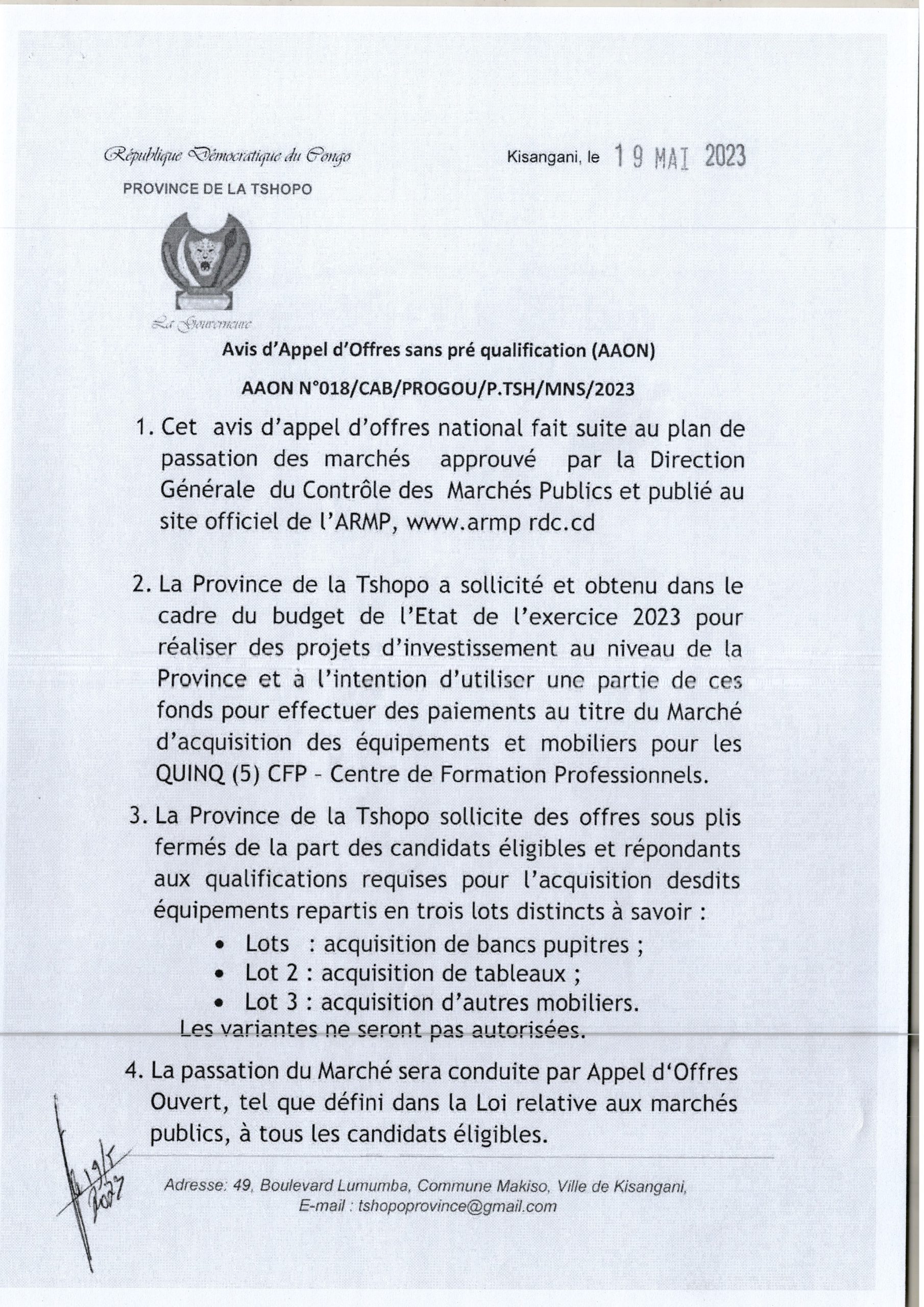 Acquisition des équipements et mobiliers pour les QUINQ (5) CFP – Centre de Formation Professionnels