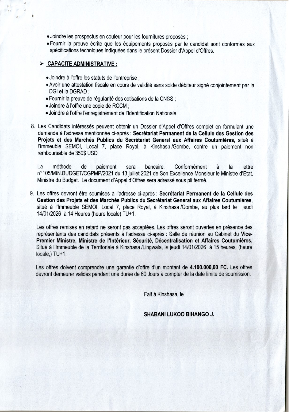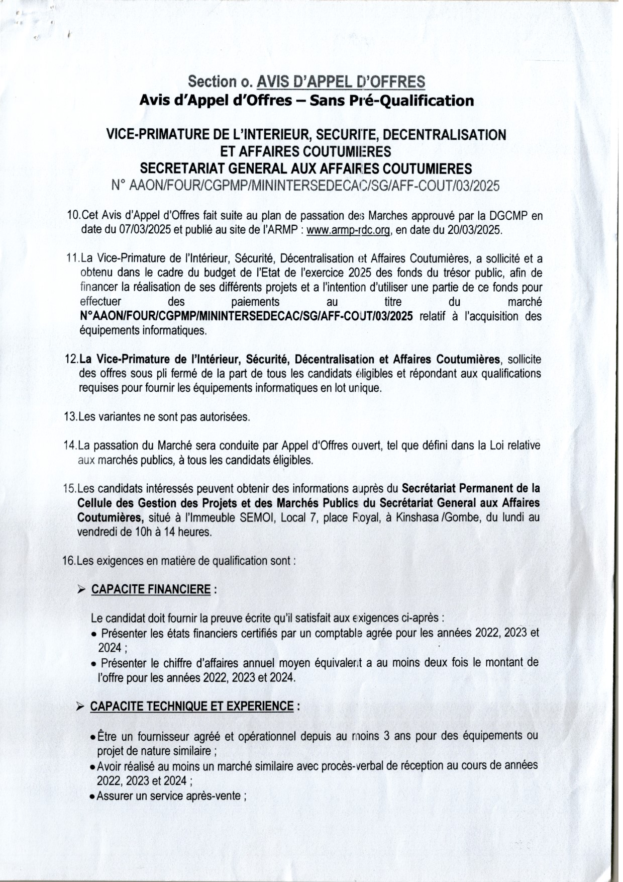 Acquisition des équipements informatiques (en lot unique)