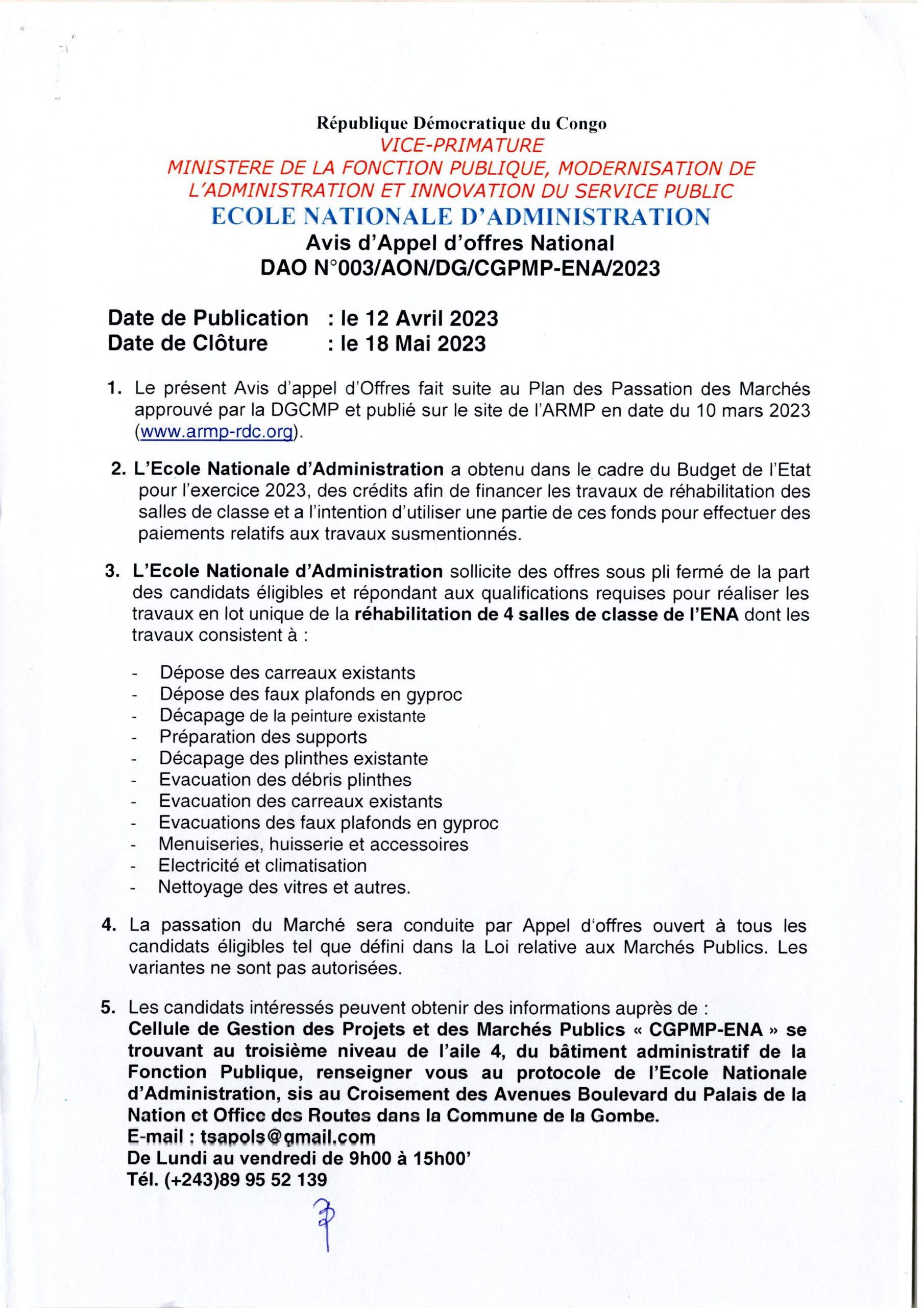 Réhabilitation de 4 salles de classe de l’ENA.