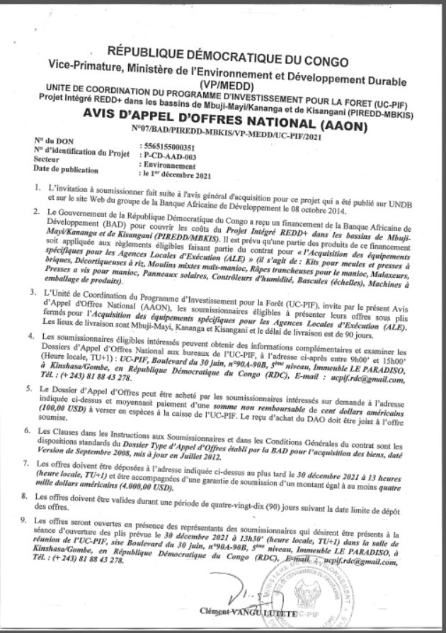 Acquisition des équipements spécifiques pour les agences locales d’exécution