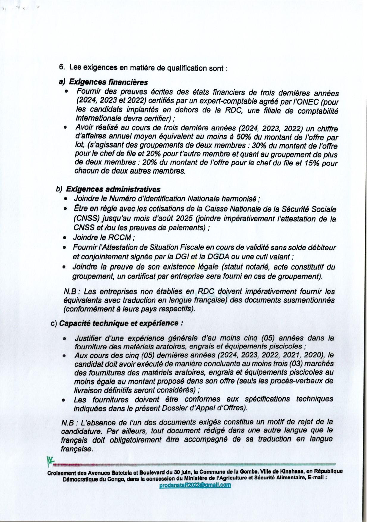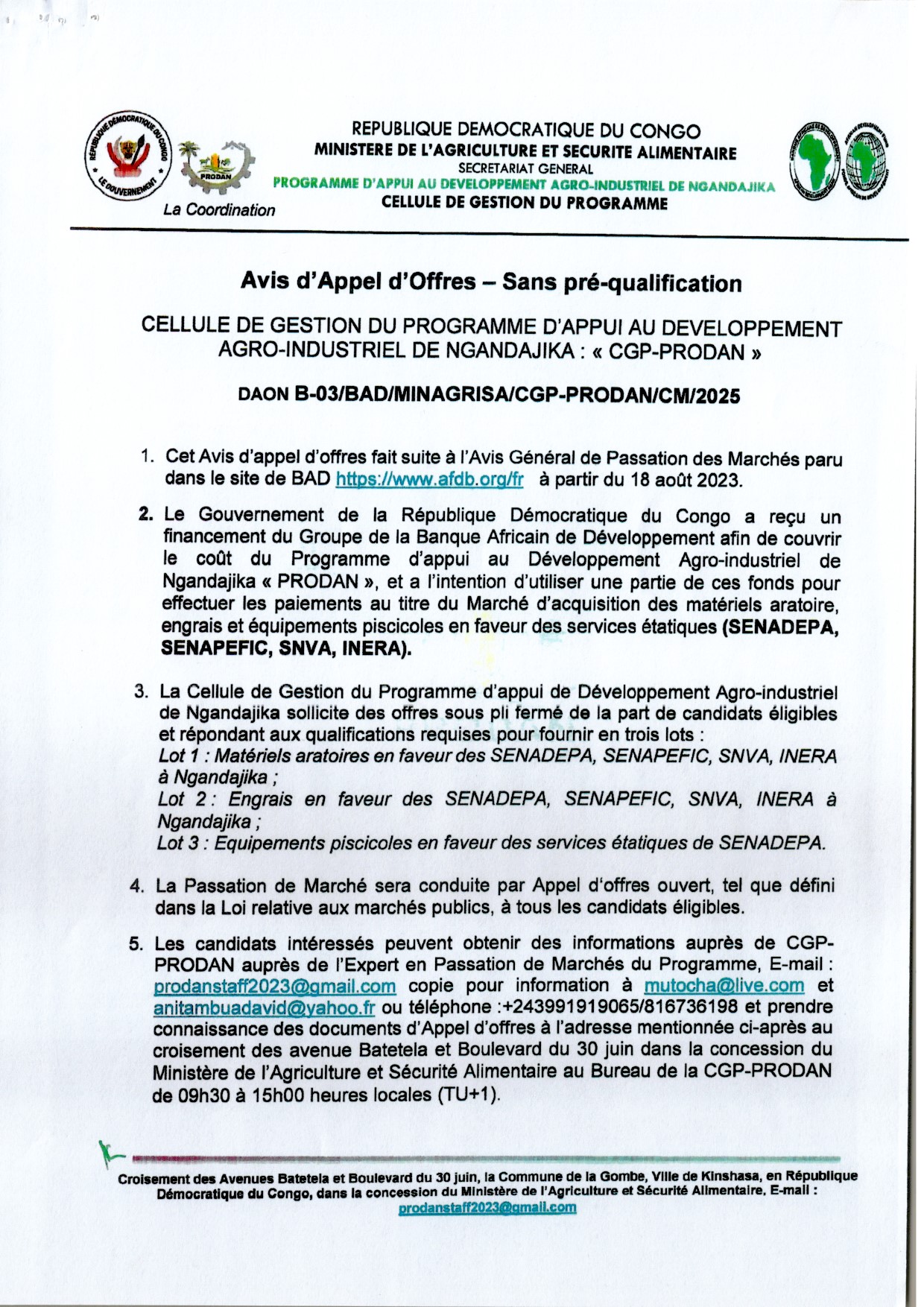 Acquisition des matériels aratoire, engrais et équipements piscicoles en faveur des services étatiques (SENADEPA, SENAPEFIC, SNVA, INERA)