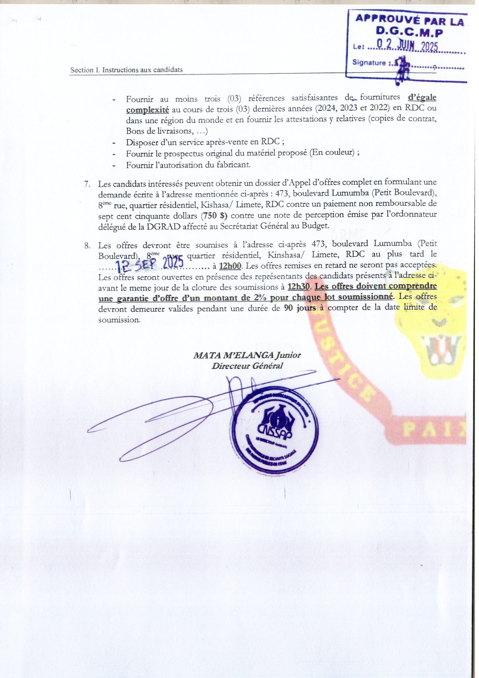 Acquisition des matériels de transport pour le compte de la Caisse Nationale de Sécurité Sociale des Agents Publics de l’Etat (CNSSAP)