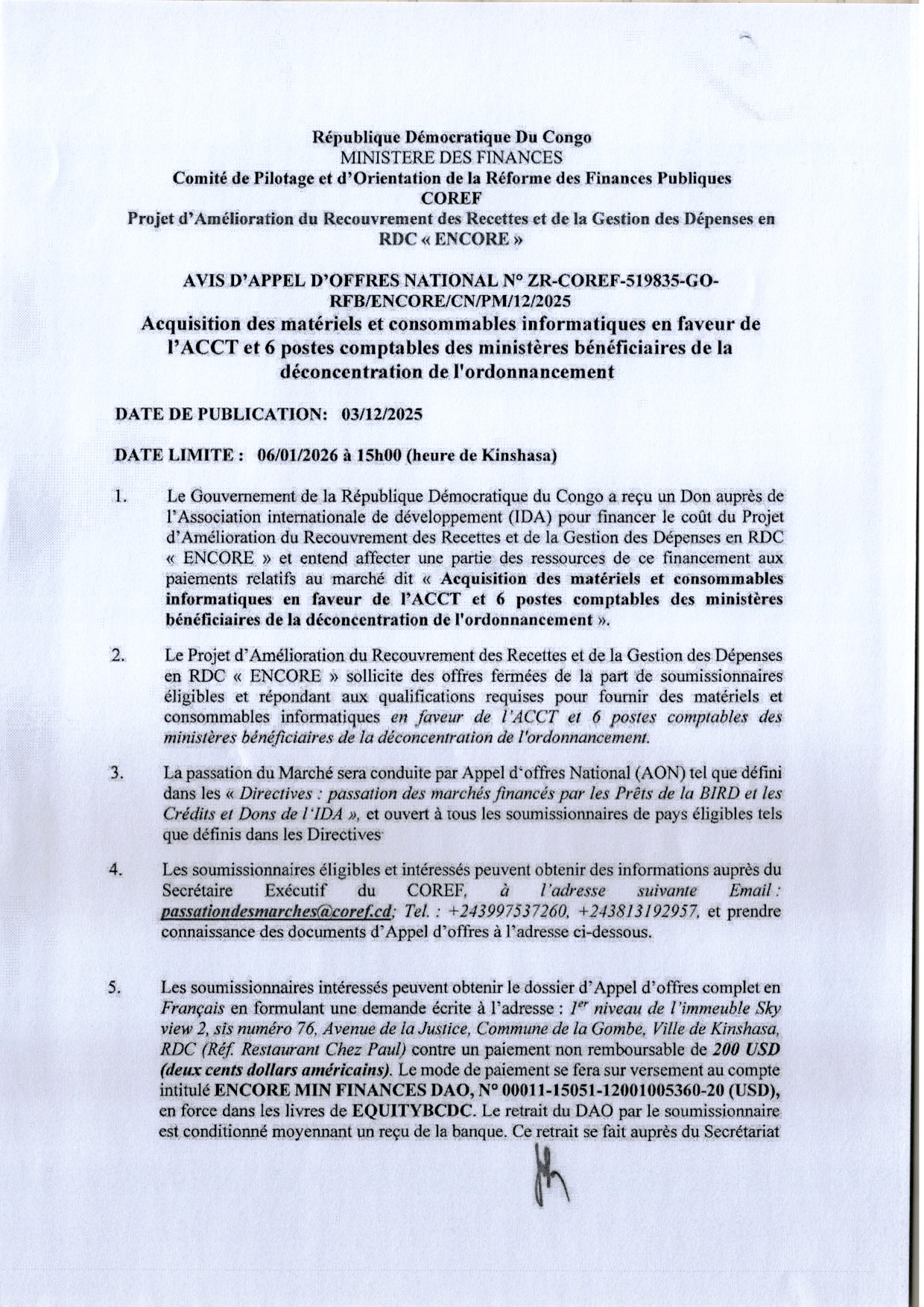 Acquisition des matériels et consommables informatiques en faveur de l’ACCT et 6 postes comptables des ministères bénéficiaires de la déconcentration de l’ordonnancement