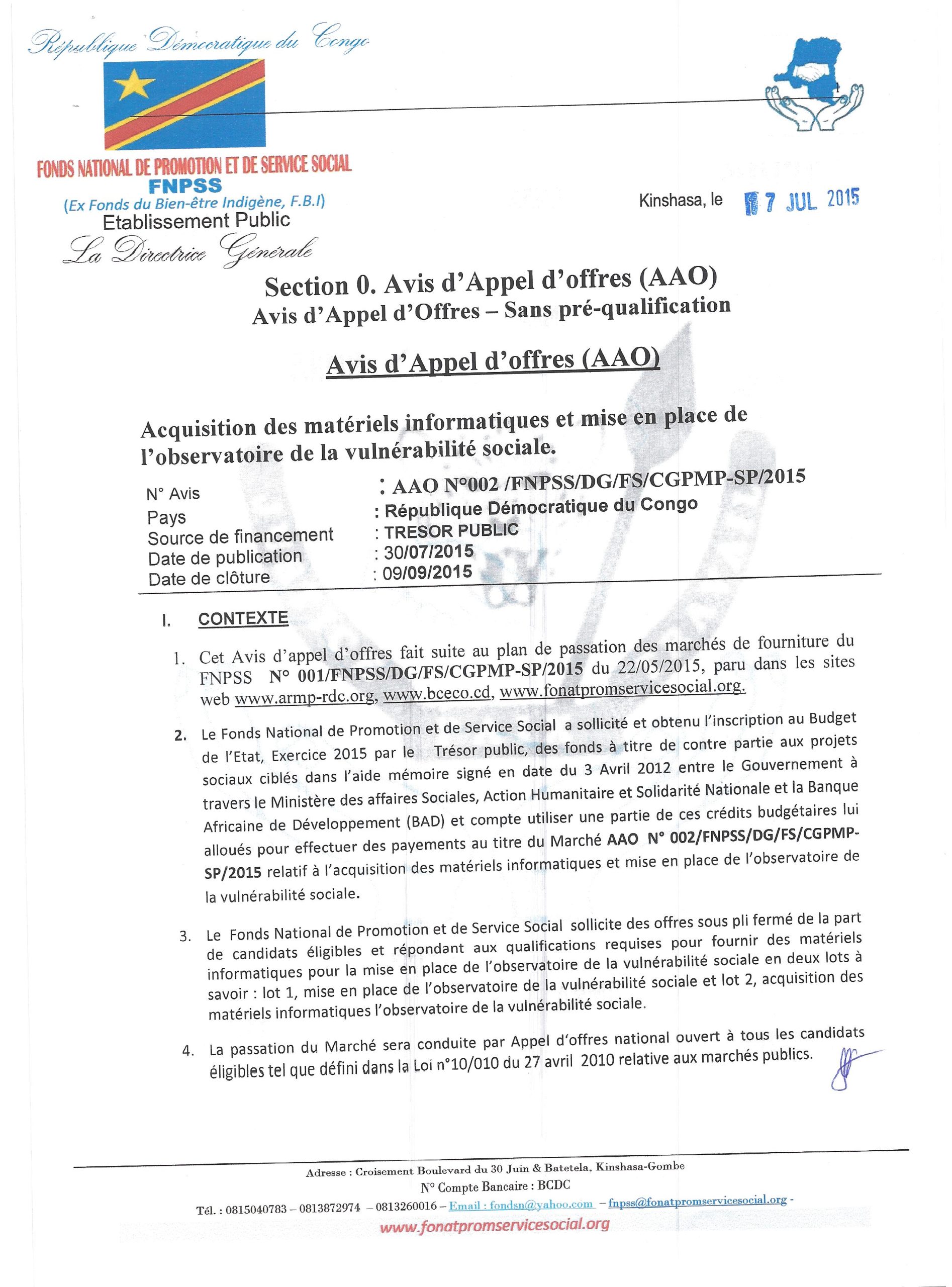 Acquisition des matériels informatiques et mise en place de l’observatoire de la vulnérabilité sociale.