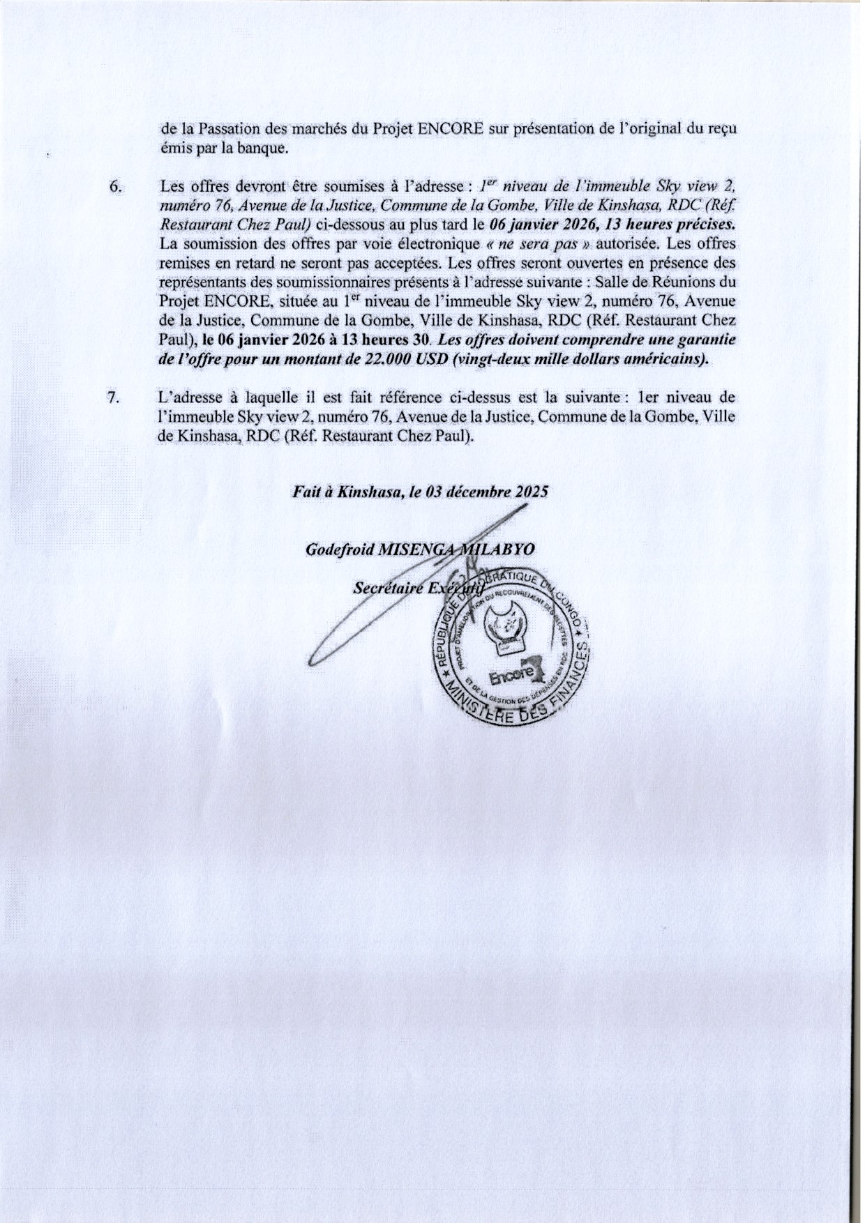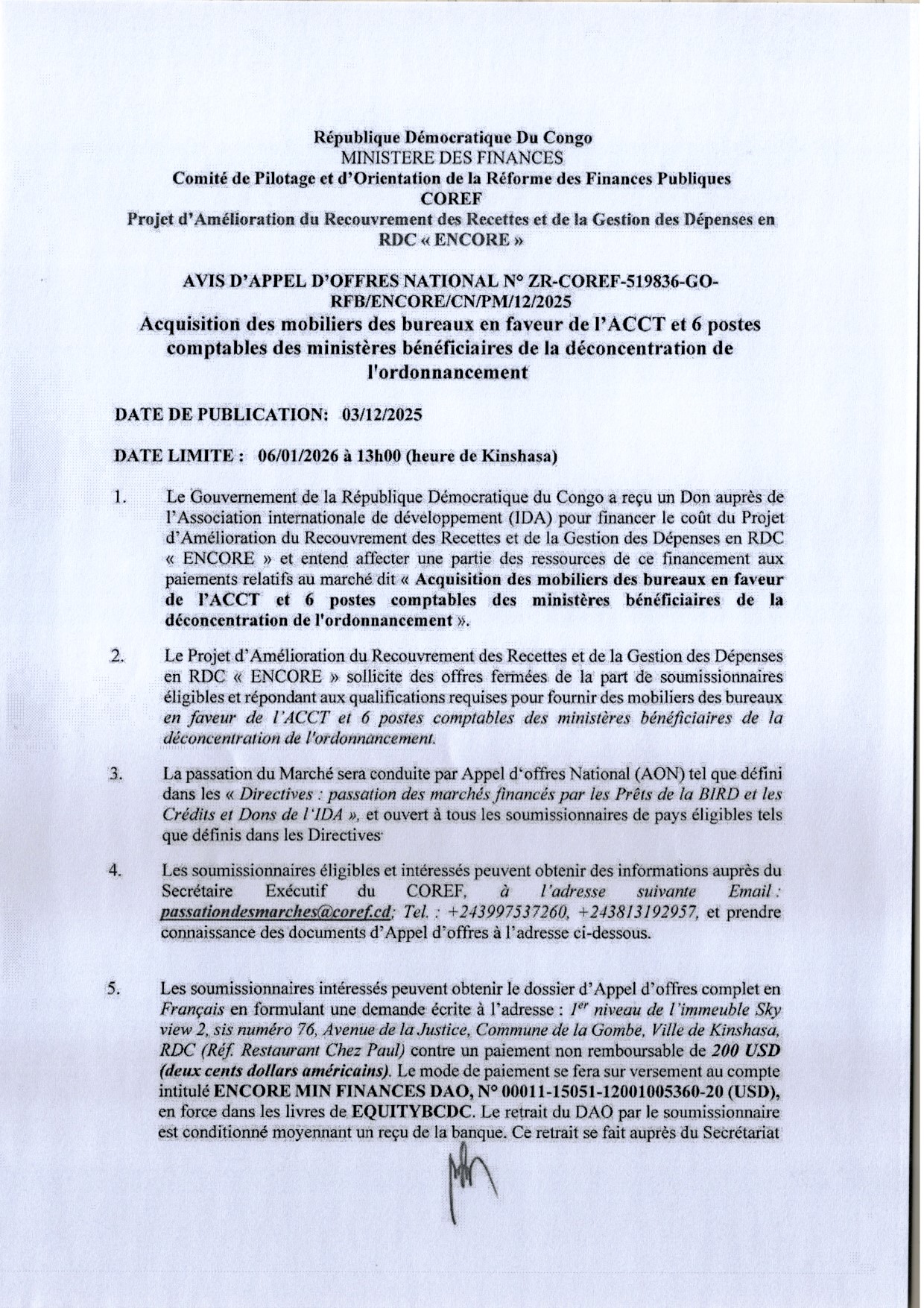 Acquisition des mobiliers des bureaux en faveur de l’ACCT et 6 postes comptables des ministères bénéficiaires de la déconcentration de l’ordonnancement