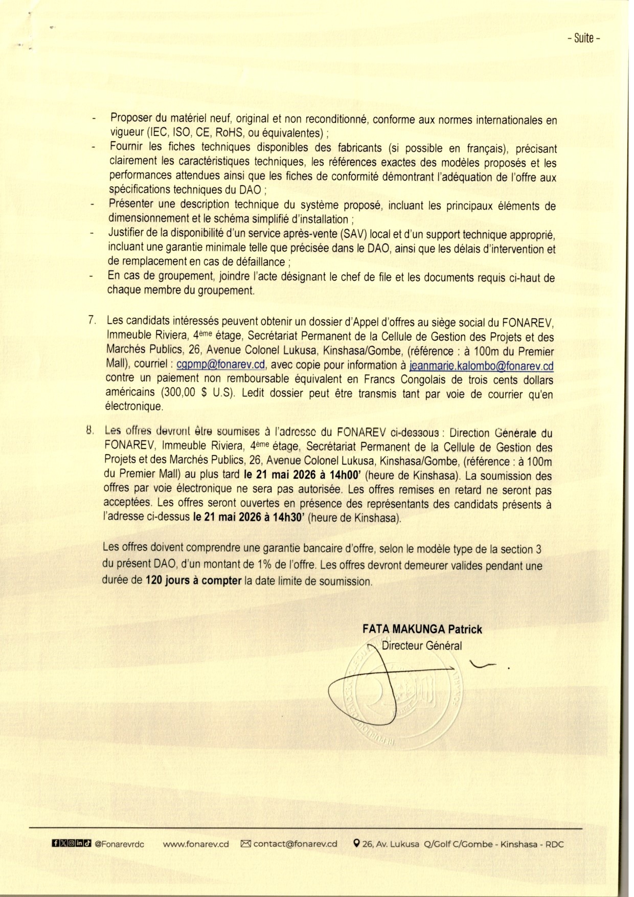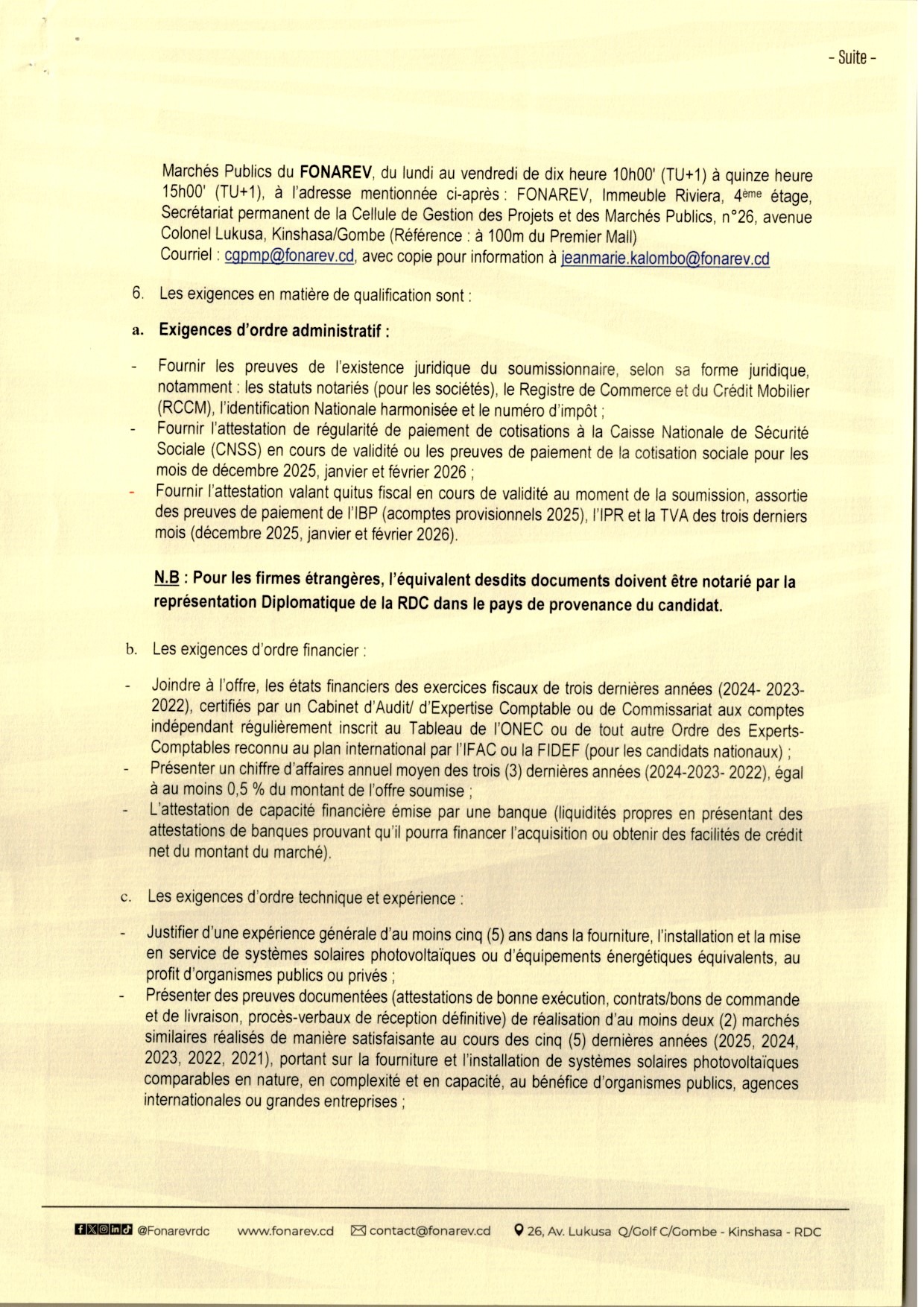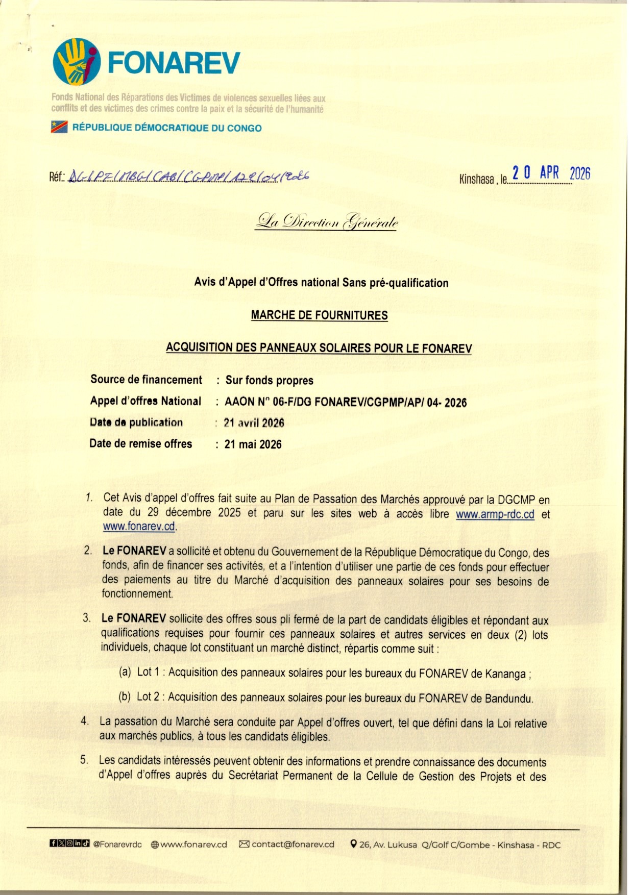 Acquisition des Panneaux Solaires pour le FONAREV