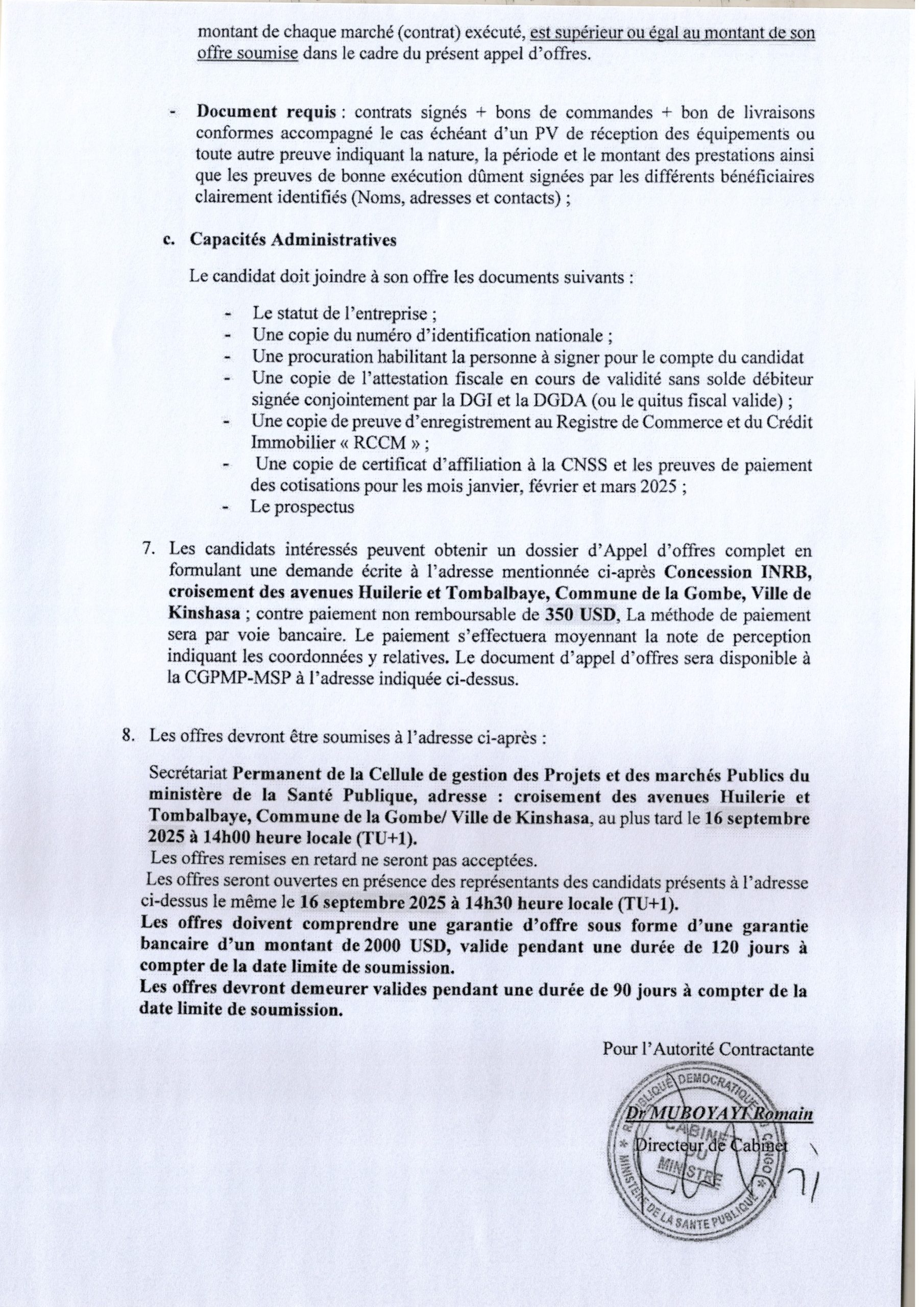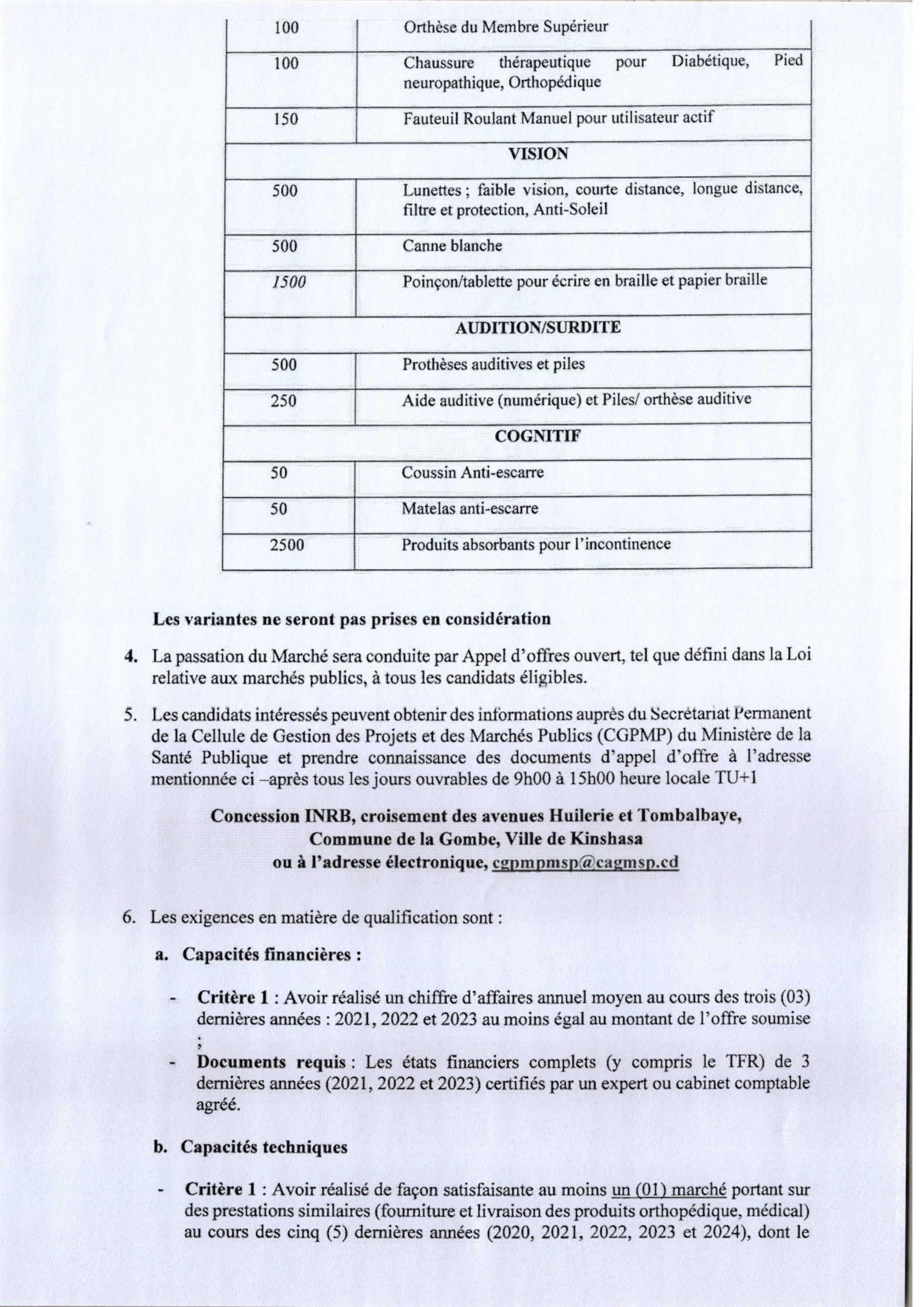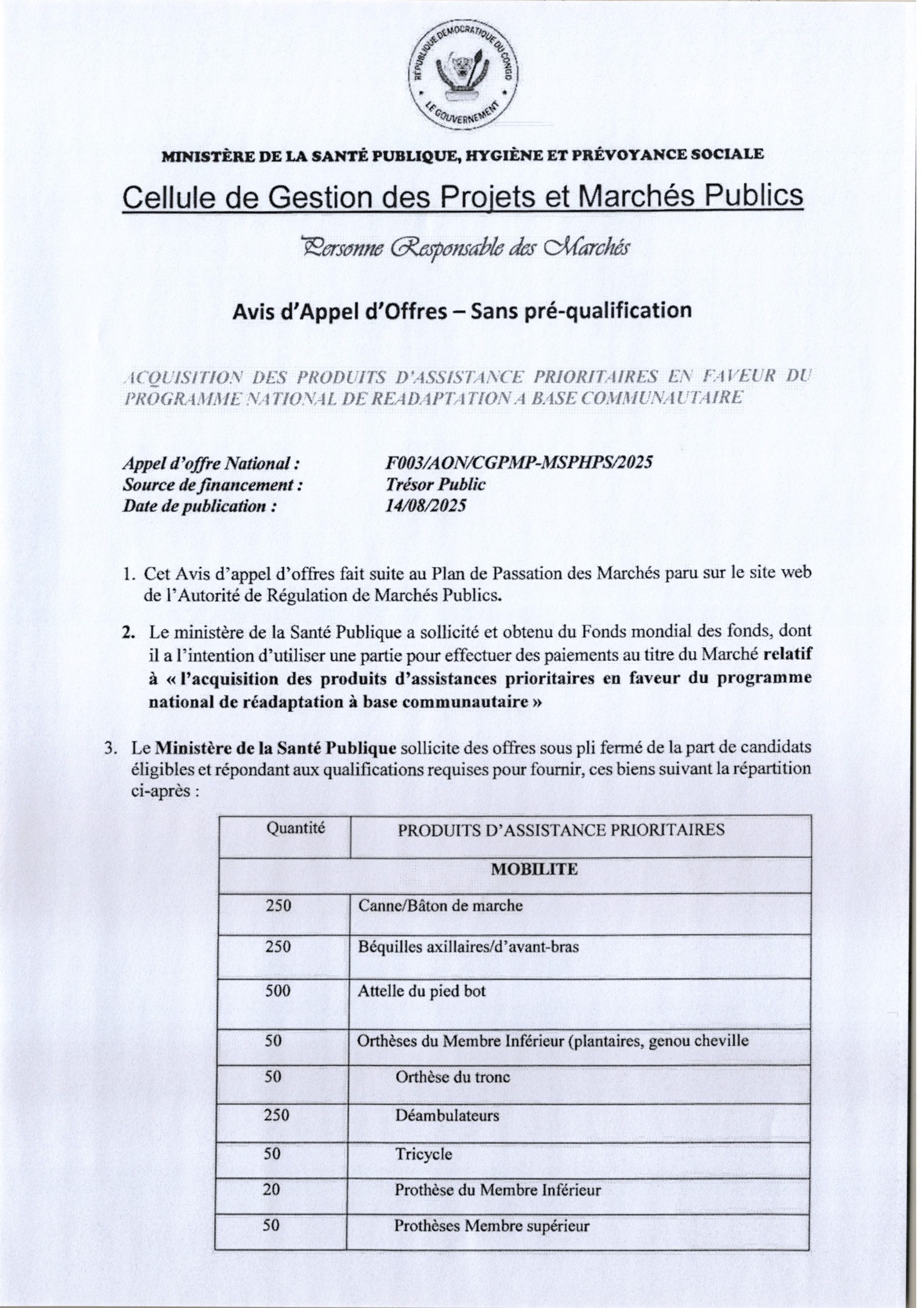 Acquisition des produits d’assistance prioritaires en faveur du programme national de réadaptation à base communautaire.