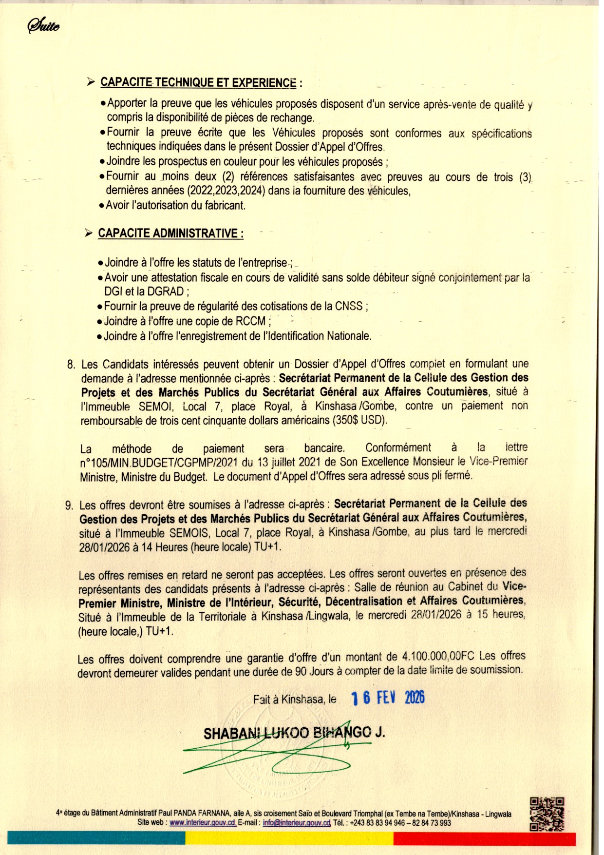 Acquisition des Véhicules Terrestres (à deux (2) lots distincts).