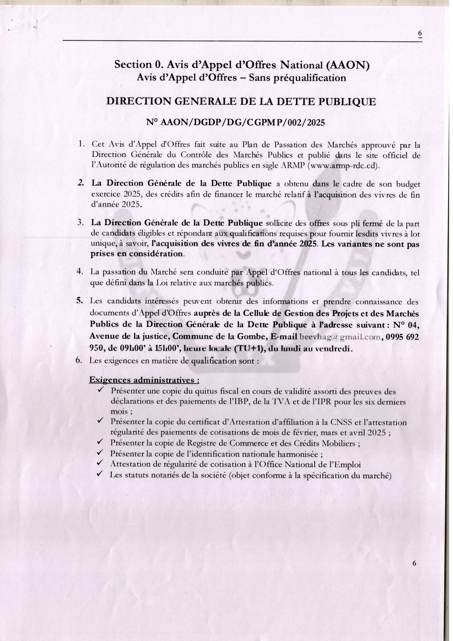 Acquisition des vivres de fin d’année 2025.