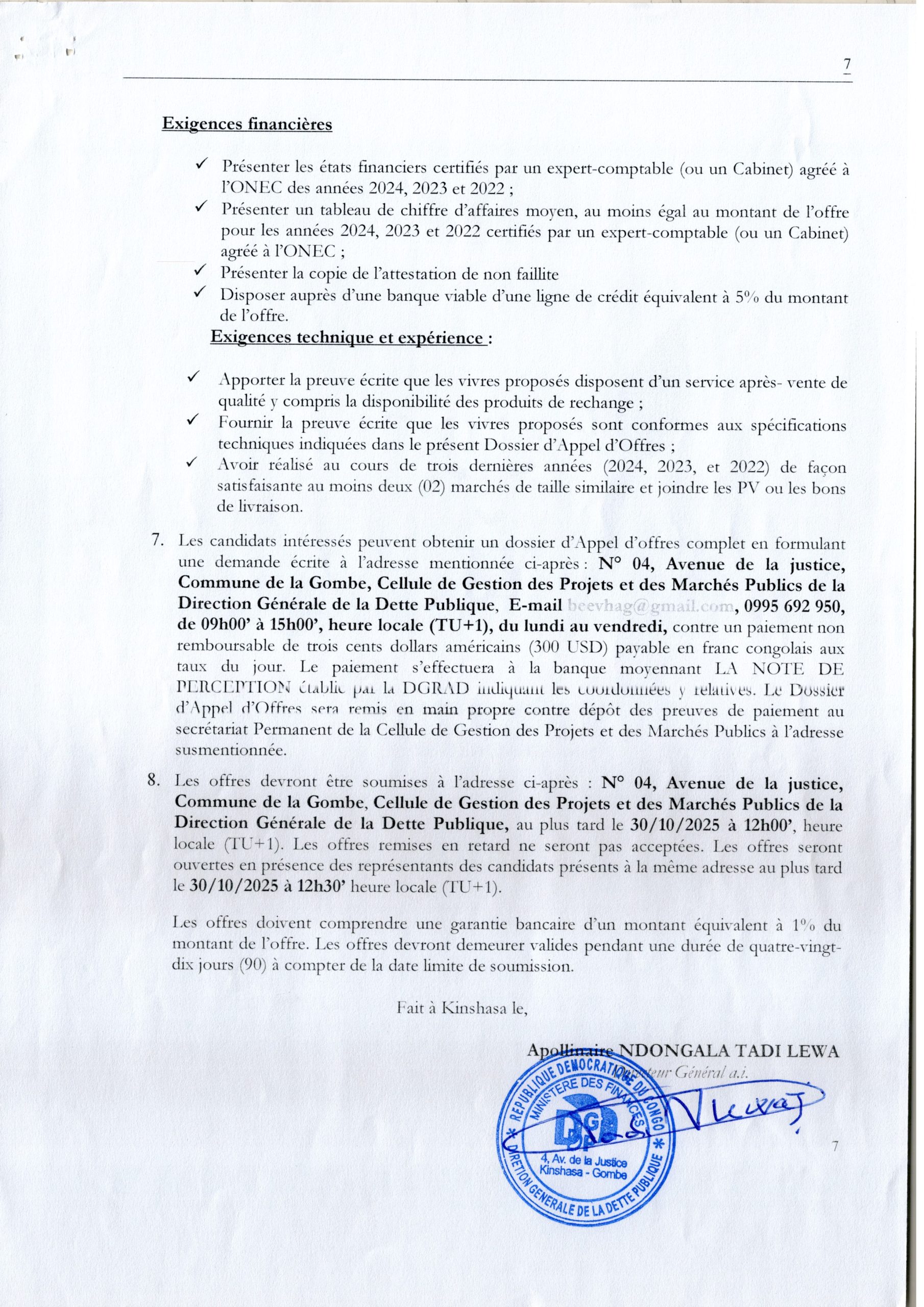 DIRECTION GENERALE DE LA DETTE PUBLIQUE "DGDP"