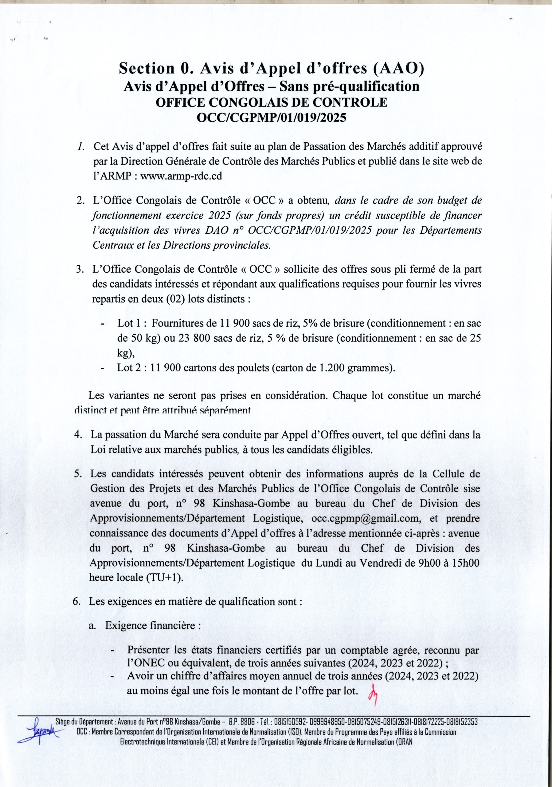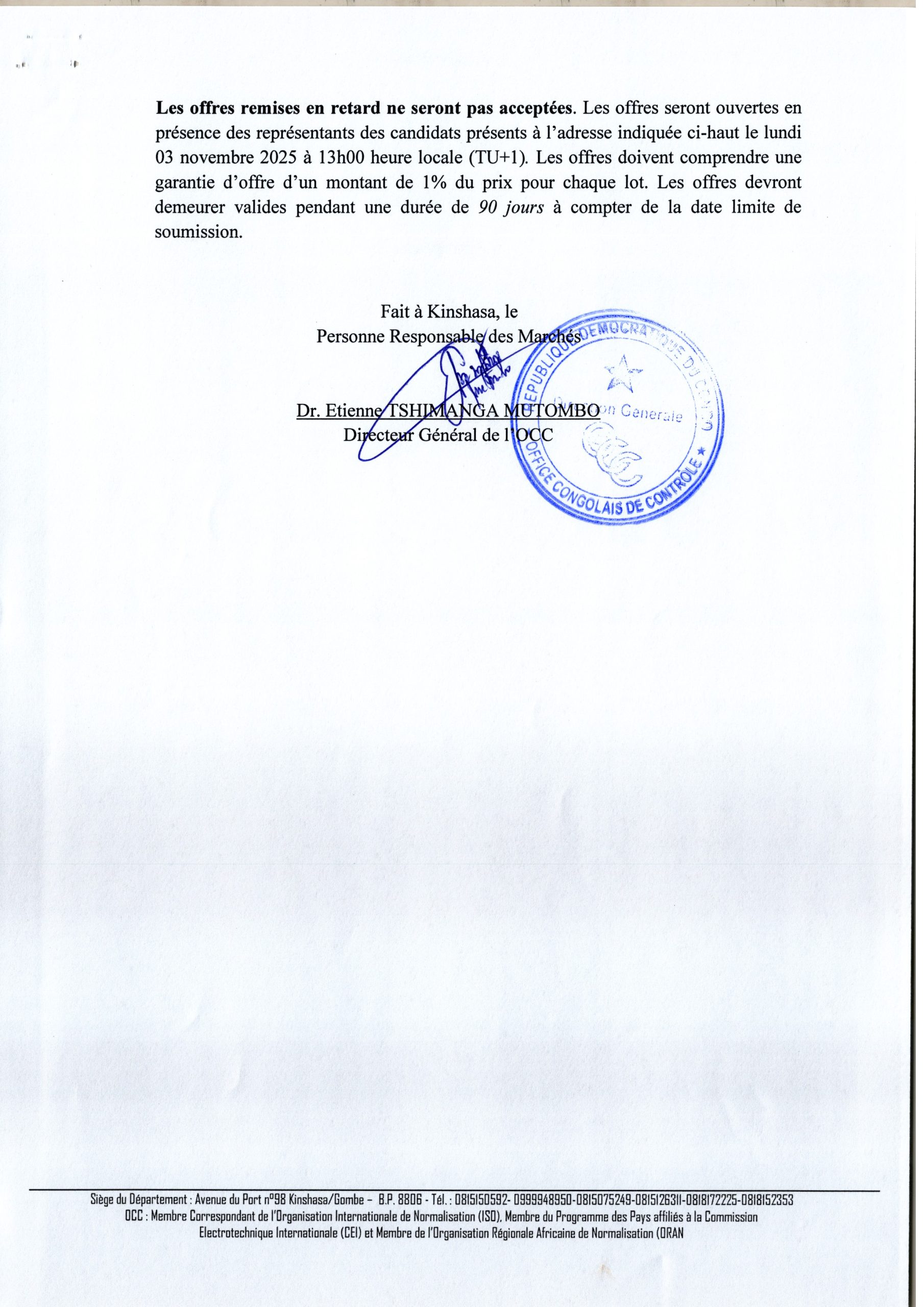 OFFICE CONGOLAIS DE CONTROLE