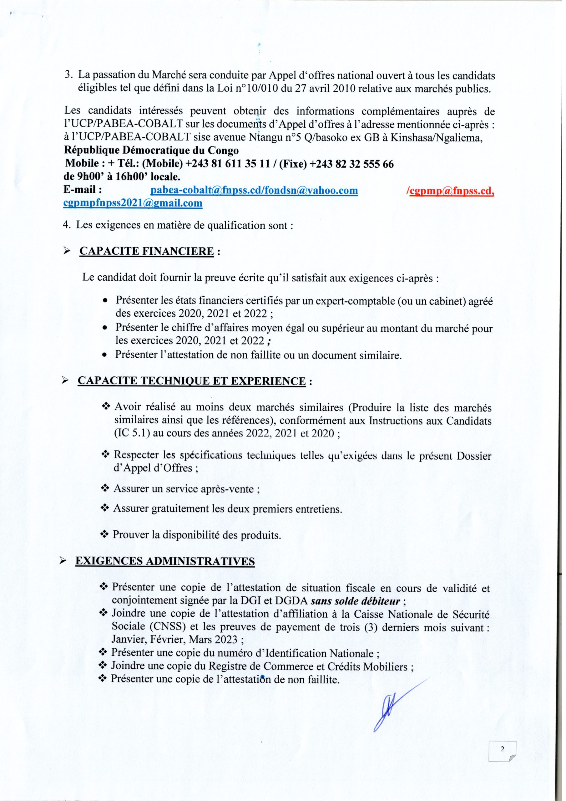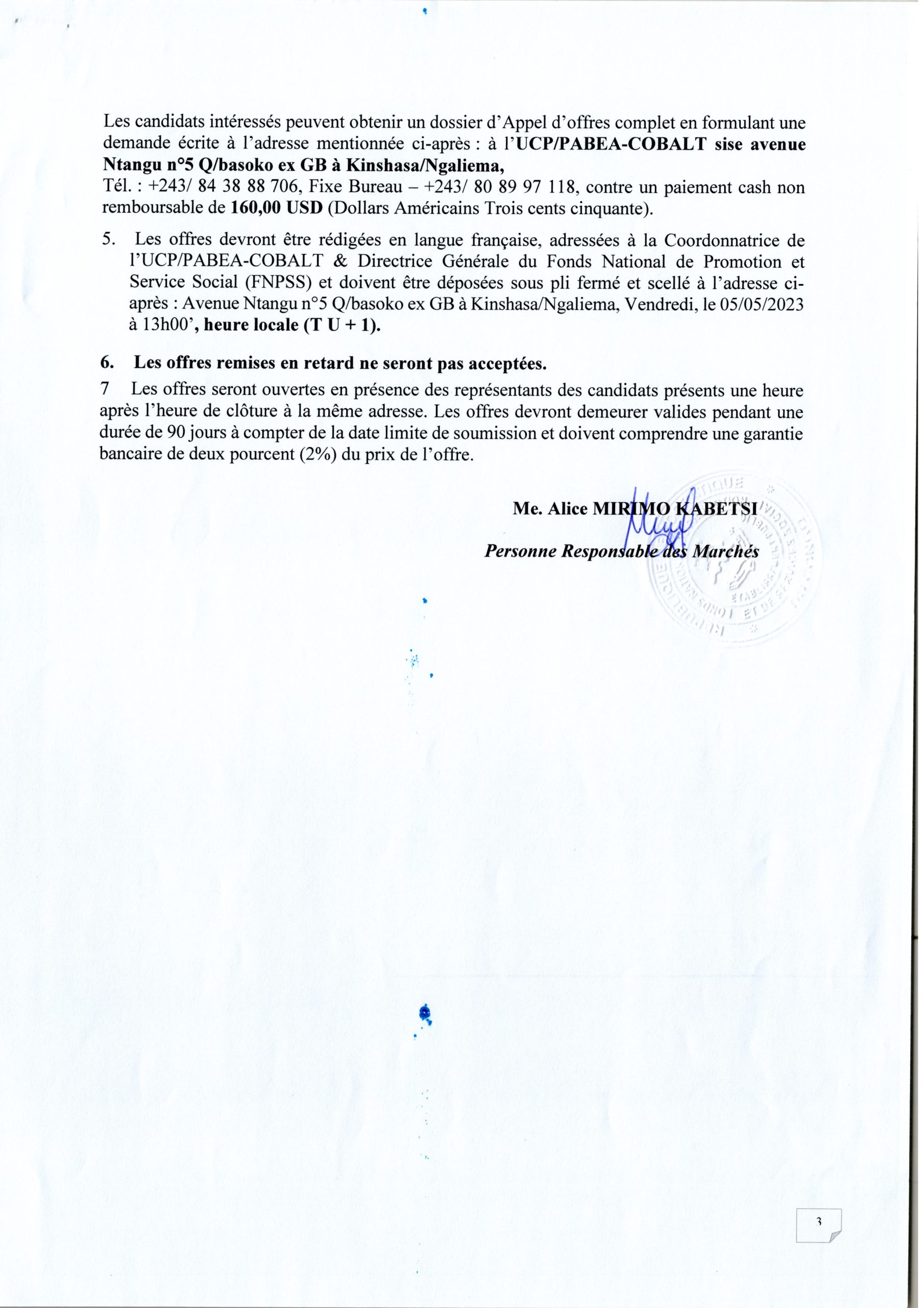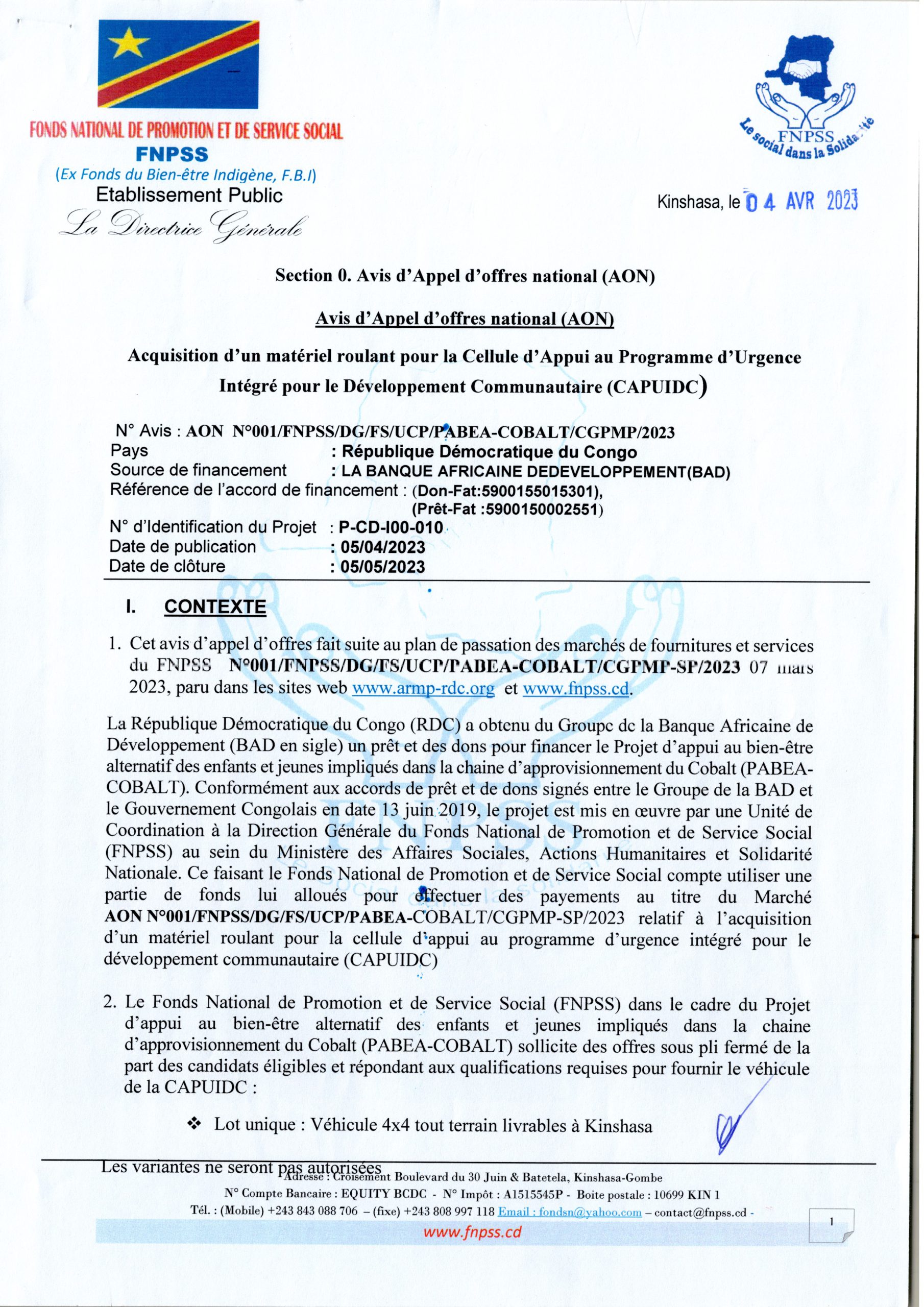 Acquisition d’un matériel roulant pour la Cellule d’Appui au Programme d’urgence Intégré pour le Développement Communautaire (CAPUIDC).