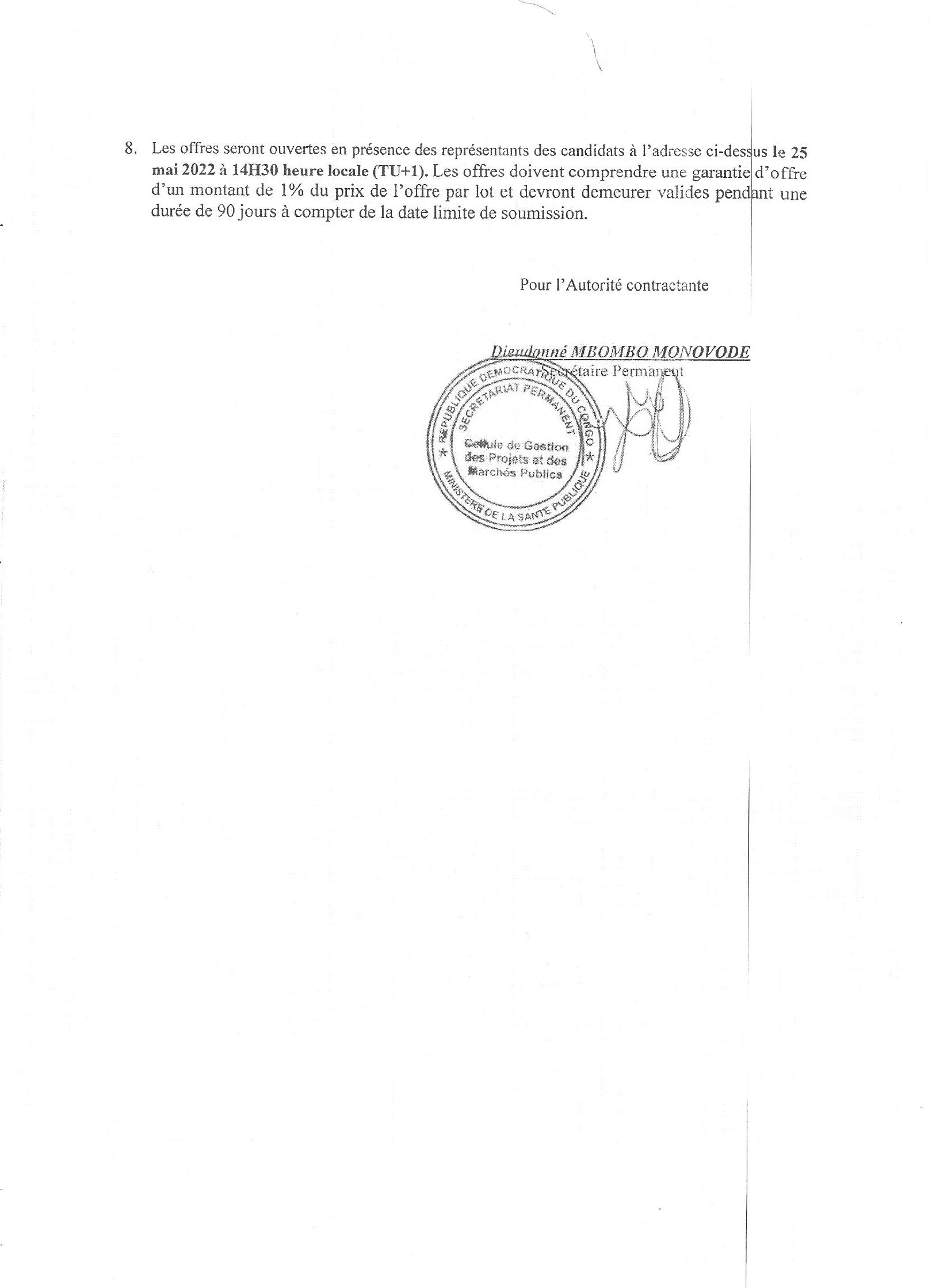 Acquisition matériel roulant au profit du programme national de santé de la reproduction et DEP/Santé.
