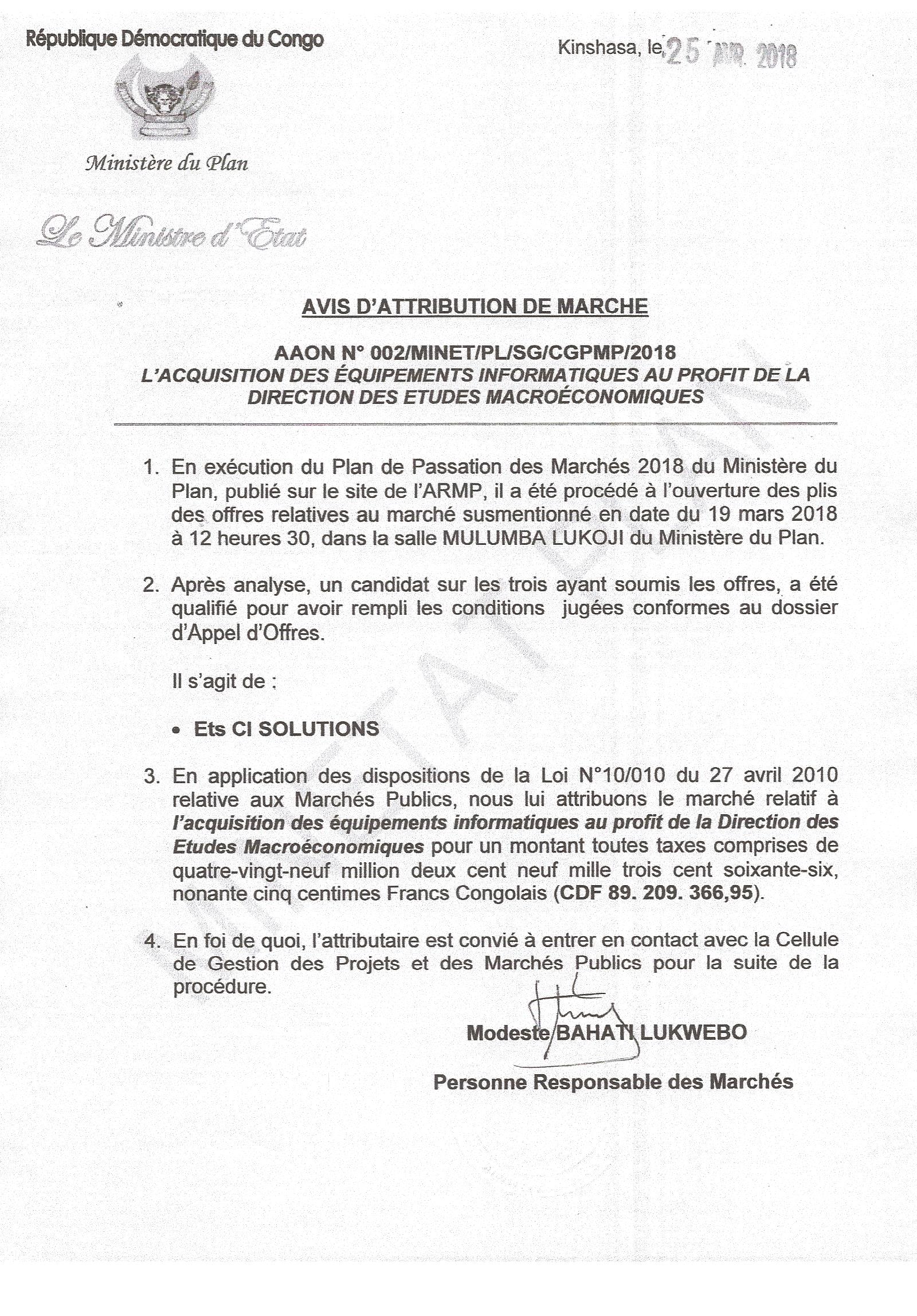 Attribution de marché d’acquisition des équipements informatiques au profit de la direction des études macroéconomiques à l’Ets CI SOLUTIONS.
