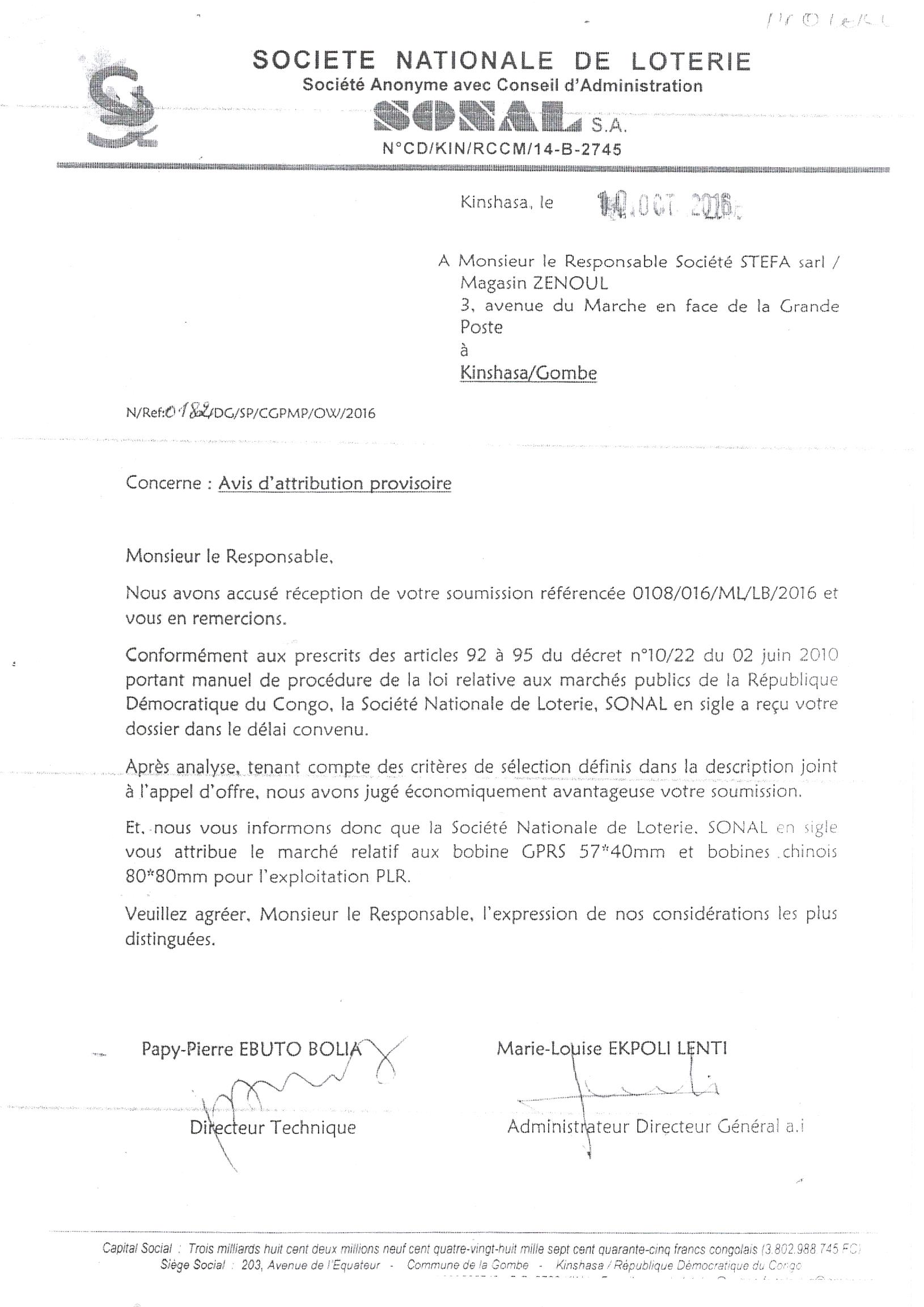 Attribution provisoire du marché relatif aux bobines gprs et bobines chinoise pour l’exploitation PLR.