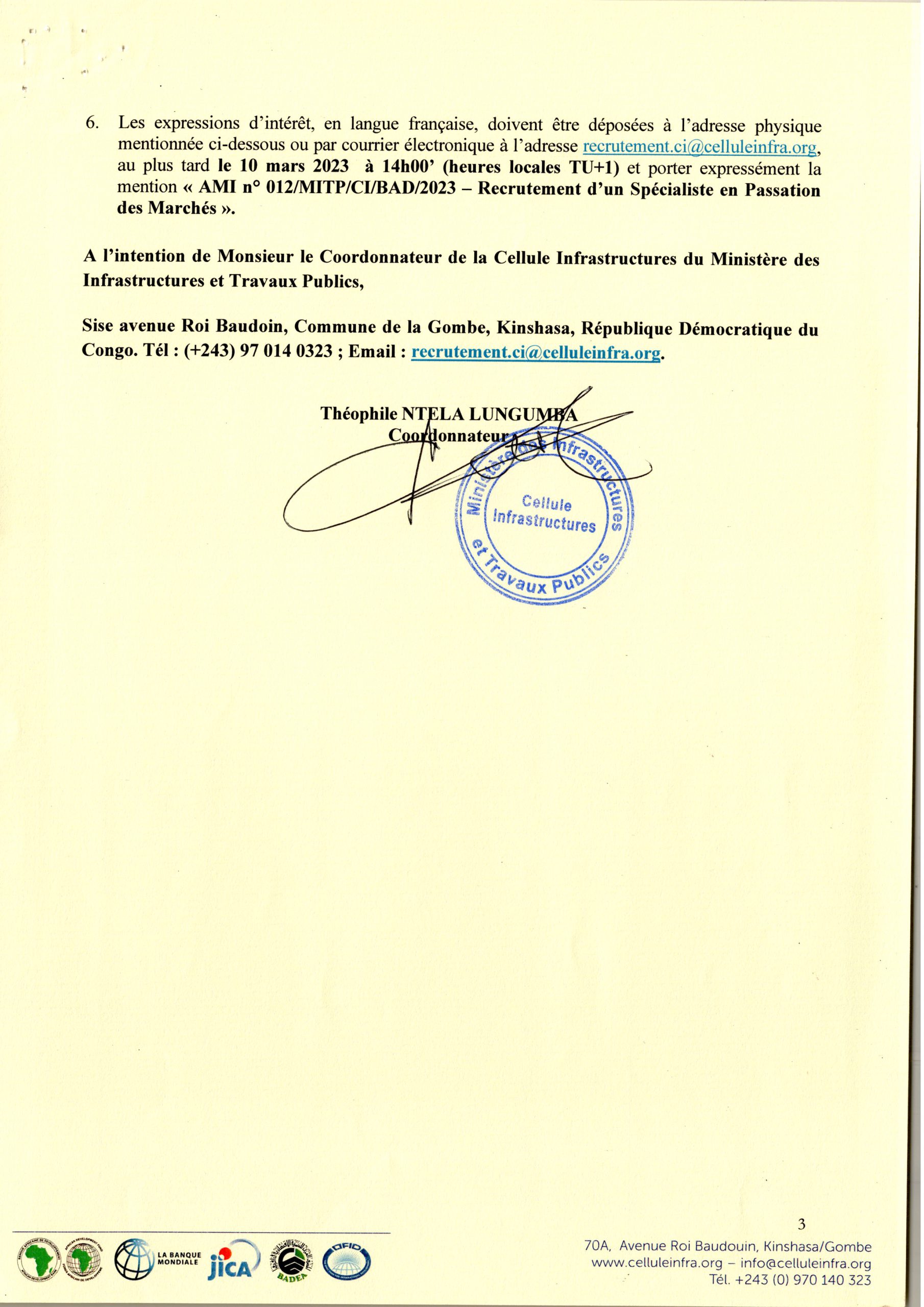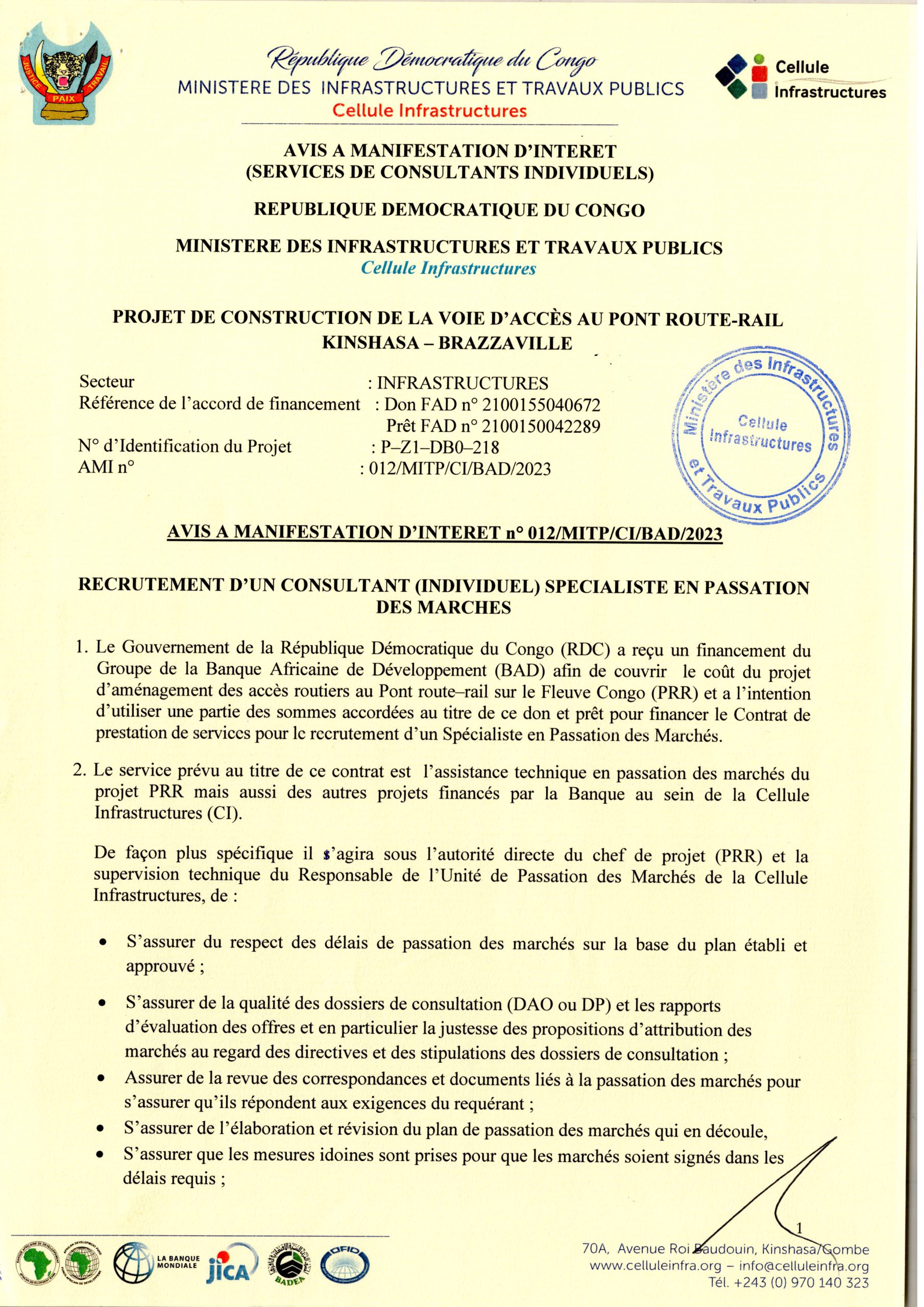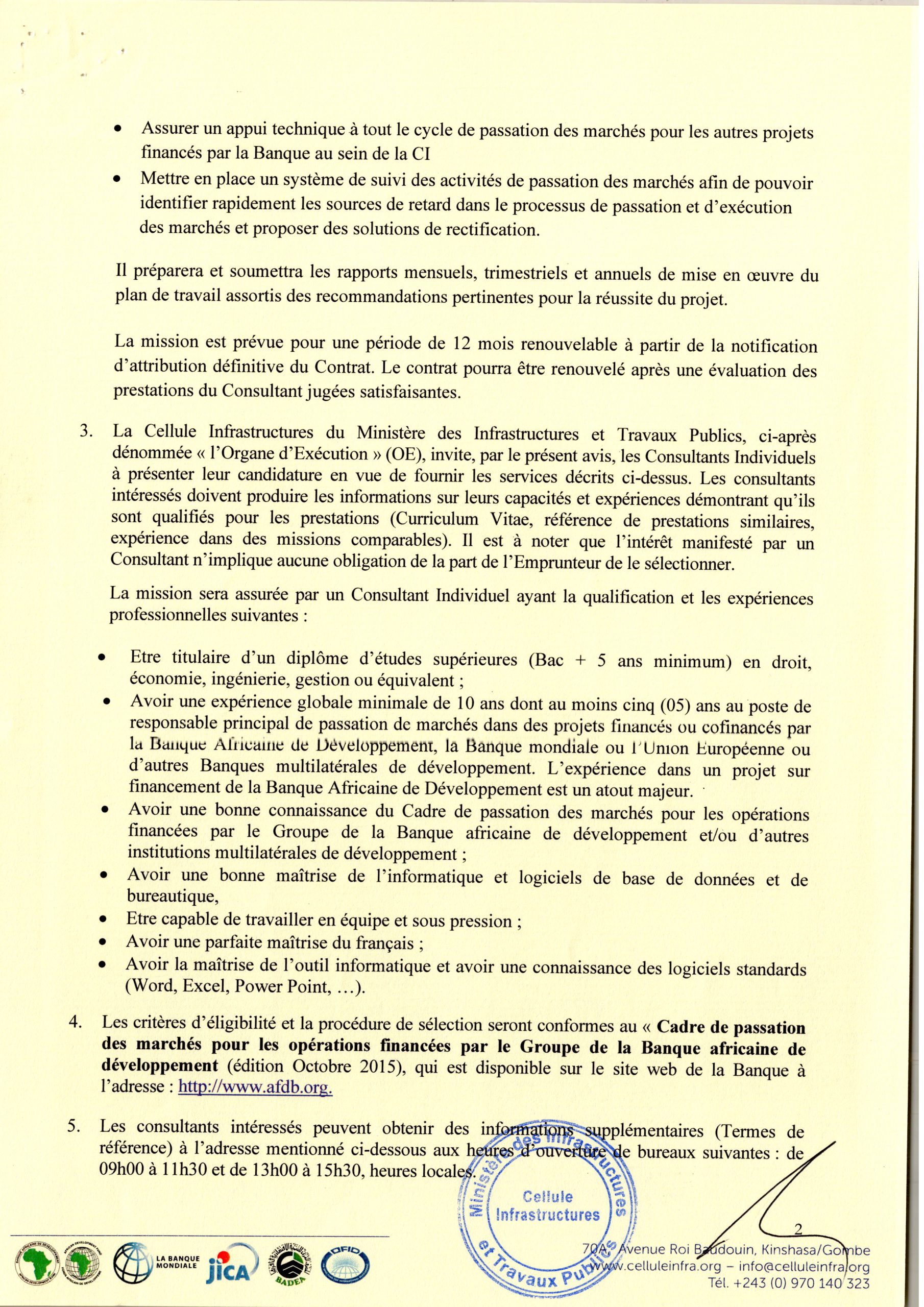 Avis à manifestation d’intérêt d’un consultant (individuel) spécialiste en passation des marches