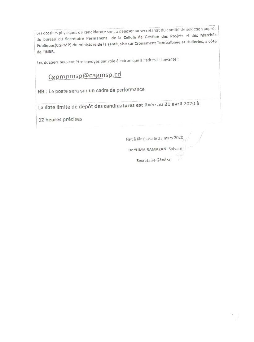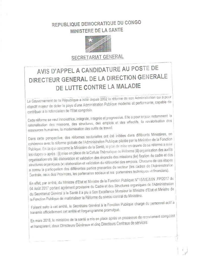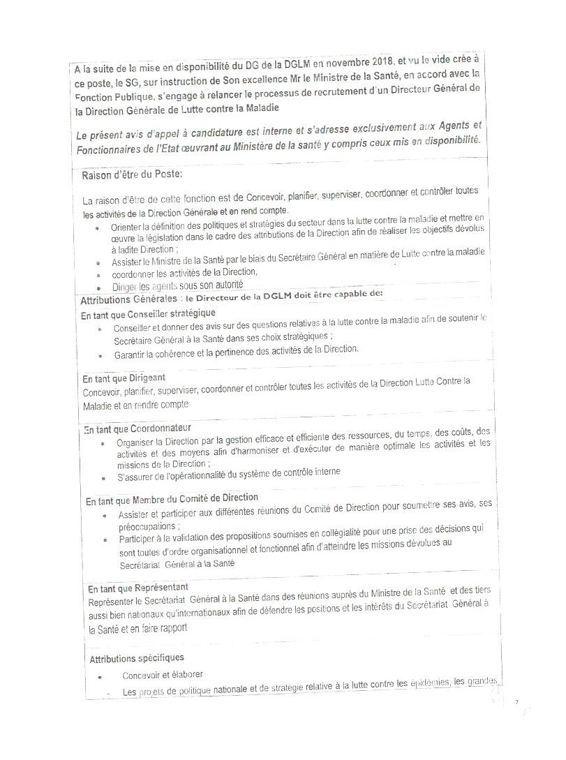AVIS D’APPEL À CANDIDATURE AU POSTE DE DIRECTEUR GÉNÉRAL DE LA DIRECTION GÉNÉRALE DE LUTTE CONTRE LA MALADIE