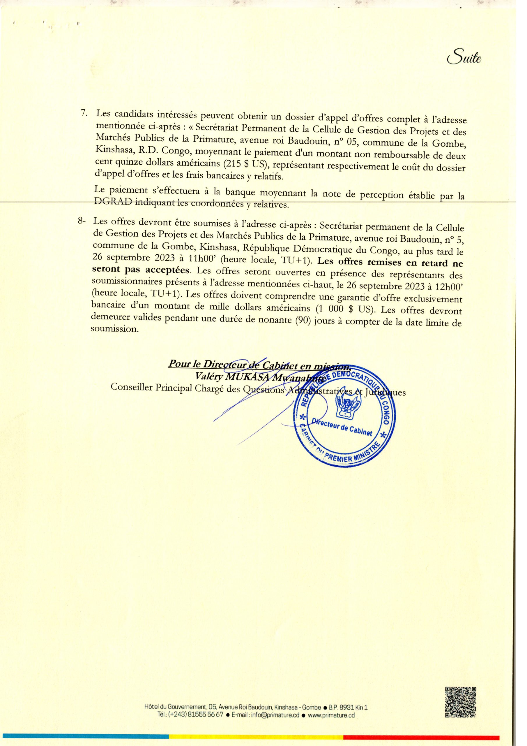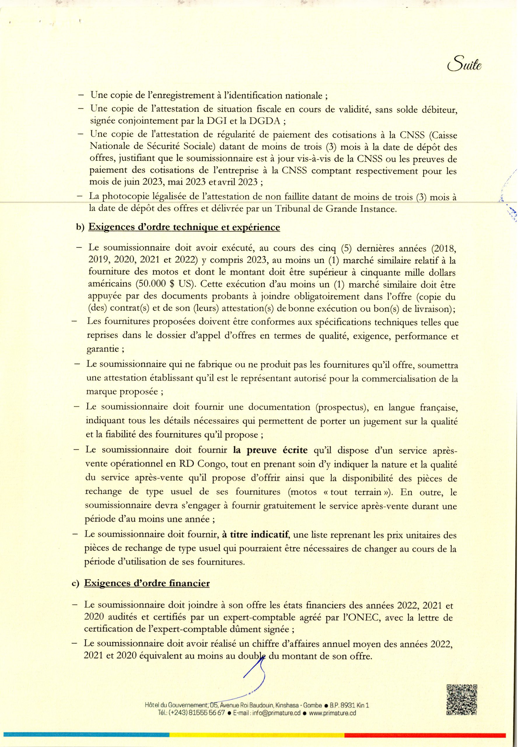Avis d’appel d’offres de la Primature relatif a l’acquisition des motos ” tout terrain” au profit de la Cellule d’analyse des indicateurs de développement (CAID).