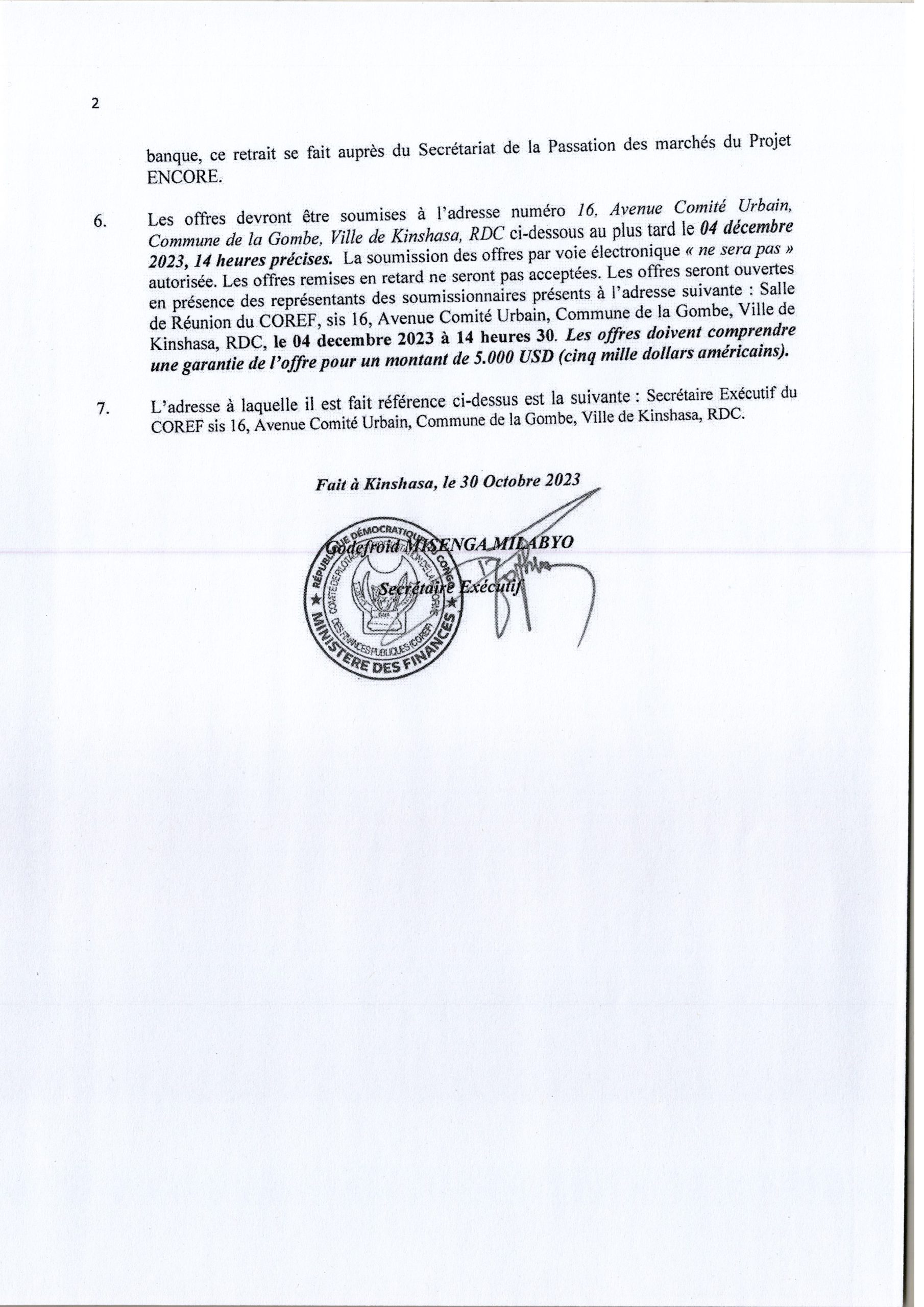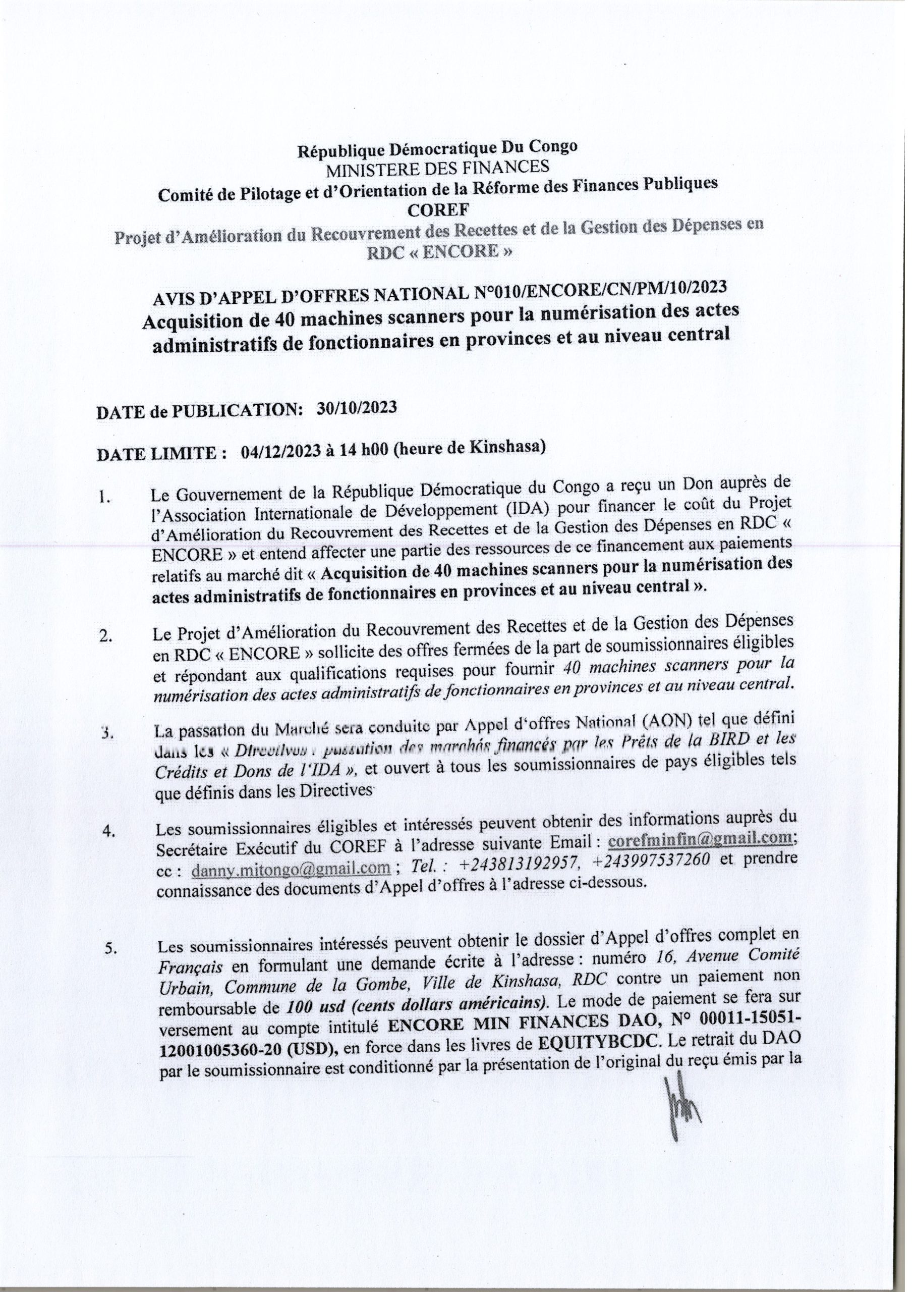 Avis d’appel d’offres National du COREF relatif à l’acquisition de 40 machines scanners pour la numérisation des actes administratifs de fonctionnaires en provinces et au niveau central.
