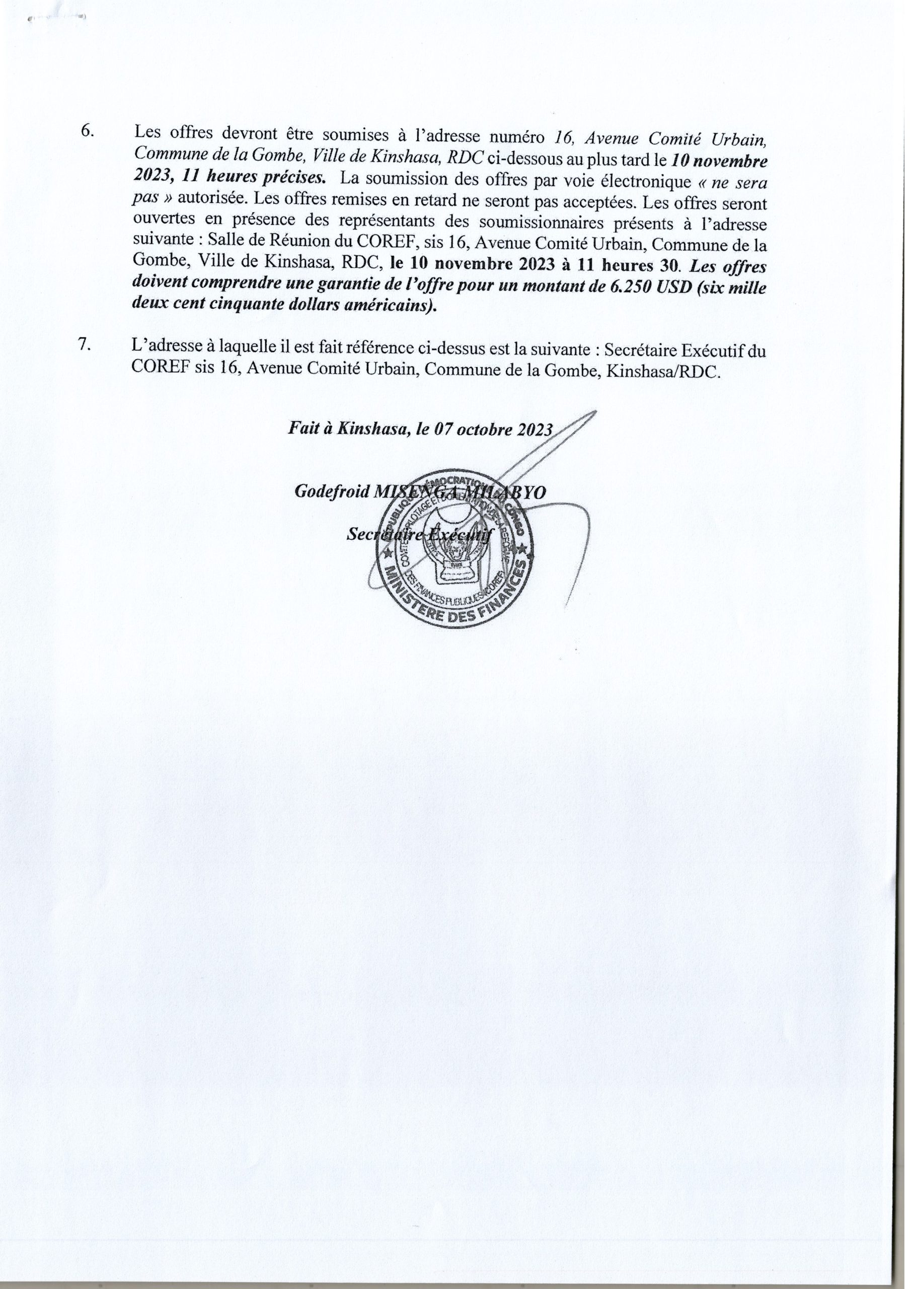 AVIS D’APPEL D’OFFRES NATIONAL RELATIF À L’ACQUISITION DES MATÉRIELS ET CONSOMMABLES INFORMATIQUES EN FAVEUR DES SERVICES INTERVENANT DANS LA CHAINE DE LA DÉPENSE DU KASAÏ ORIENTAL, DU KASAÏ, DU KASAÏ CENTRAL ET DE LOMAMI.