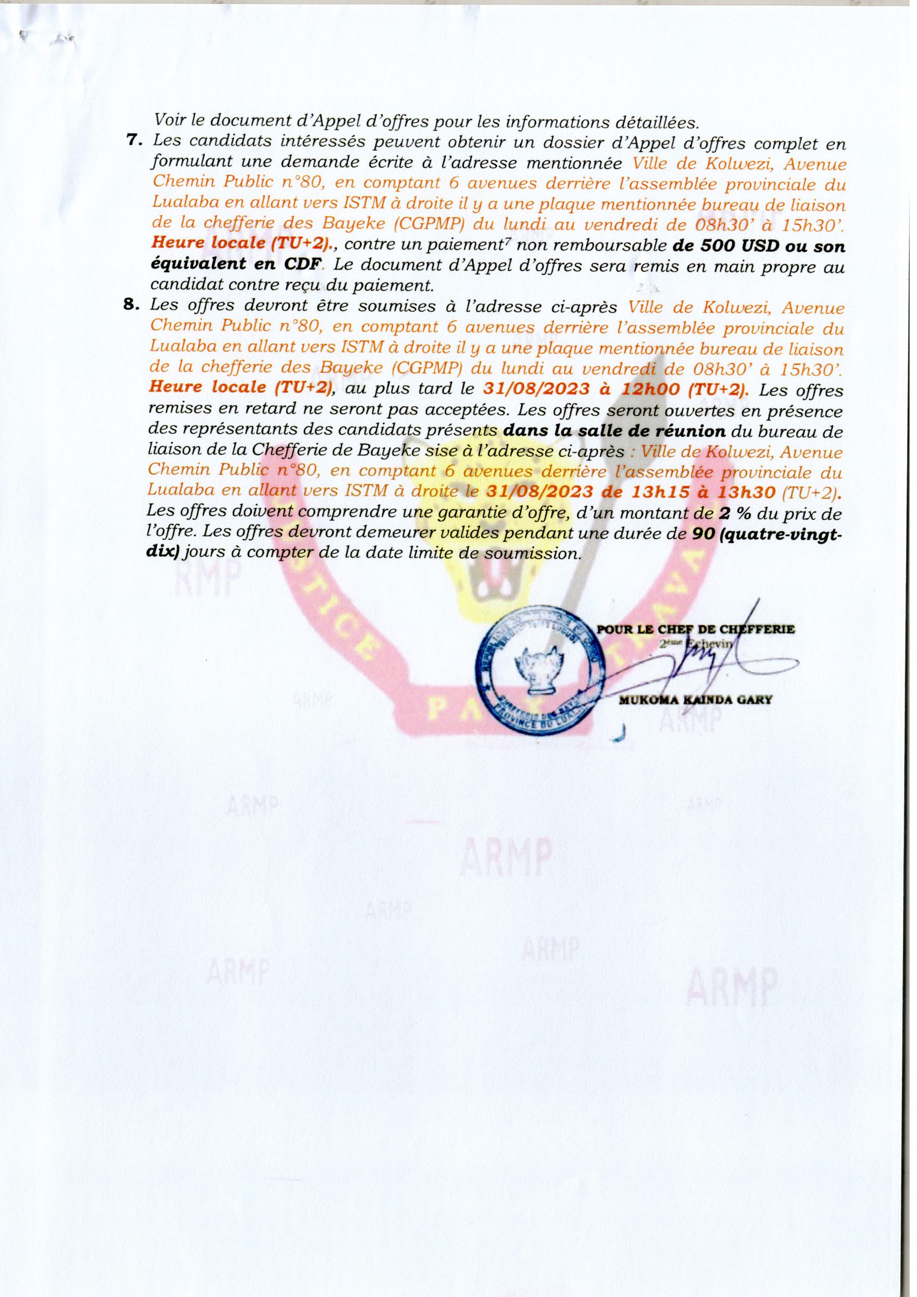 Avis d’appel d’offres relatif à l’acquisition de trois corbillards .