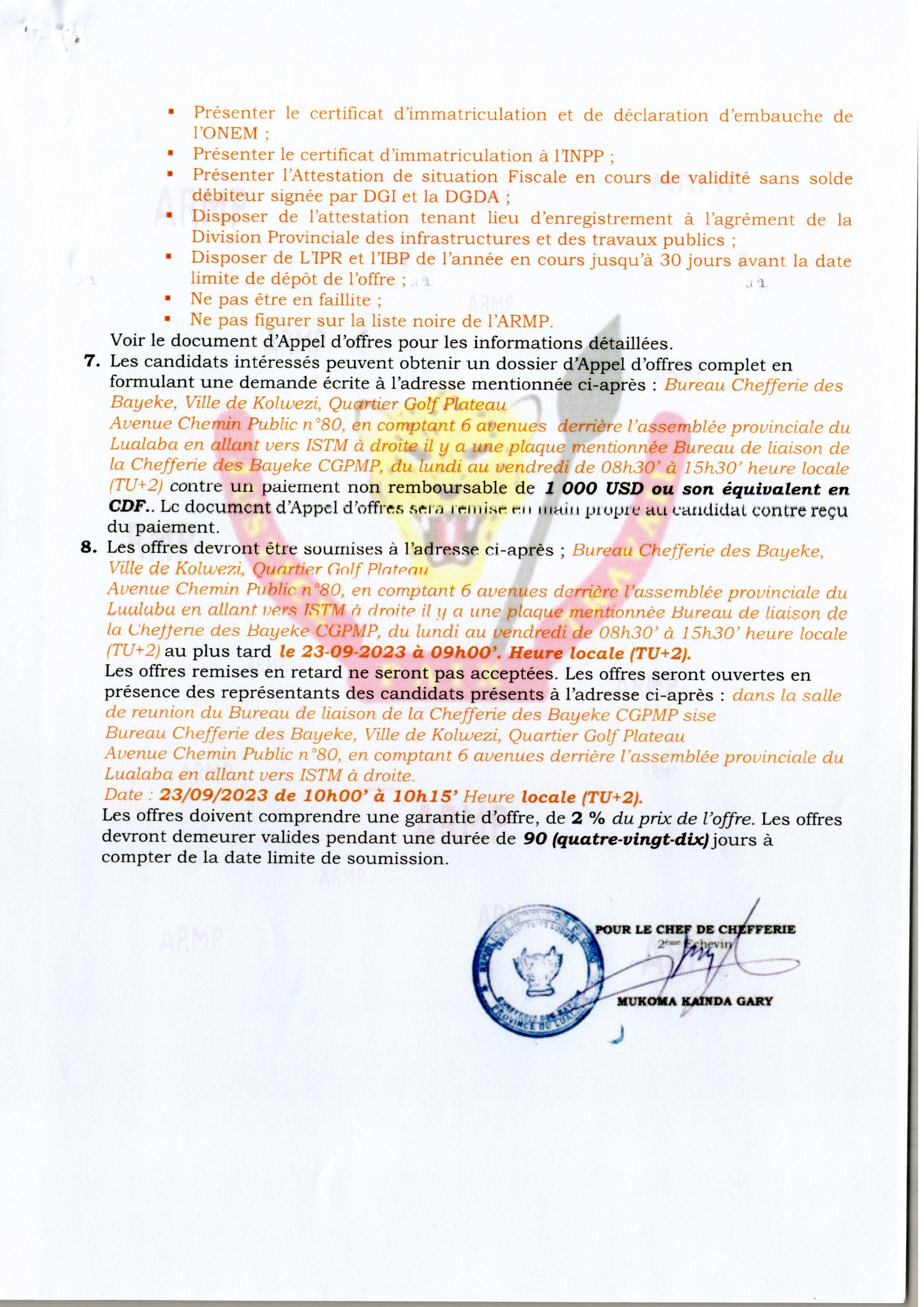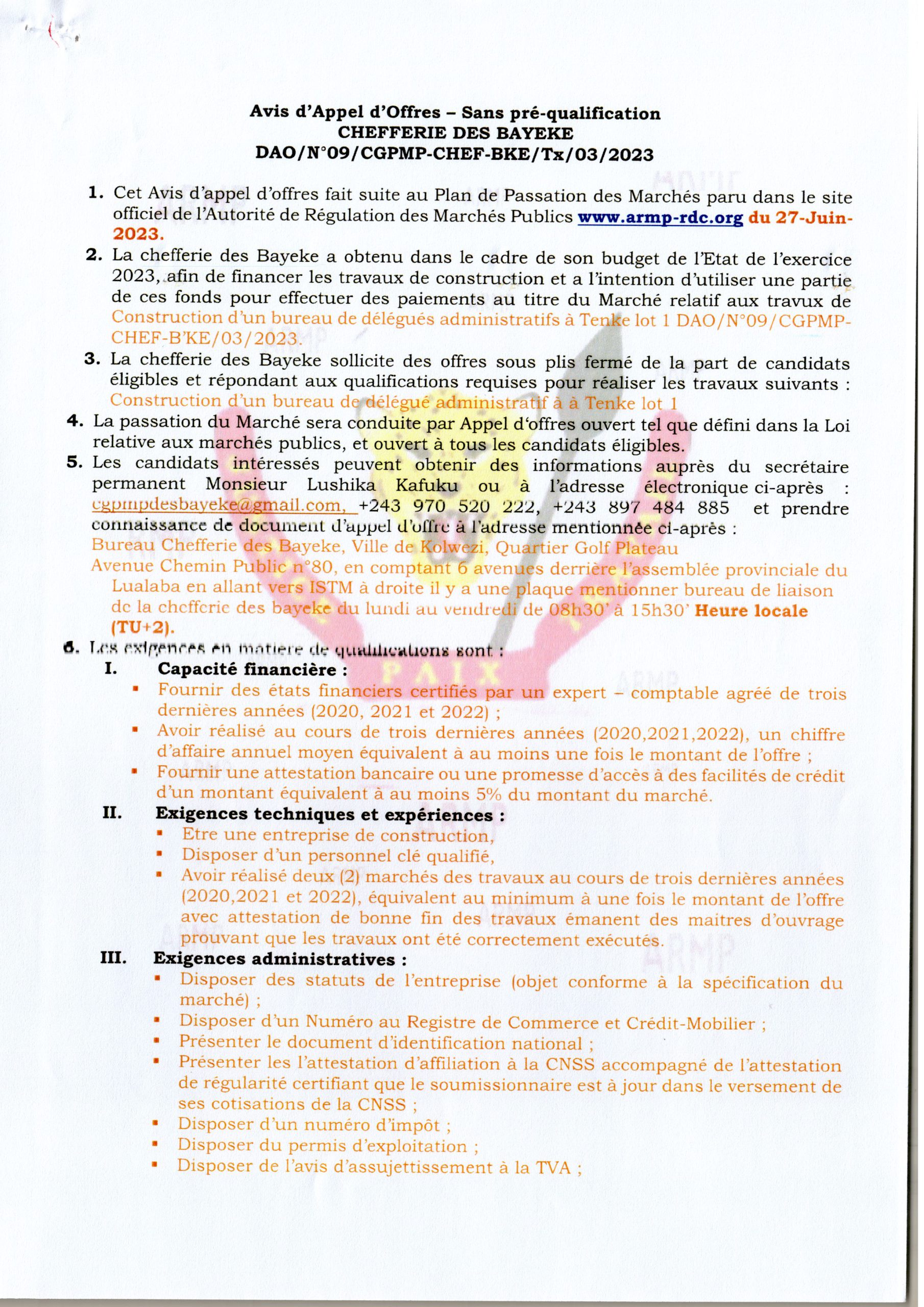 CONSTRUCTION D’UN BUREAU DE DÉLÉGUÉS ADMINISTRATIFS À TENKE LOT 1.