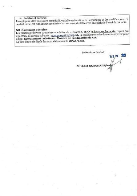 Avis de recrutement des consultants financiers en charge de suivi des campagnes MILD (TASK-FORCE)
