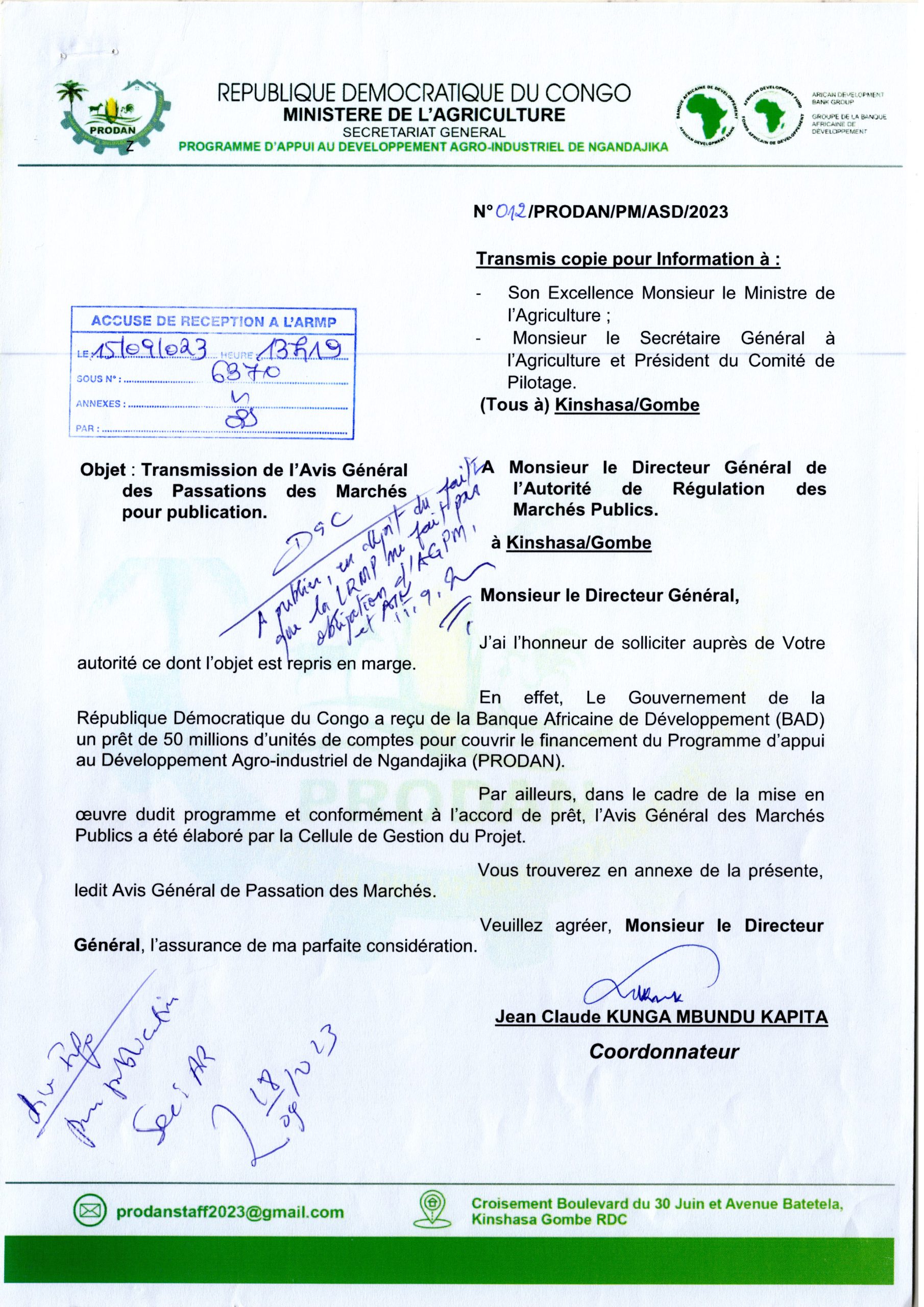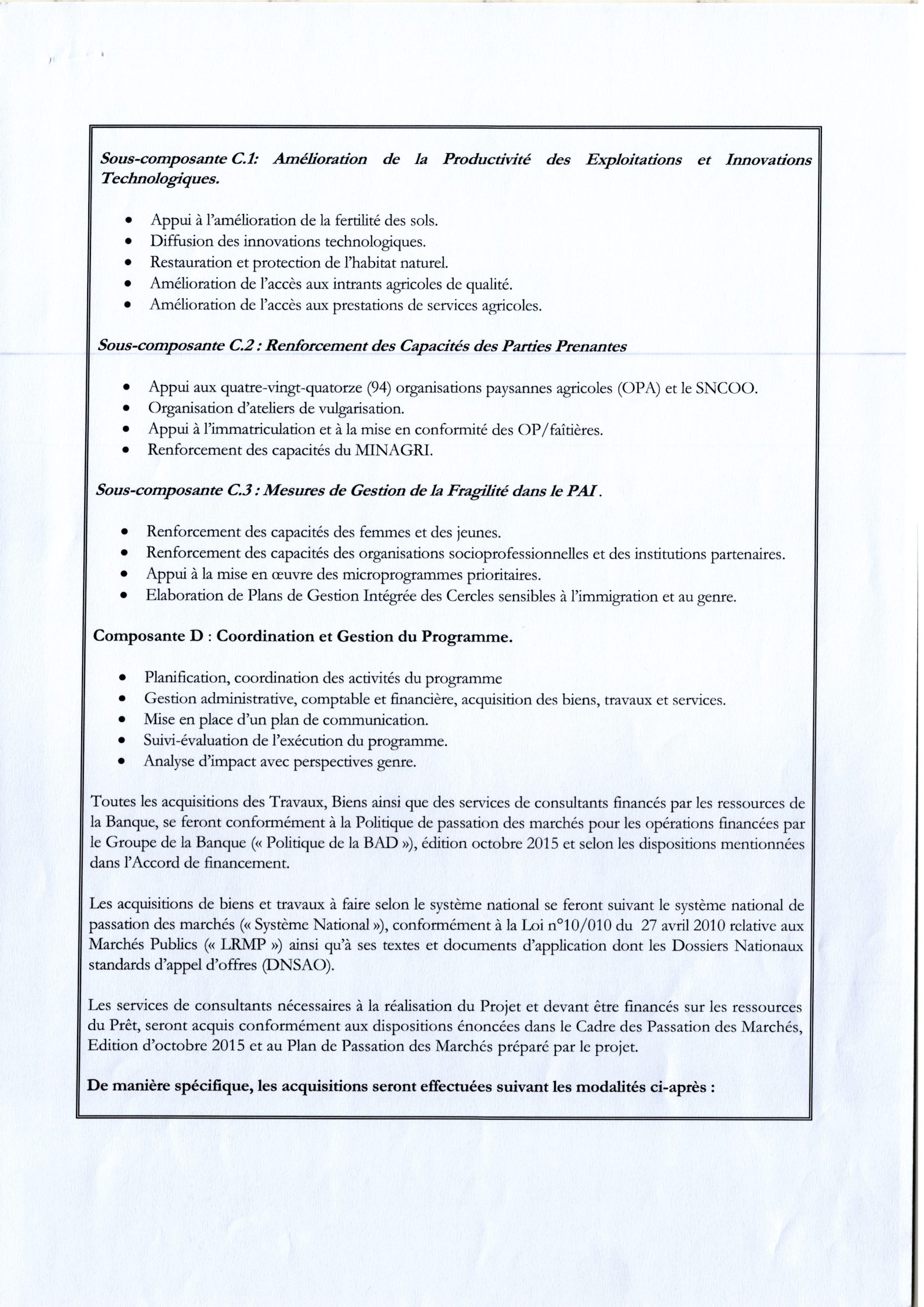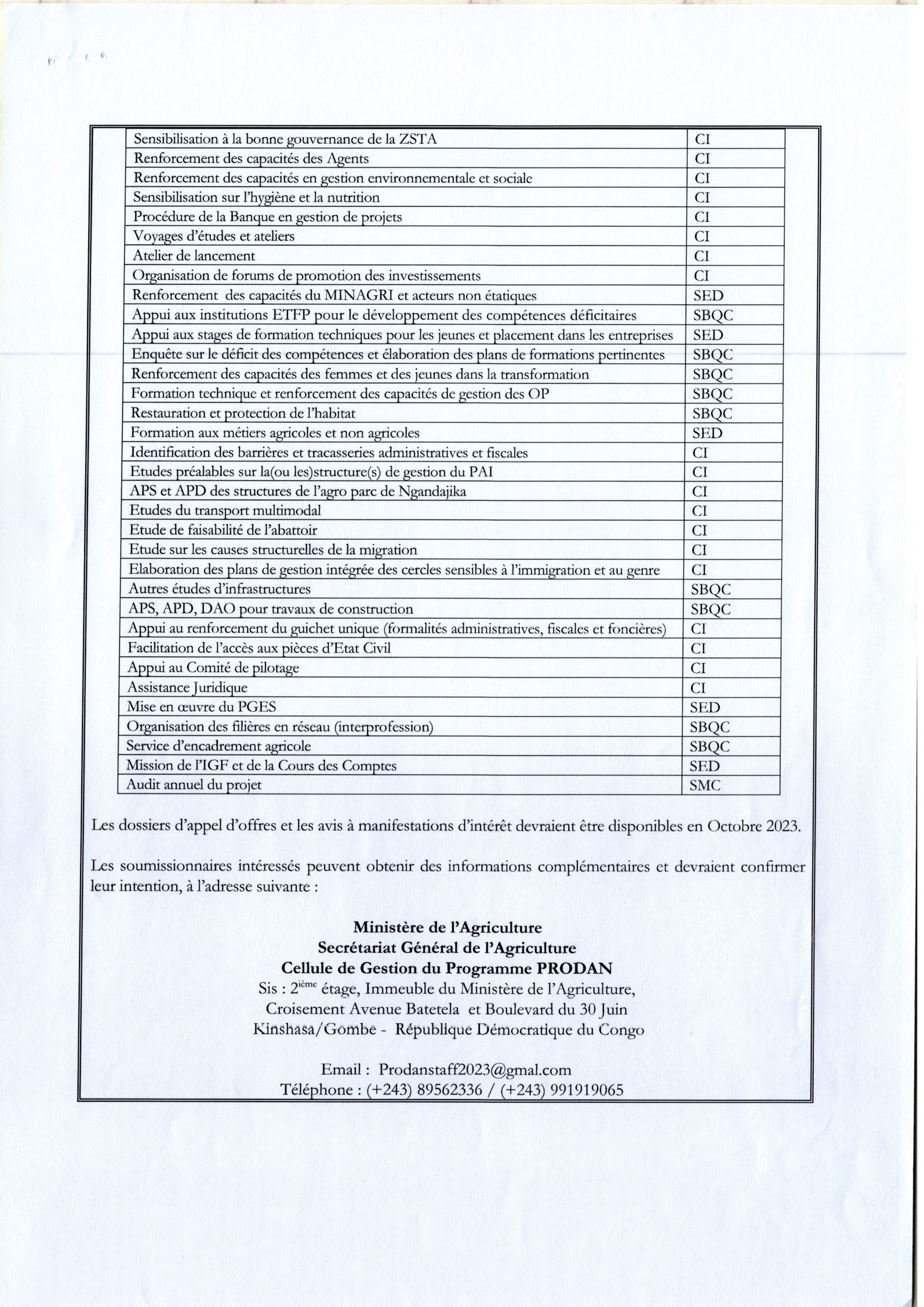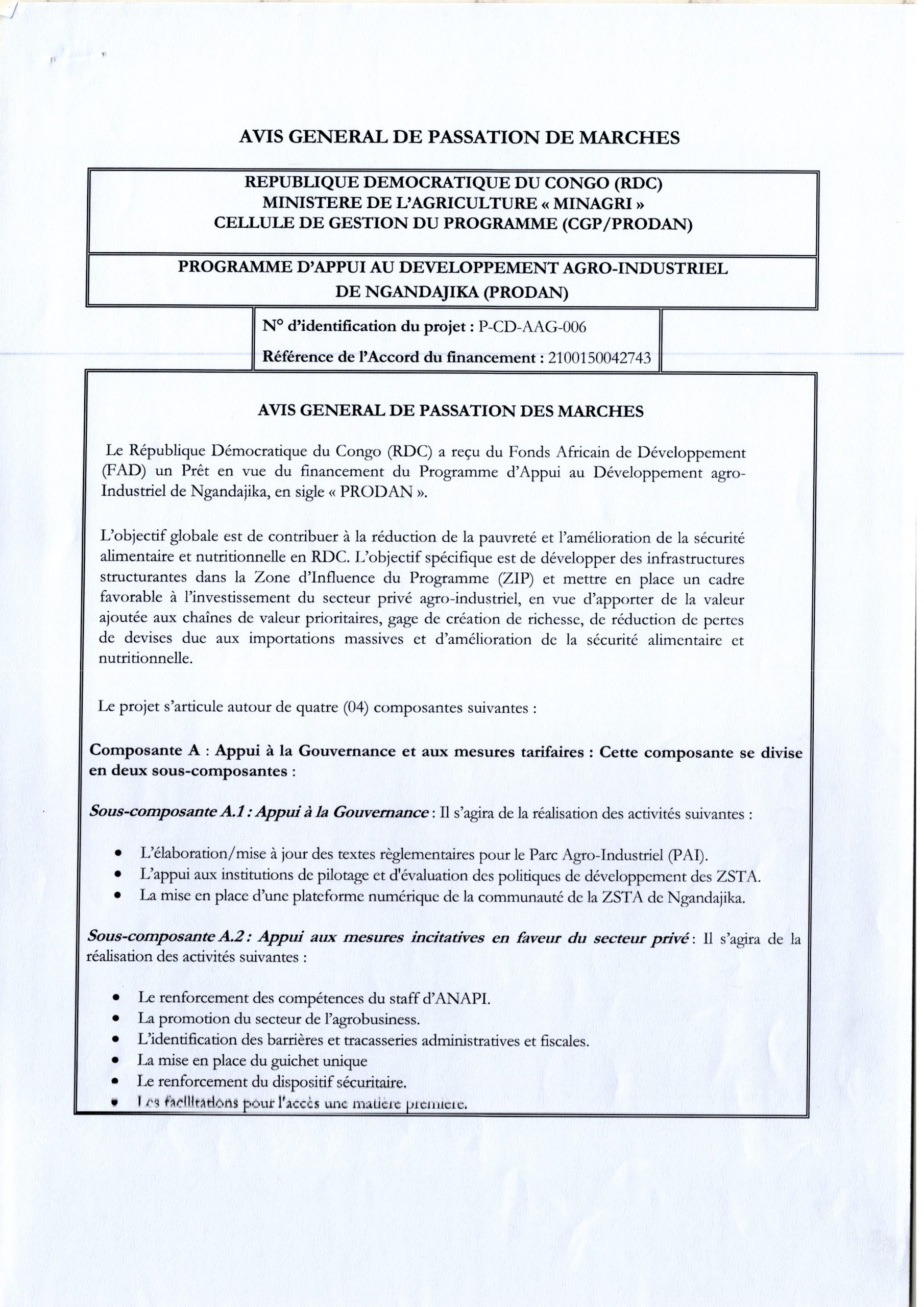 AVIS GÉNÉRAL DE PASSATION DE MARCHES DE PRODAN RELATIF AU MARCHE DES TRAVAUX.