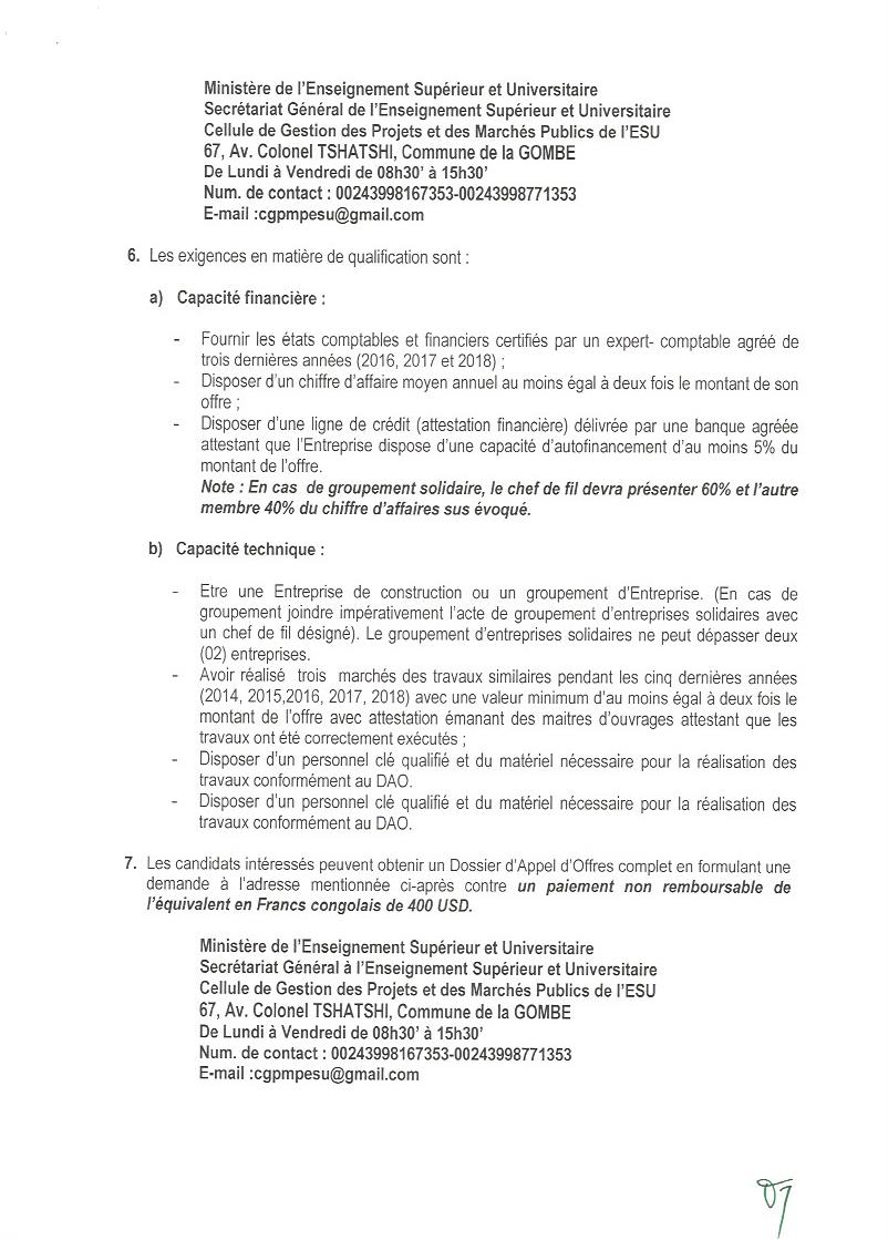 MINISTERE DE L'ENSEIGNEMENT SUPERIEUR ET UNIVERSITAIRE