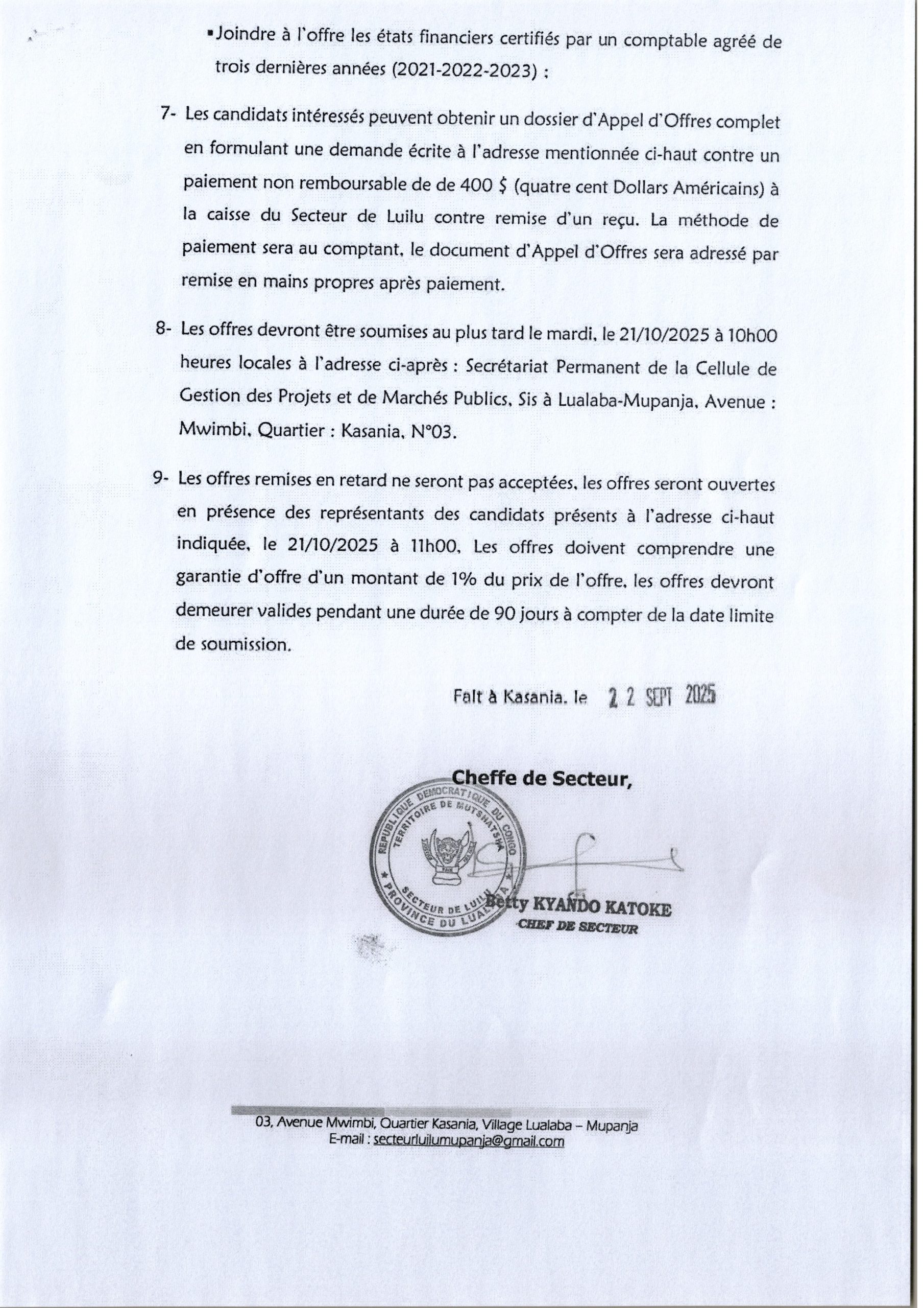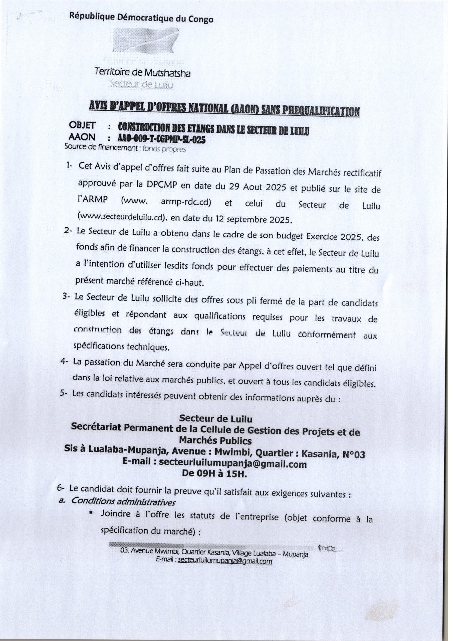 PROVINCE DU LUALABA (Secteur de Luilu)