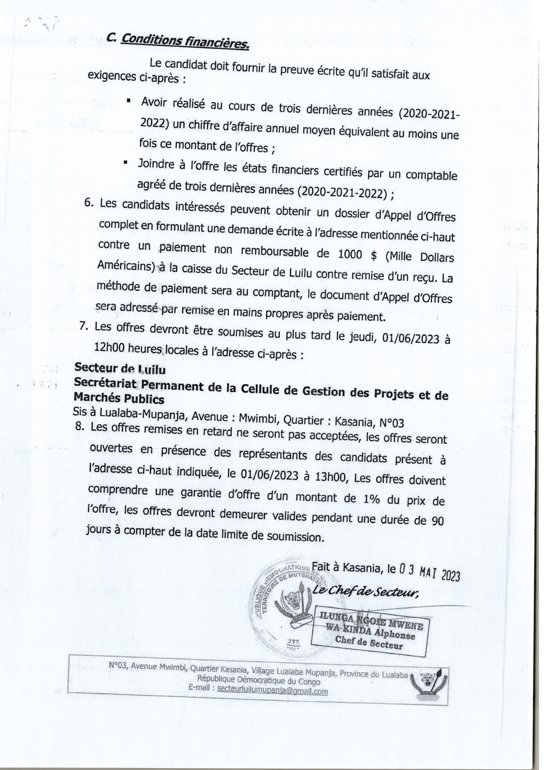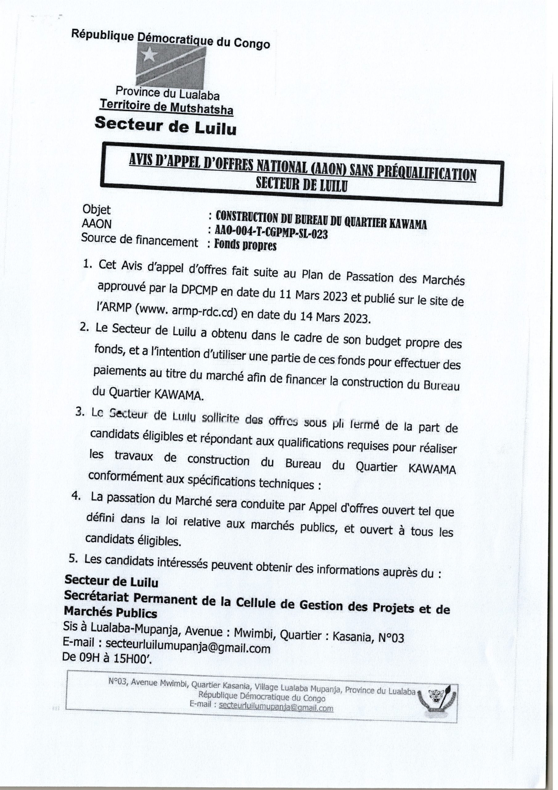 Construction du Bureau du Quartier KAWAMA.