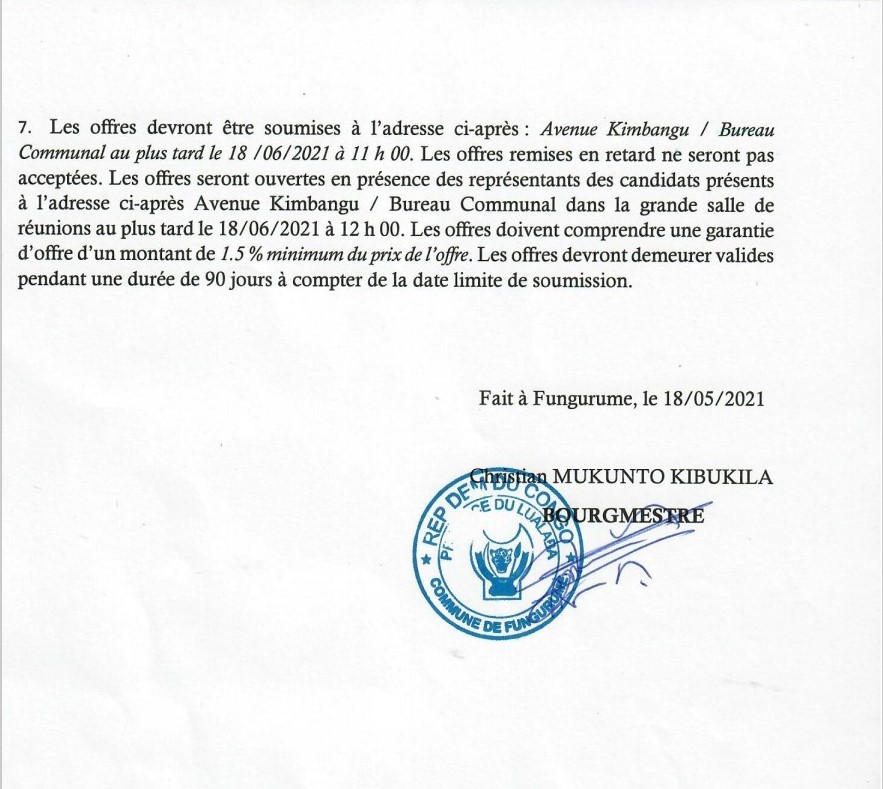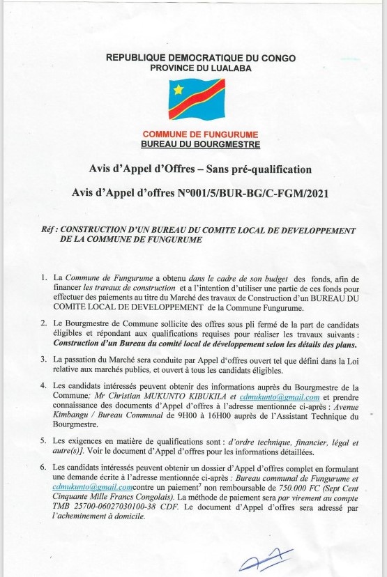 CONSTRUCTION D’UN BUREAU DE COMITÉ LOCAL DE DÉVELOPPEMENT DE LA COMMUNE DE FUNGURUME.
