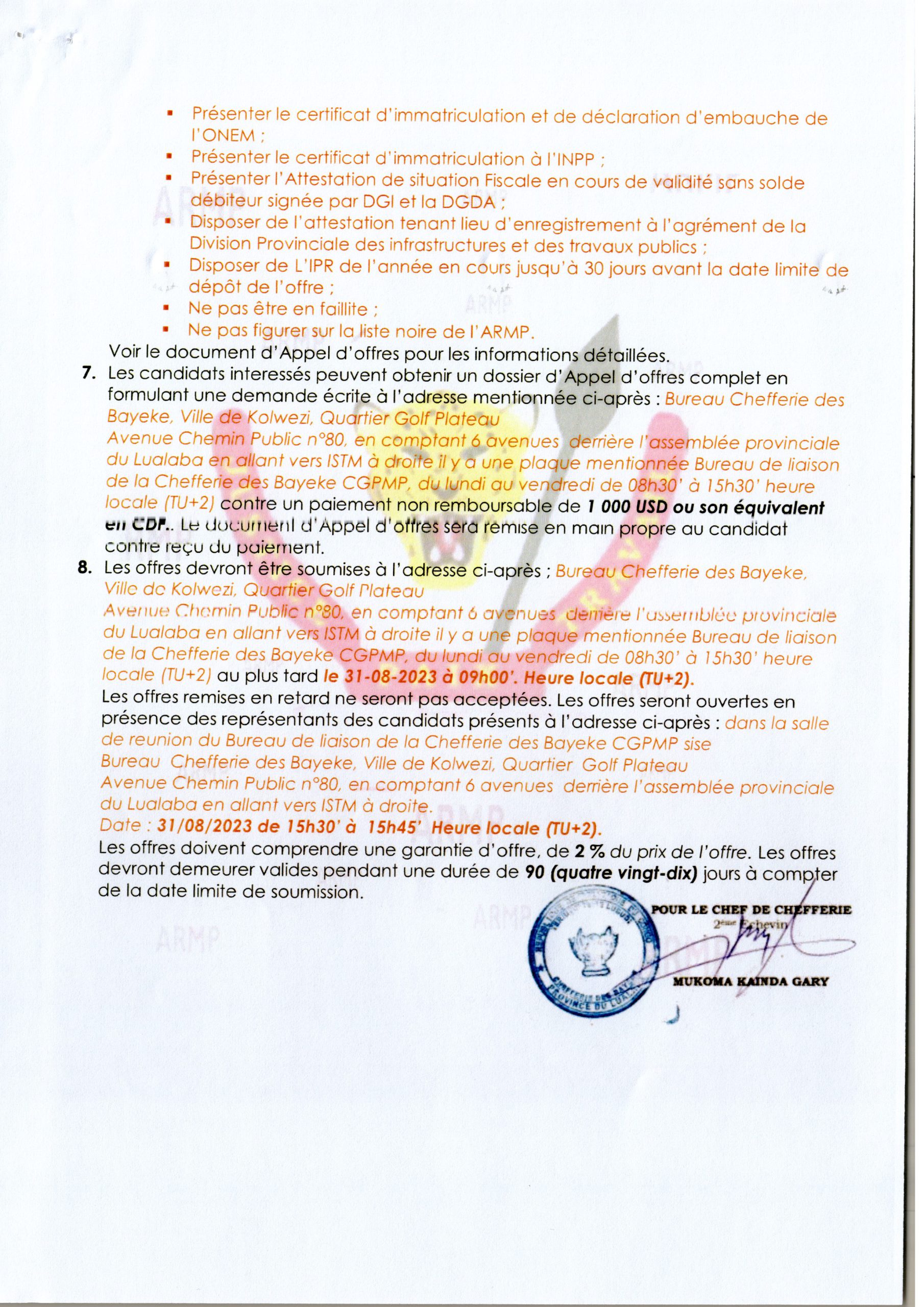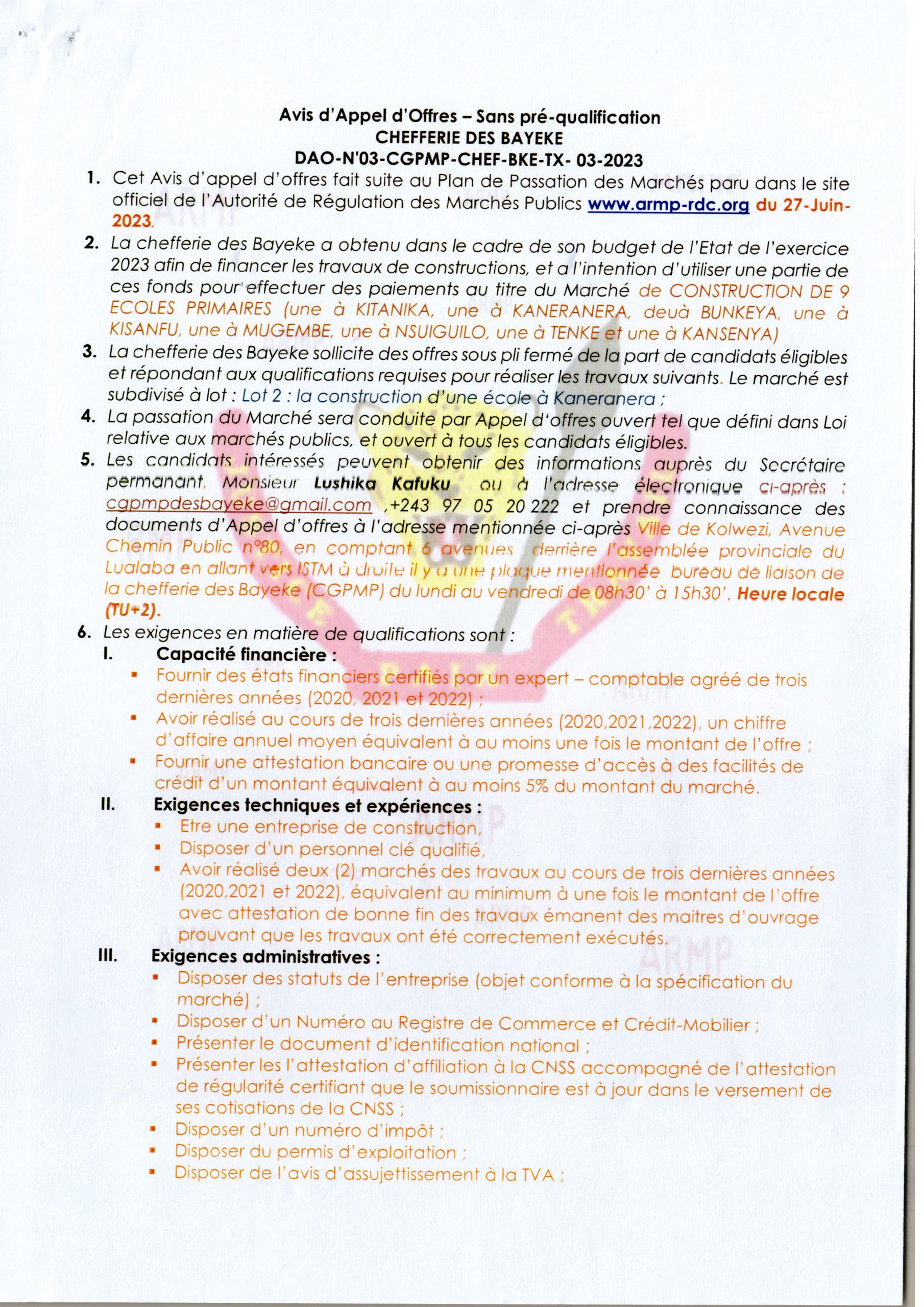 Construction d’une Ecole à Kaneranera (lot 2)