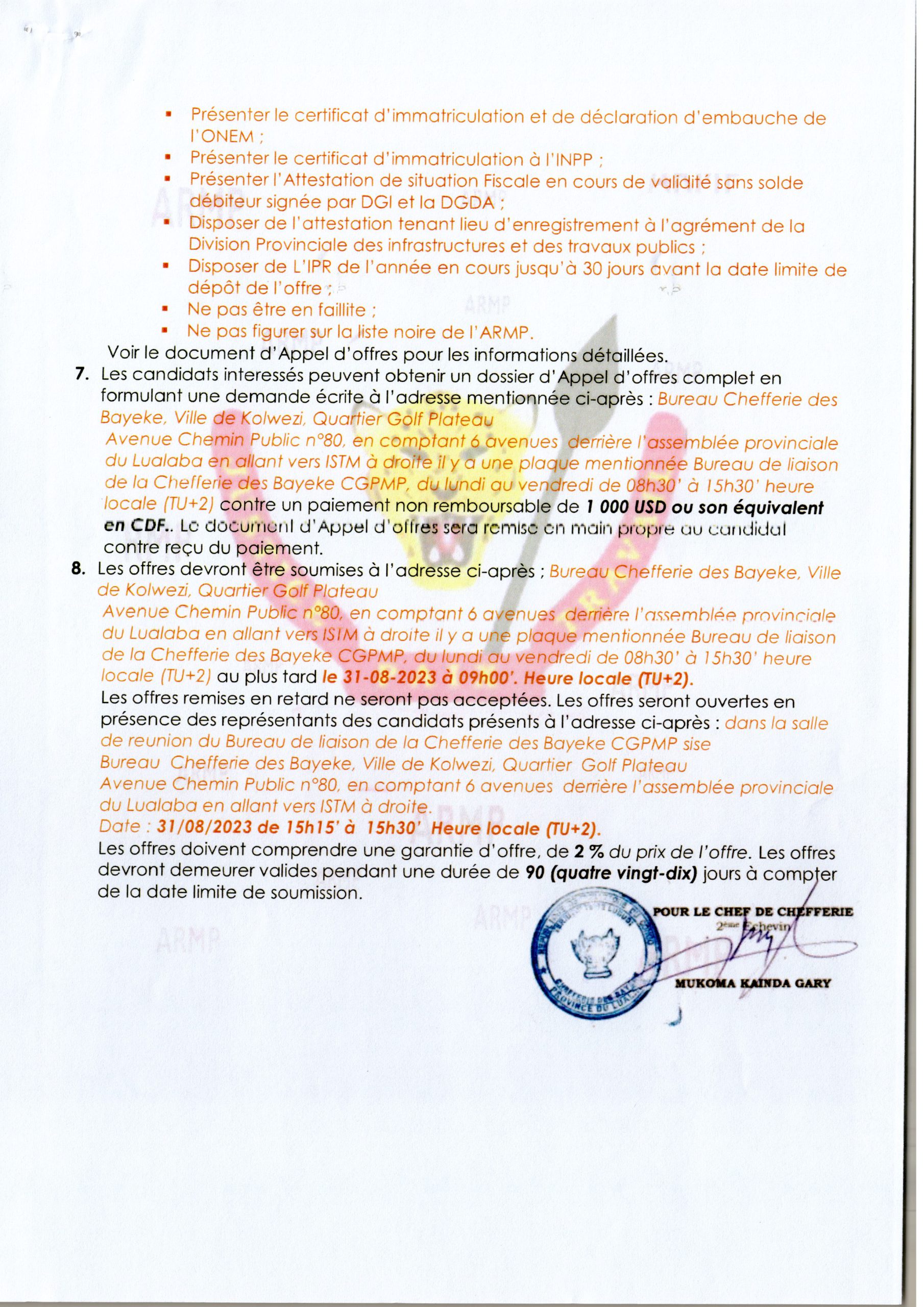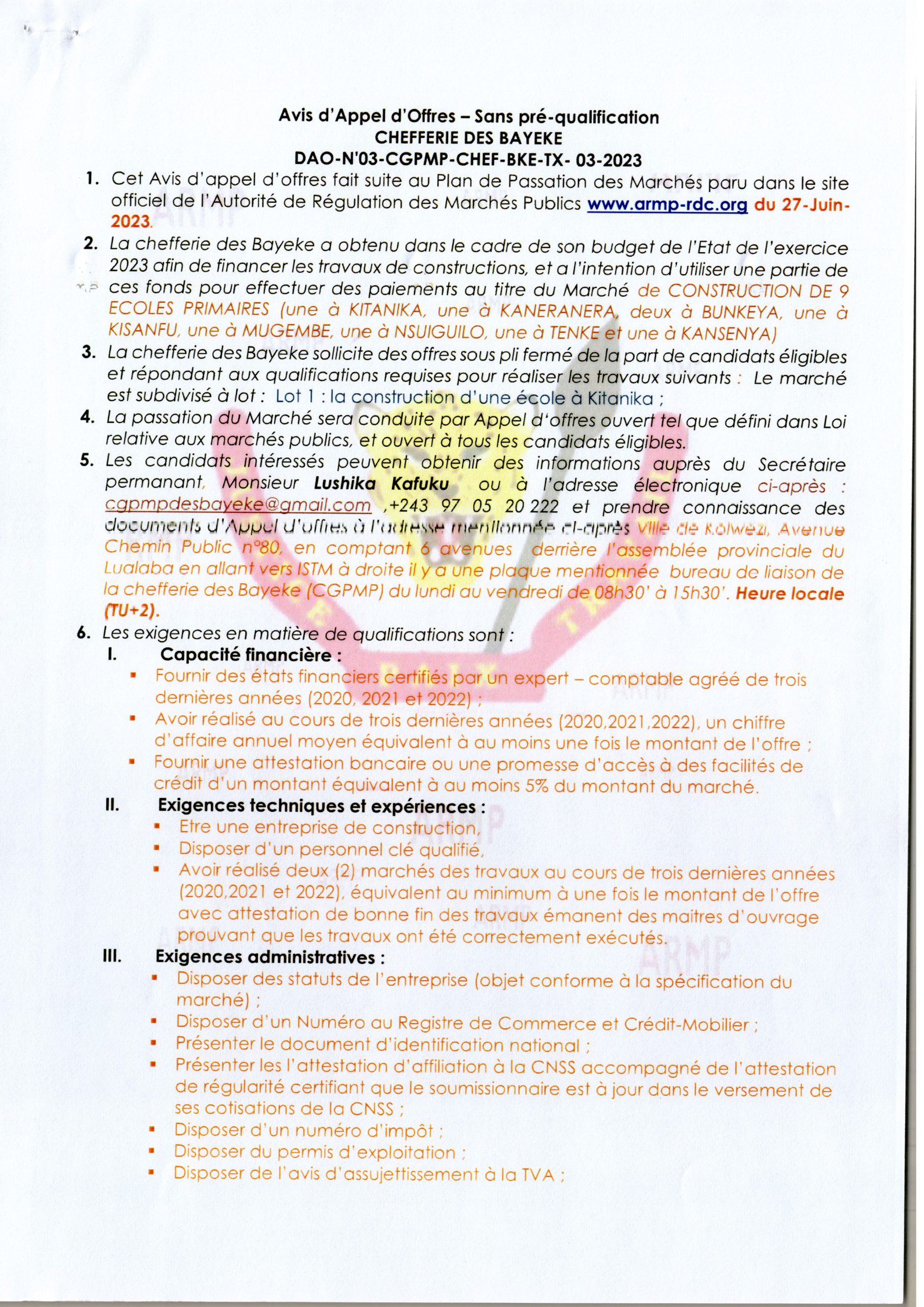 Construction d’une Ecole à Kutanika (lot 1)
