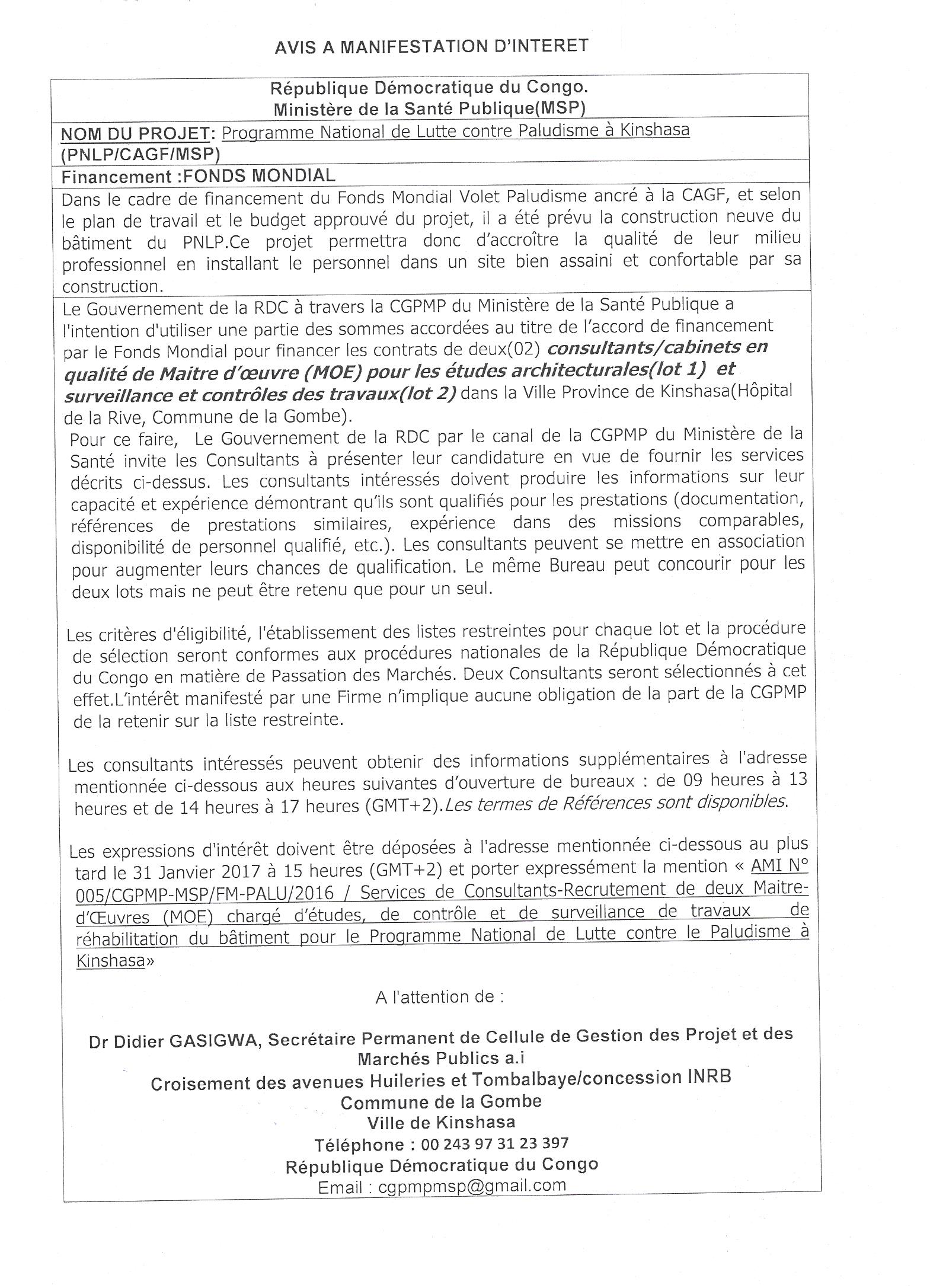 Consultants /cabinets en qualité de maitre d’ouvrage pour les études architecturales lot 1 et surveillance et contrôles des travaux lot 2.