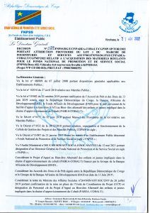 Attribution provisoire du Lot 1 du Marché de Fournitures et Services AOI N°001/FNPSS/DG/FS/UP/PABEA-COBALT/CGPMP/2022 Relative à l’Acquisition des matériels roulants pour le Fonds National de Promotion et de Service Social (FNPSS) Deux (02) Véhicules 2×2 tout terrain livrable à Kinshasa.