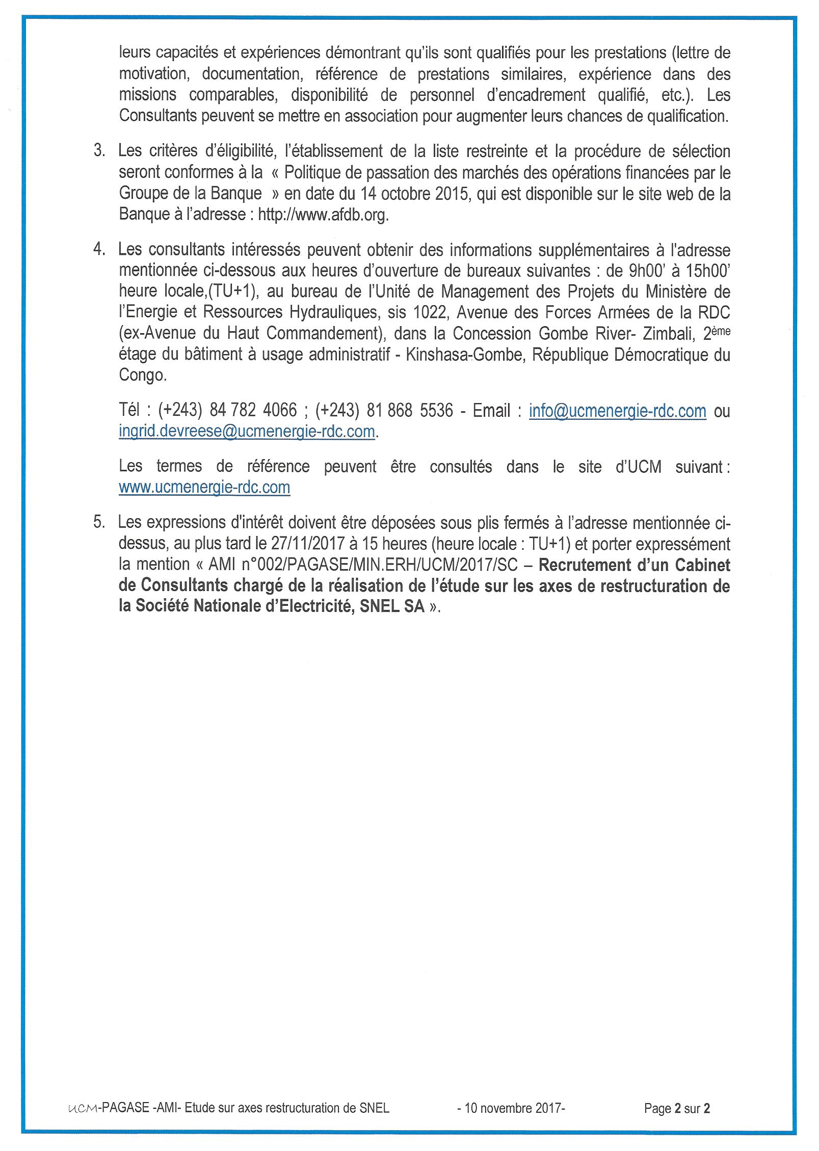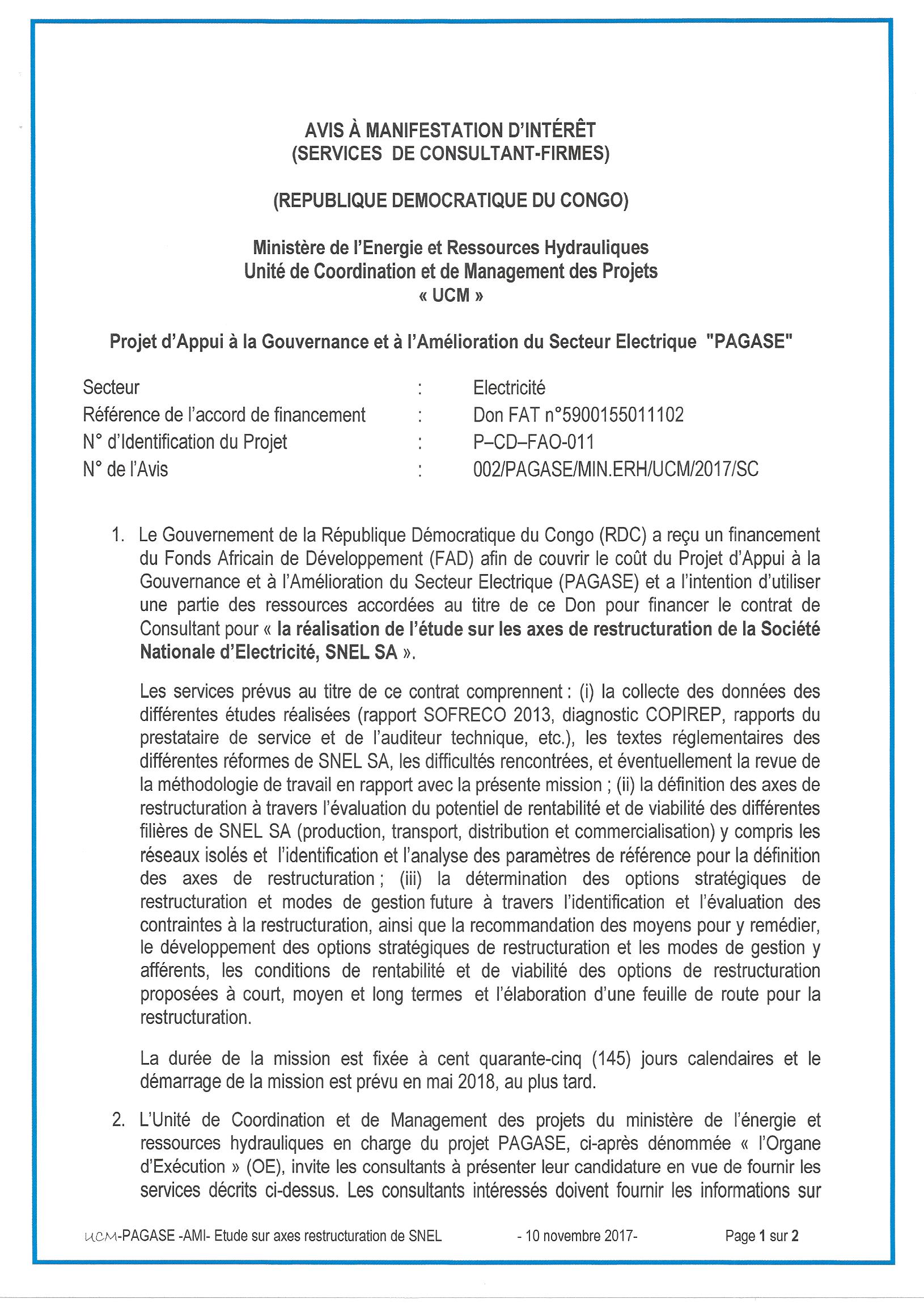 ETUDE DES AXES DE RESTRUCTURATION DE LA SOCIÉTÉ NATIONALE D’ELECTRICITÉ.