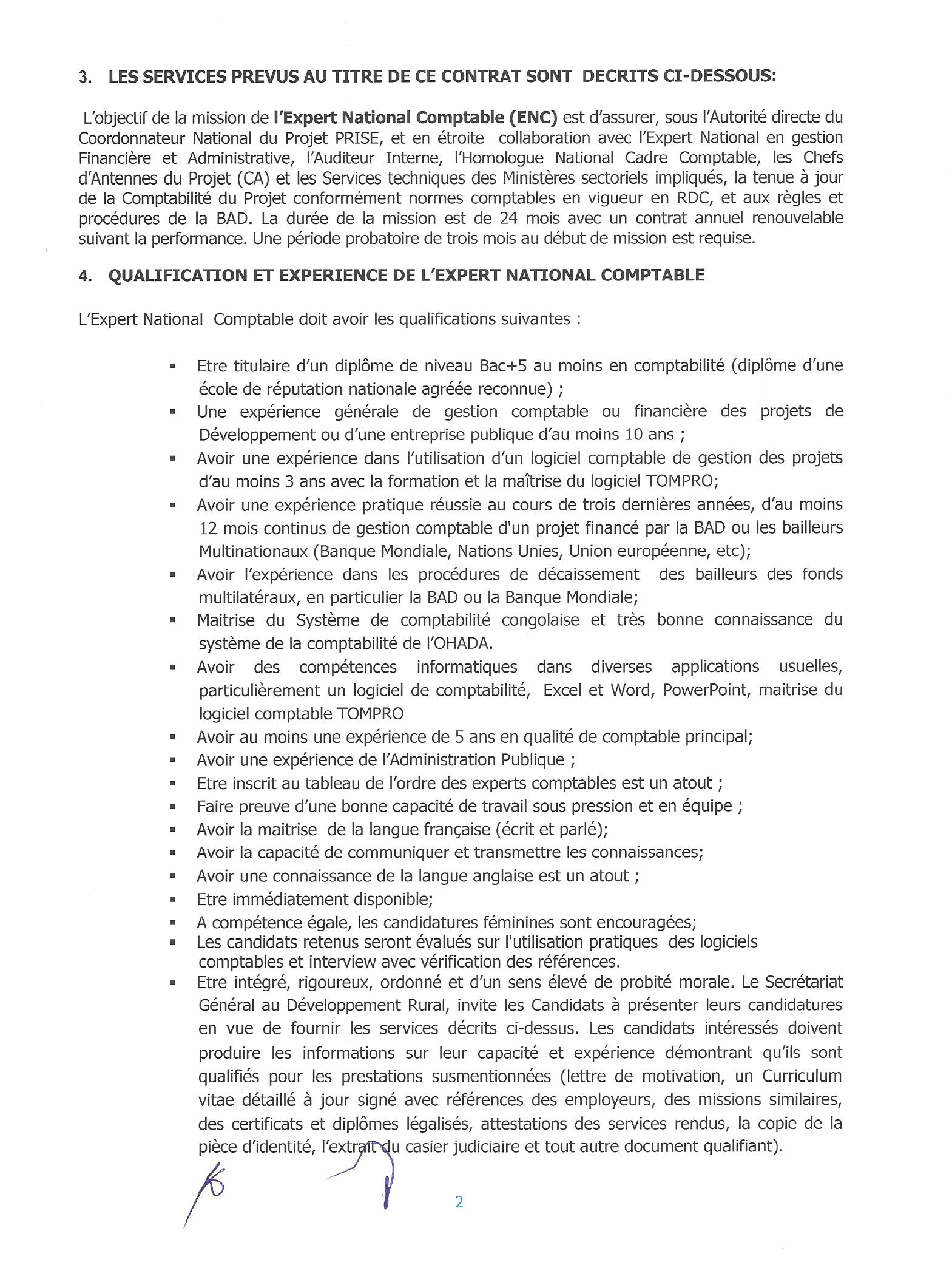 EXPERT NATIONAL COMPTABLE POUR L’UNITÉ D’EXÉCUTION DU PROJET PRISE À KINSHASA-RDC.