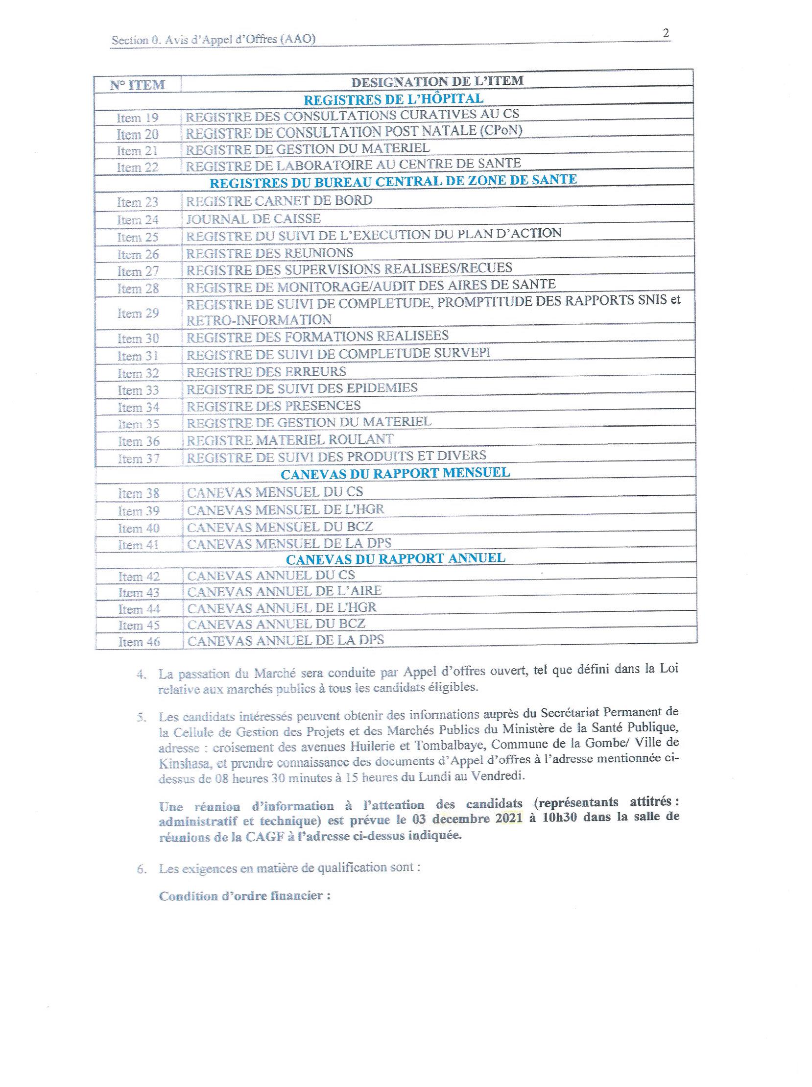 Impression, Transport et livraison des outils SNIS pour les Formations Sanitaires