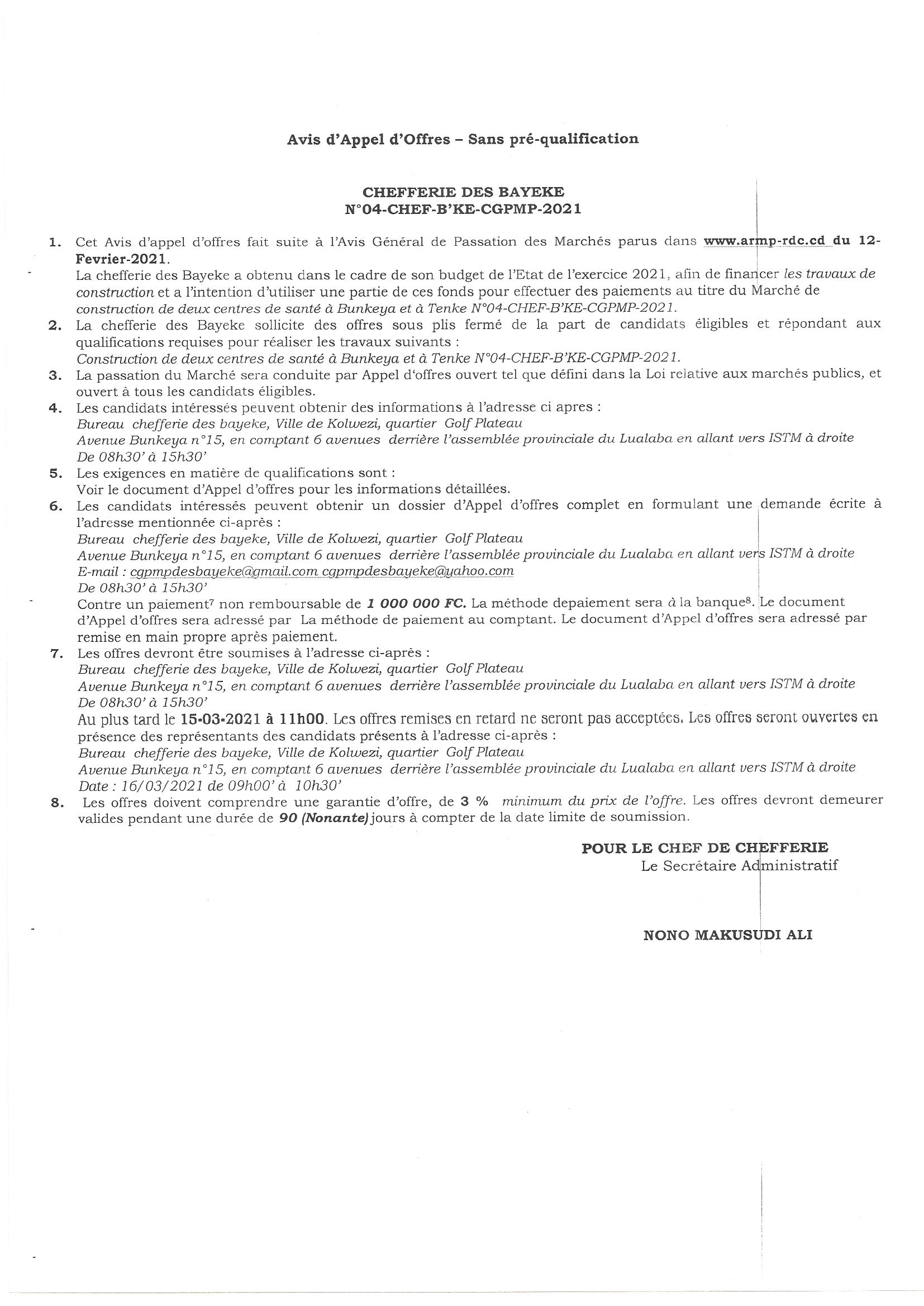 MARCHE DE CONSTRUCTION DE DEUX CENTRES DE SANTE.