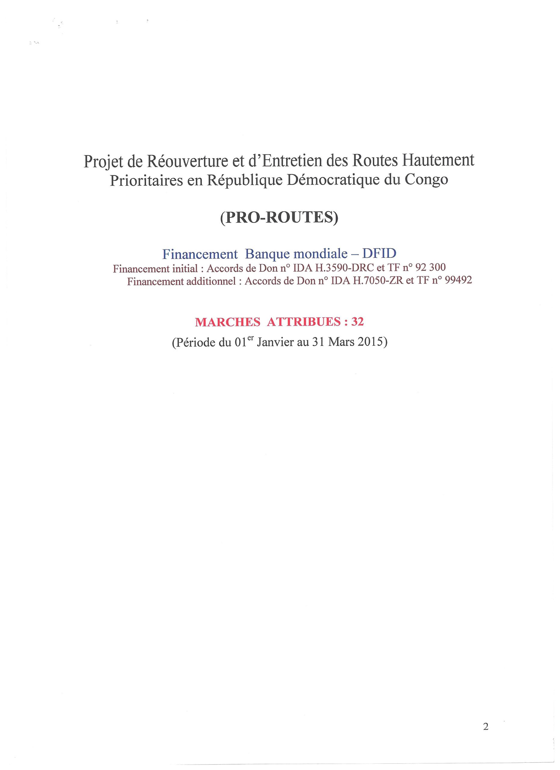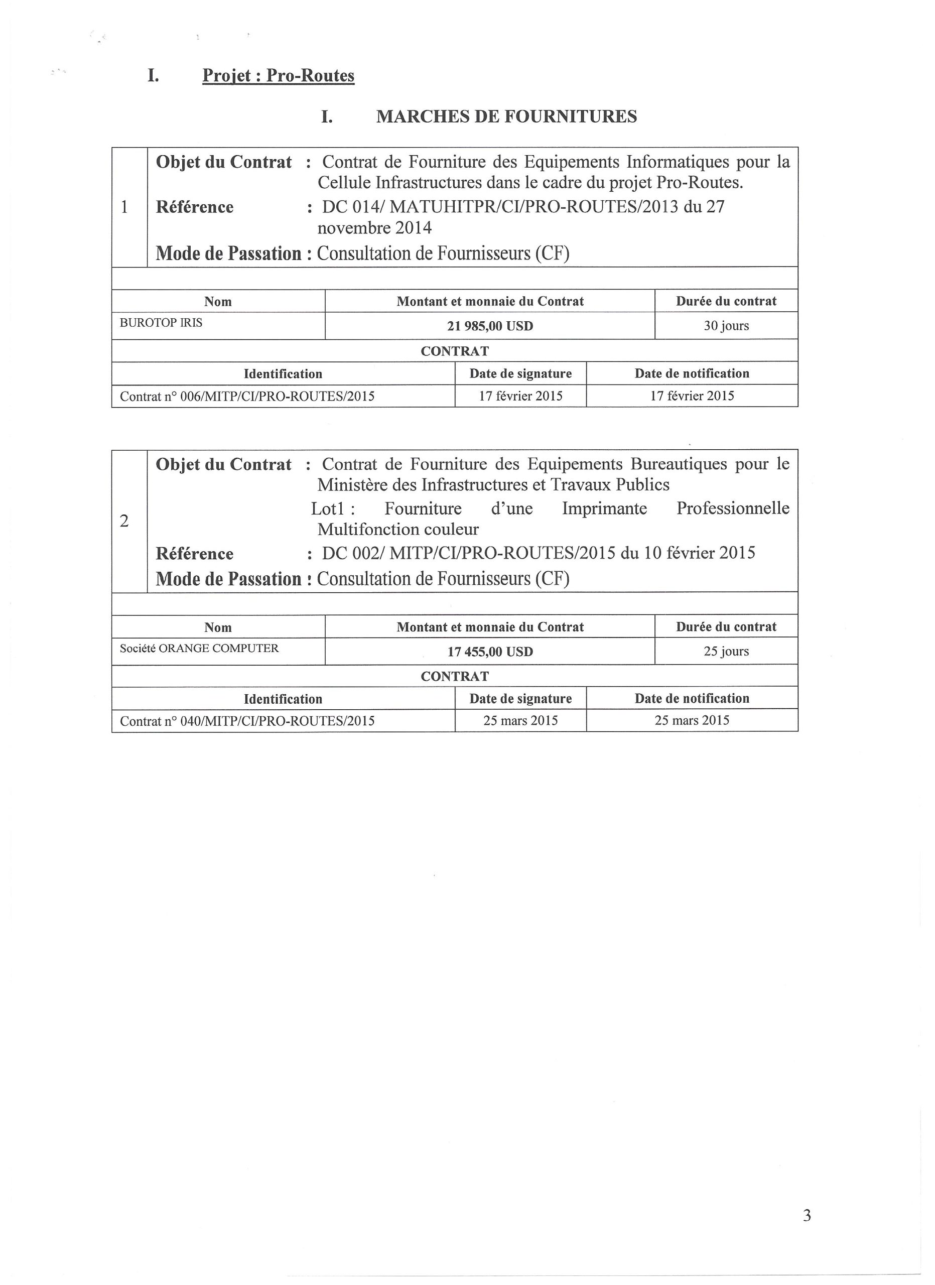 Marché de fournitures des équipements informatiques pour la cellule infrastructures dans le cadre du projet PRO-ROUTES