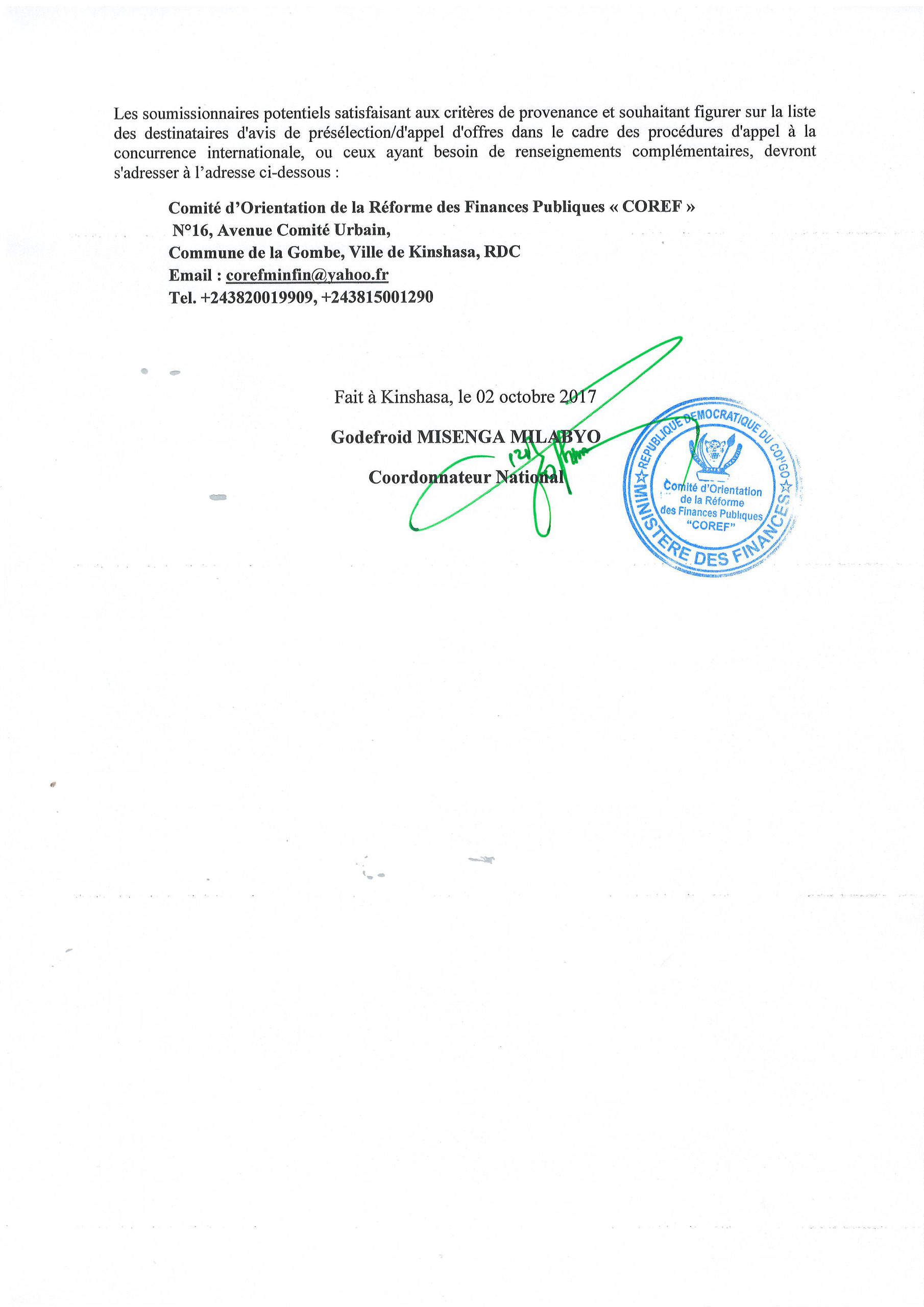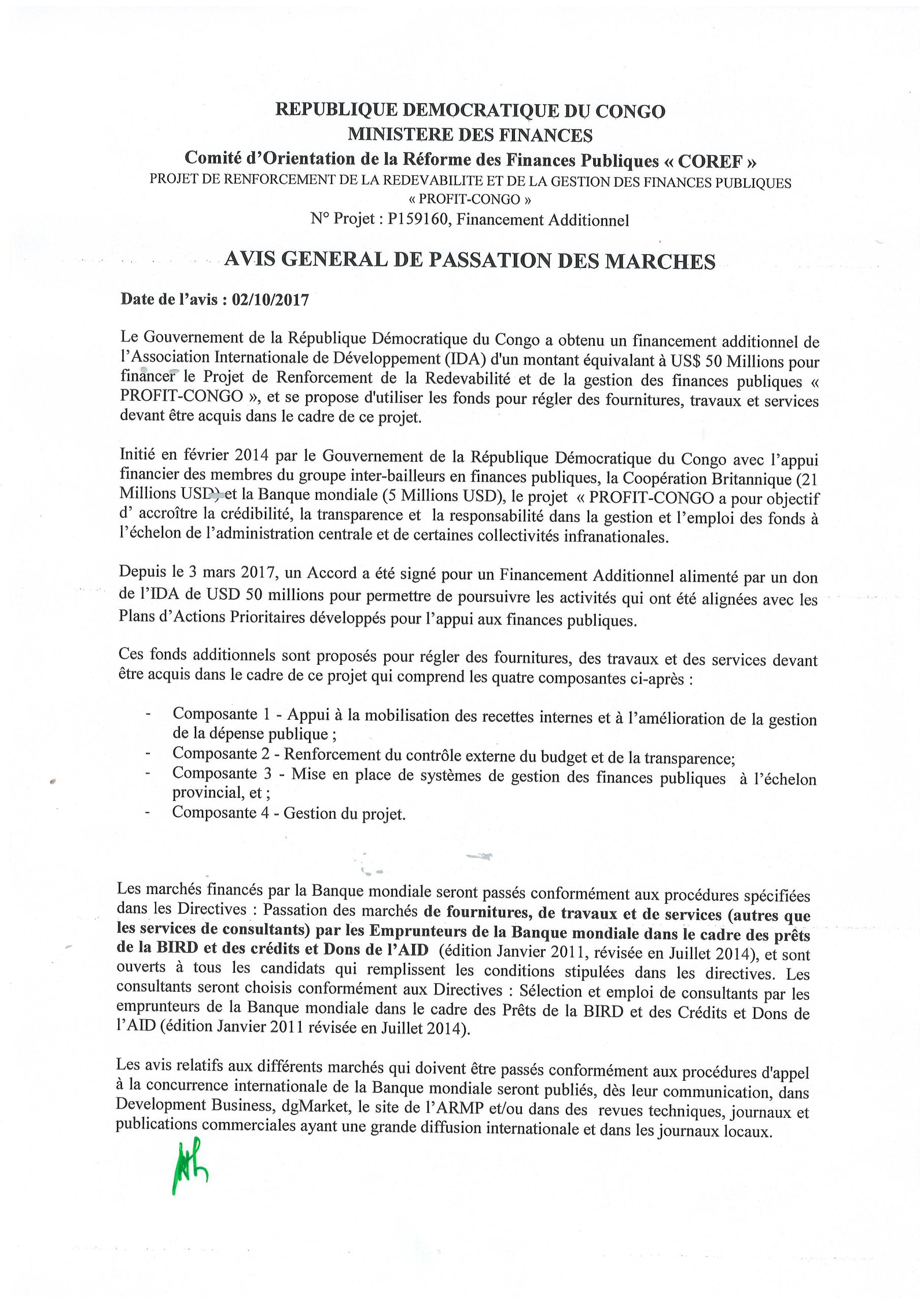 Projet de Renforcement de la Redevabilité et de la Gestion des Finances Publique « PROFIT-CONGO ».
