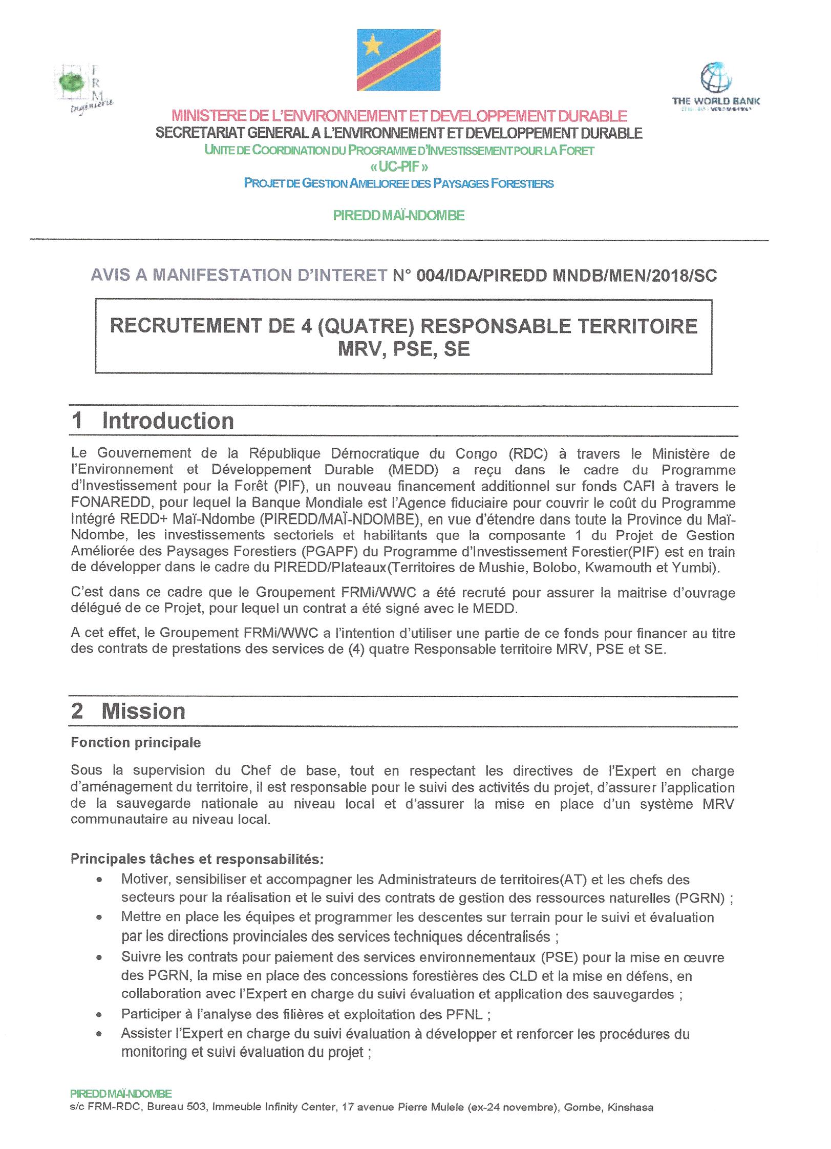 Recretement de quatre (4) Responsable Territoire MRV, PSE, SE.
