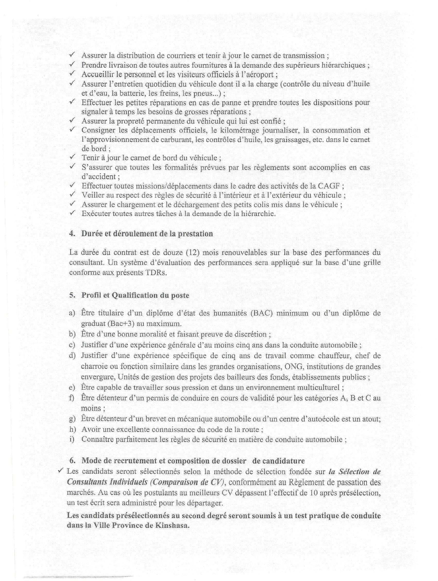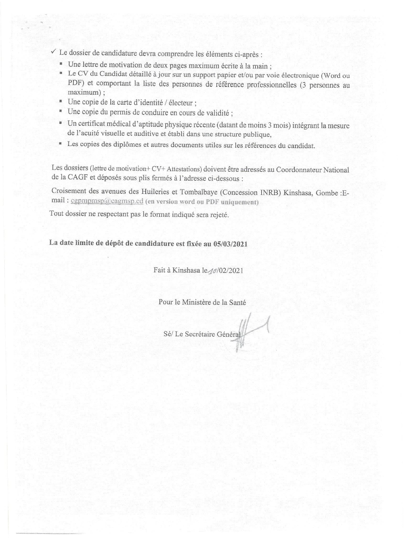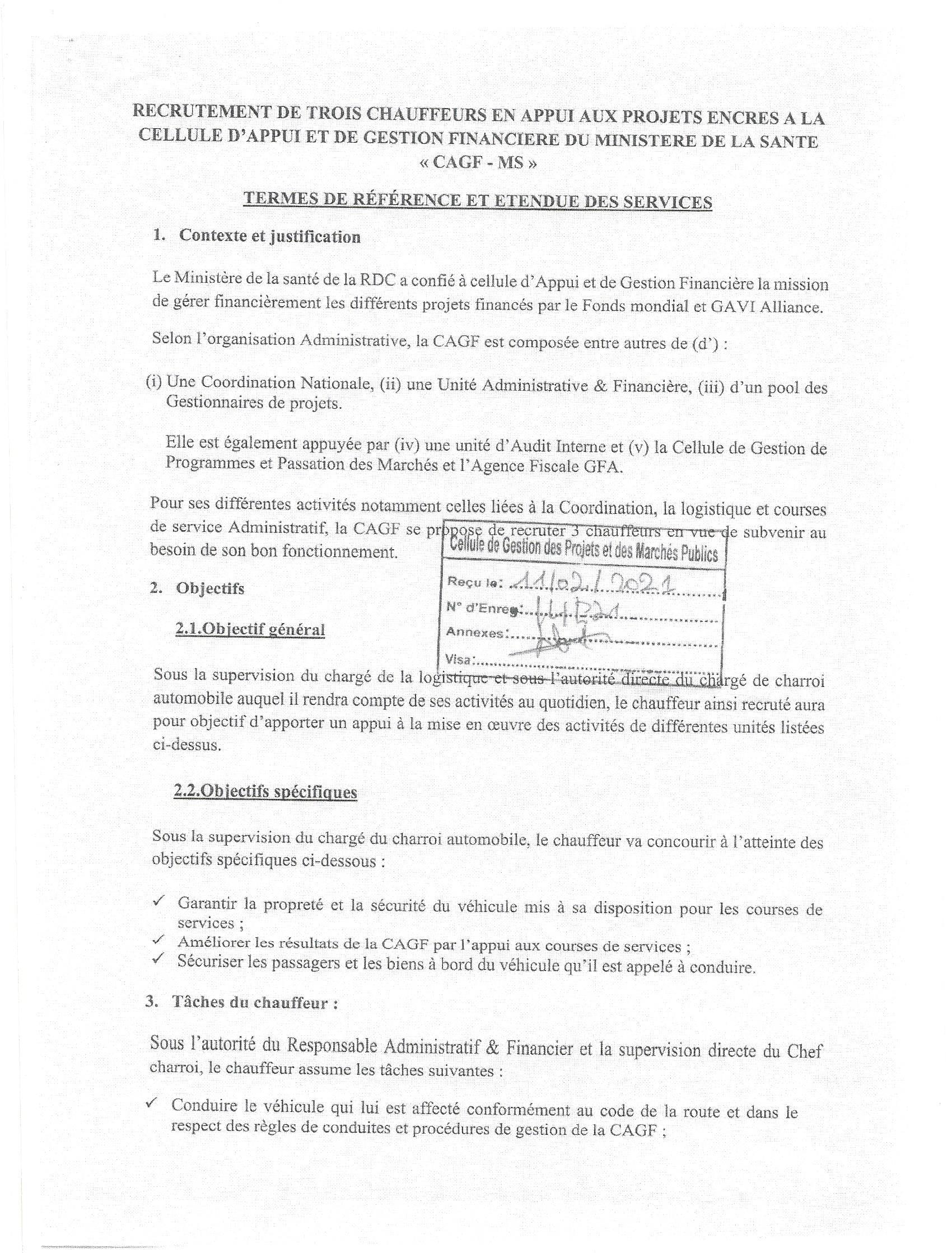 RECRUTEMENT DE TROIS CHAUFFEURS EN APPUI AUX PROJETS ENCRES A LA CELLULE D’APPUI ET DE GESTION FINANCIERE DU MINISTERE DE LA SANTE “CAGF-MS”