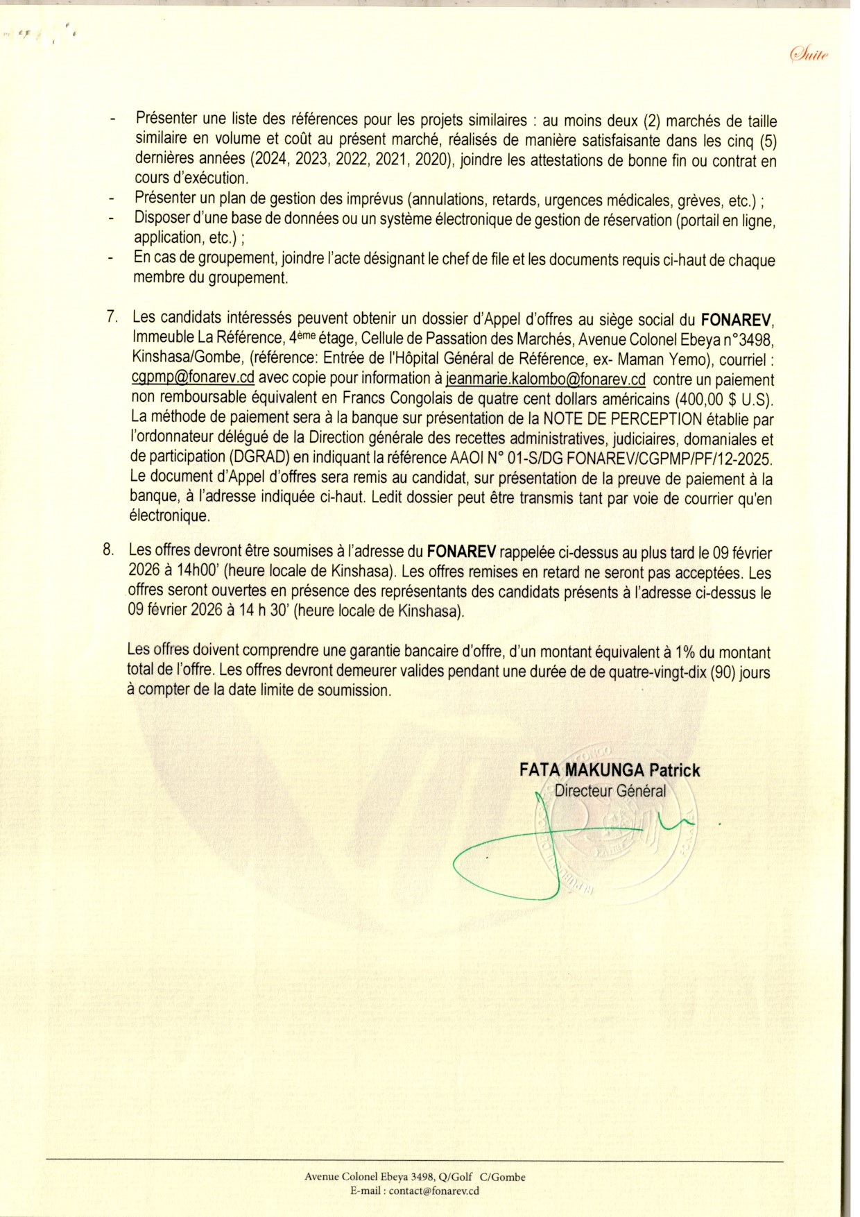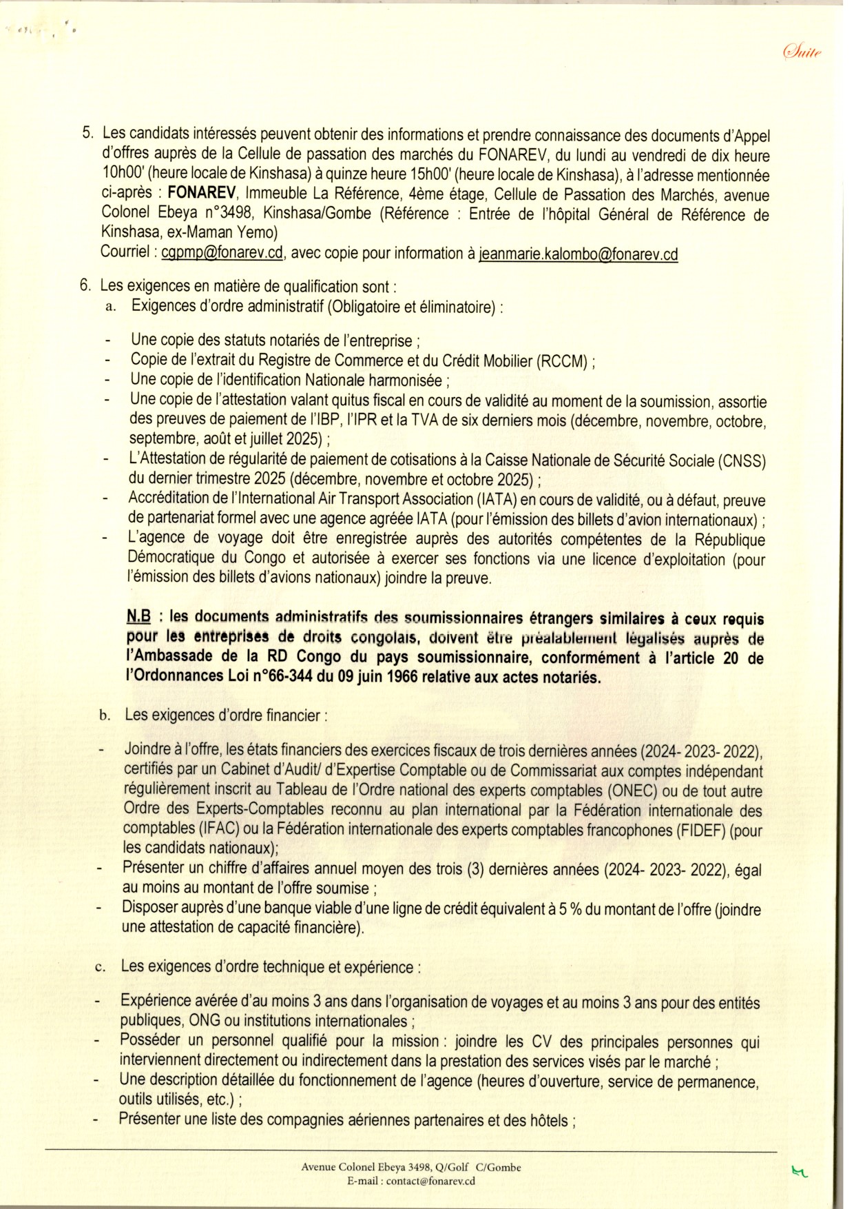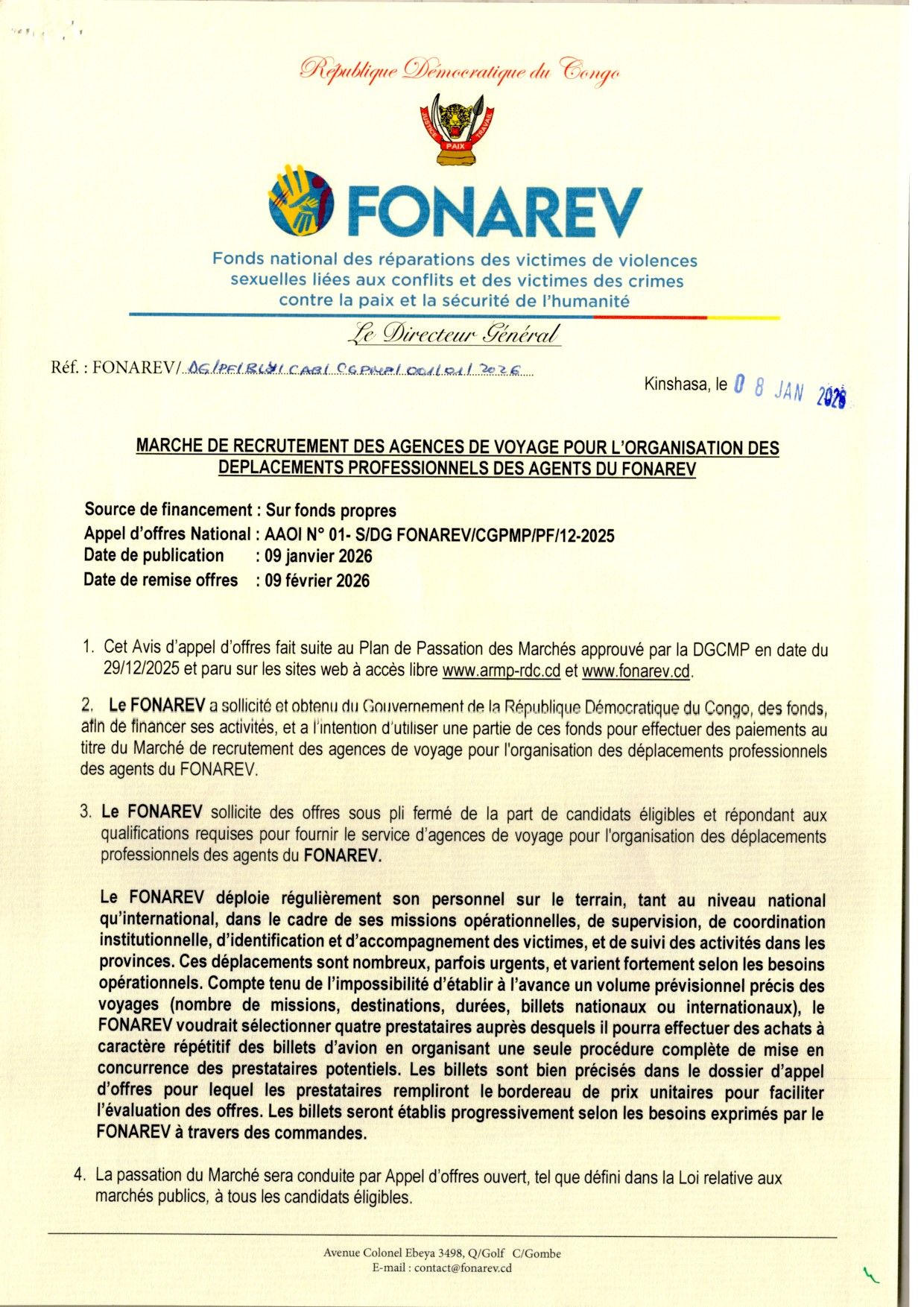 Recrutement des Agences de voyage pour l4Organisation des déplacements professionnels des Agents du FONAREV