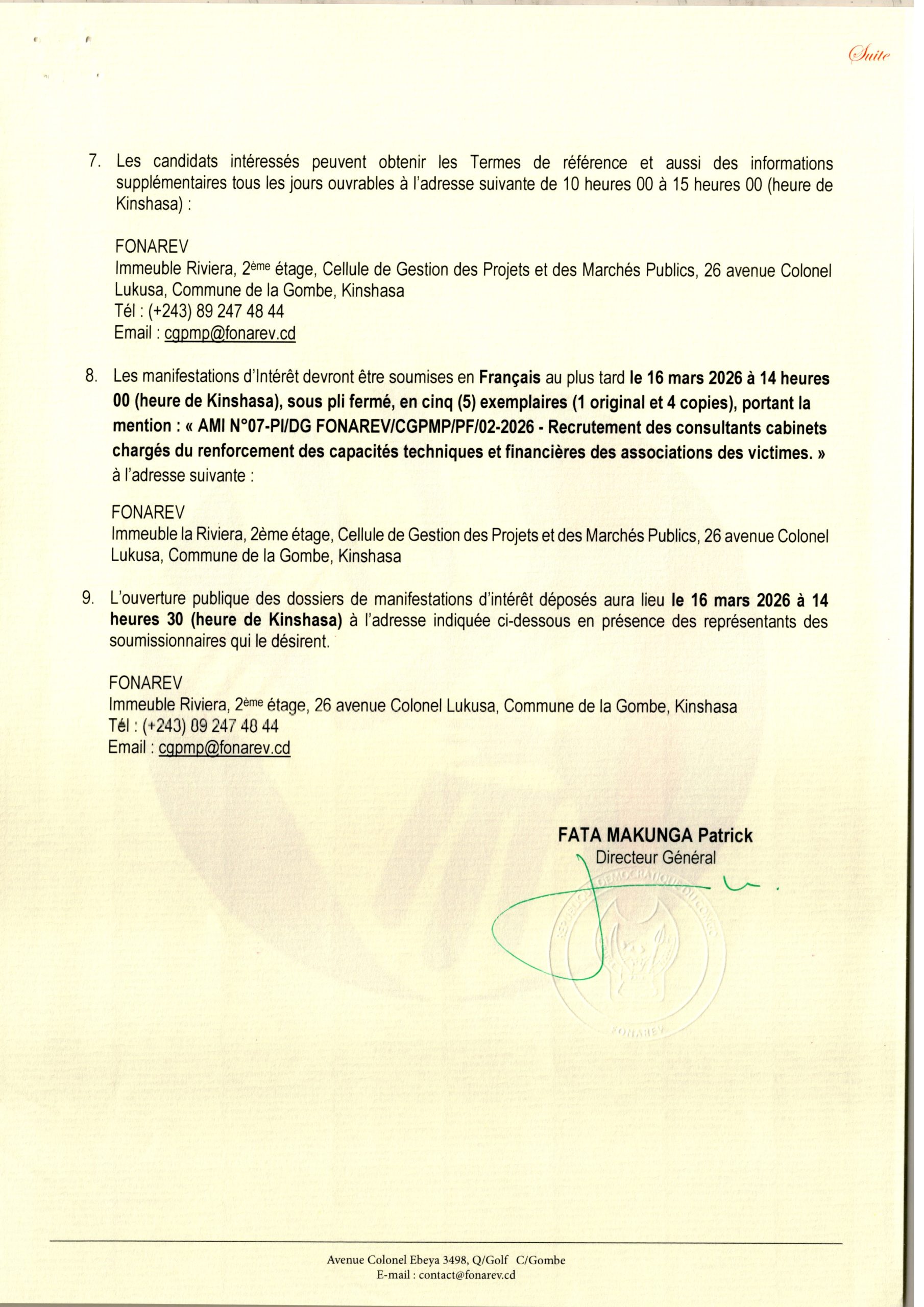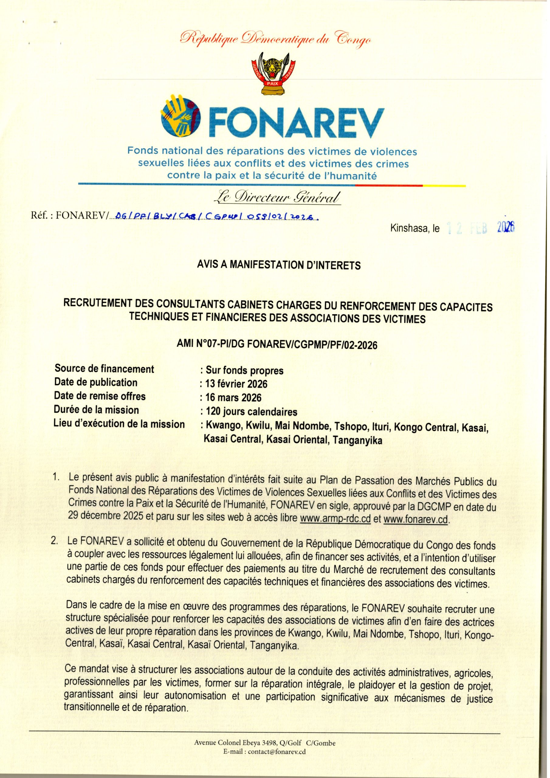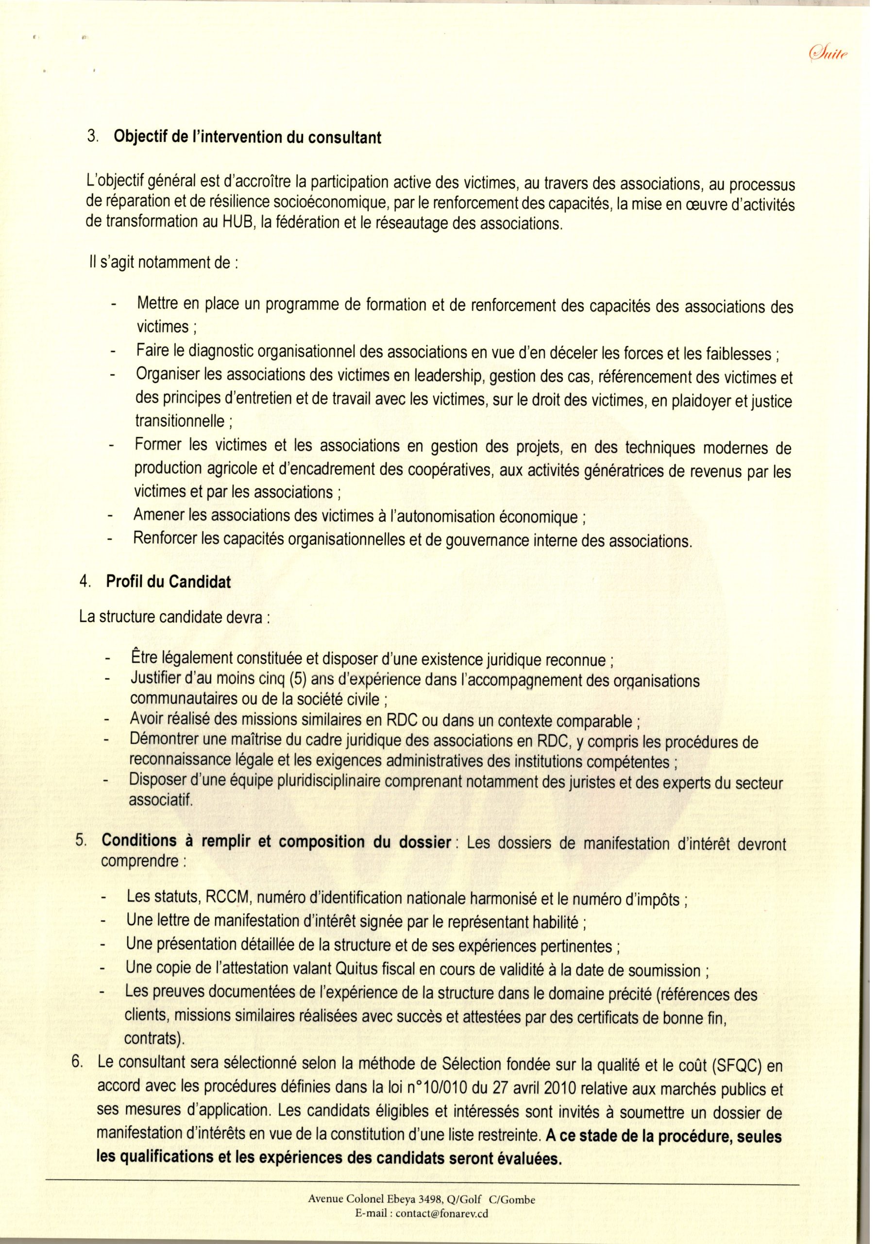 Recrutement des consultants cabinets charges du renforcement des capacités techniques et financières des associations des victimes.