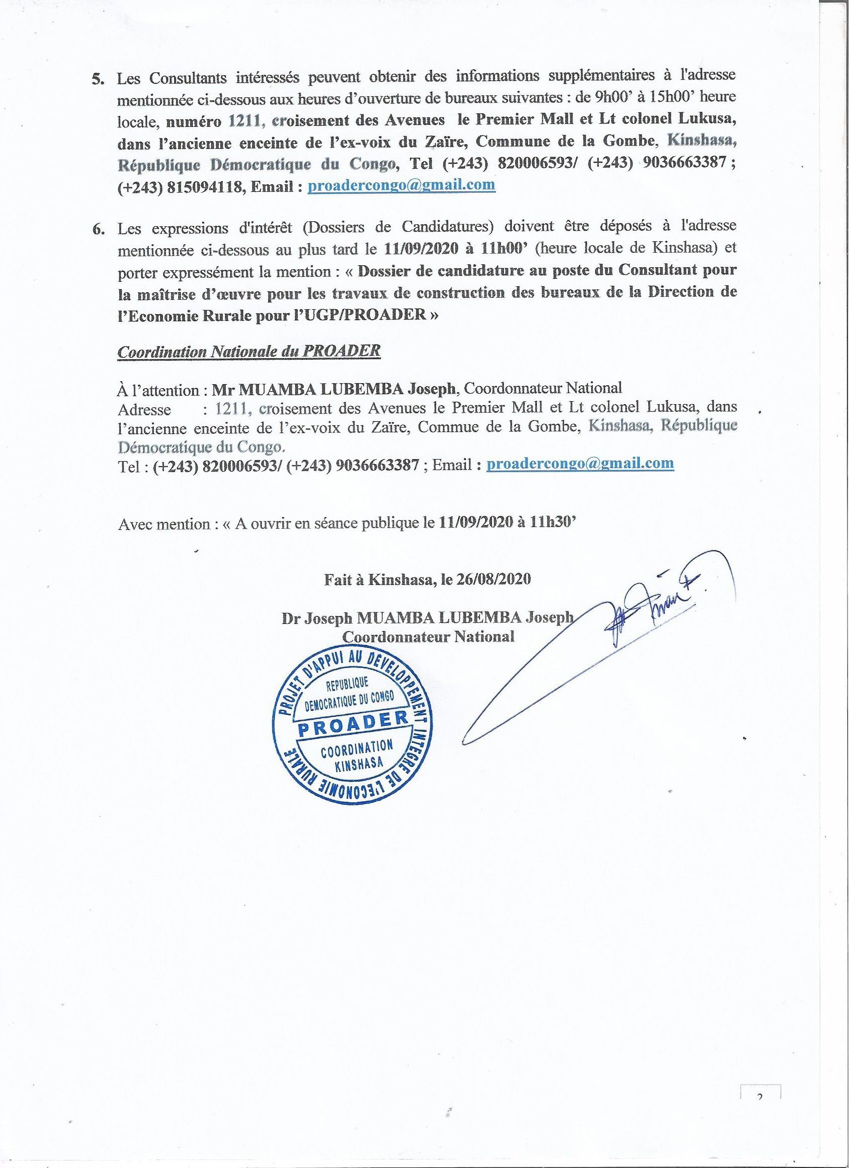 Recrutement des consultants pour exécuter les services suivants : (i) réaliser les études de sol, topographiques et architecturales ; 2) assurer le suivi et le contrôle des travaux ; 3) Assister le PROADER dans sa mission de la maitrise d’ouvrage de …