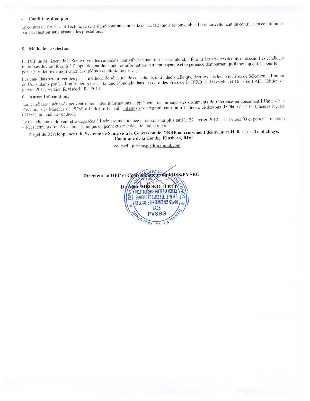 Recrutement d’un Assistant Technique en Genre et Santé de la Reproduction.